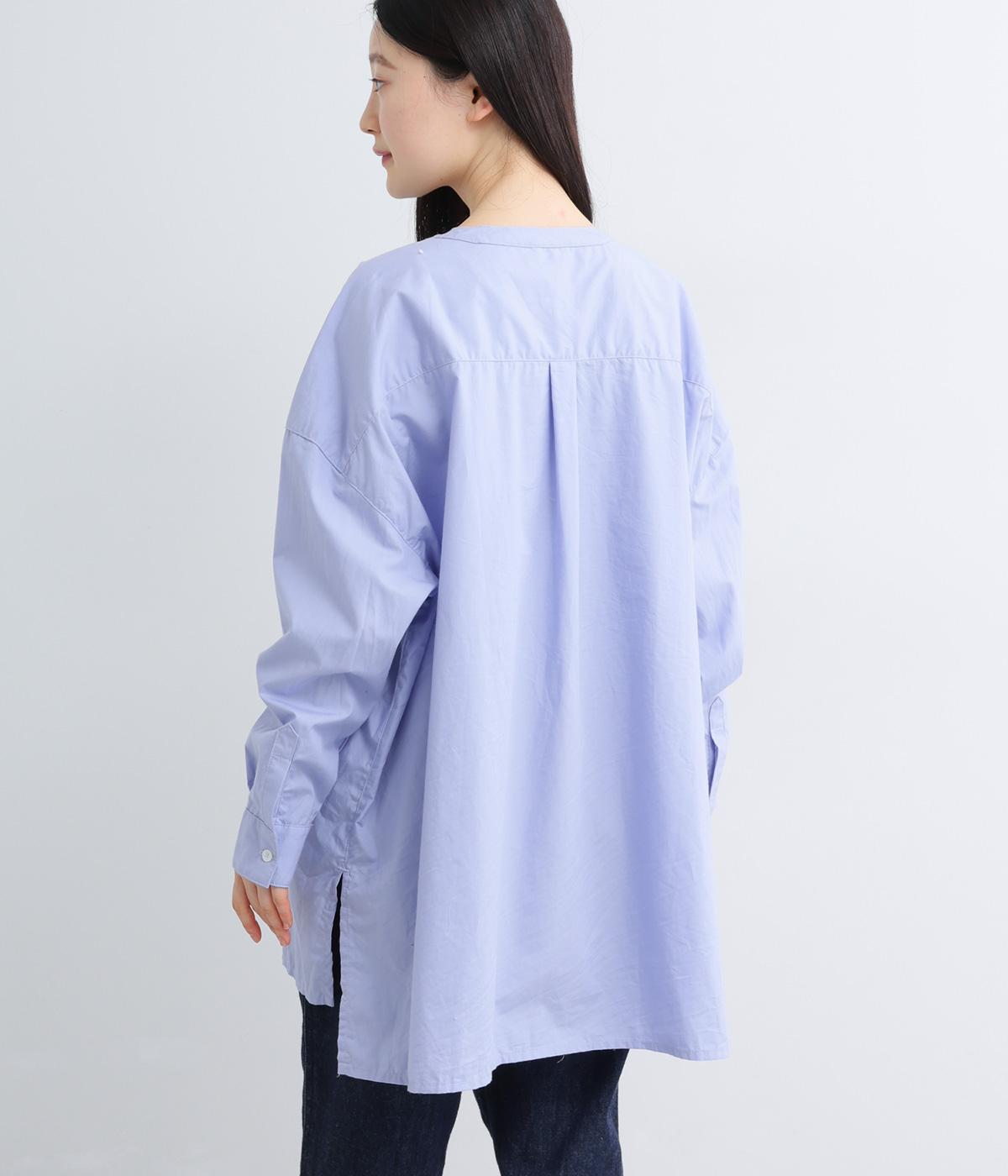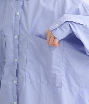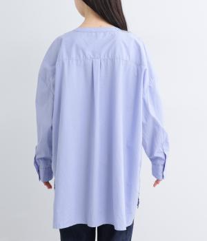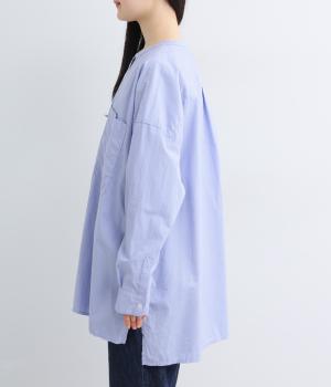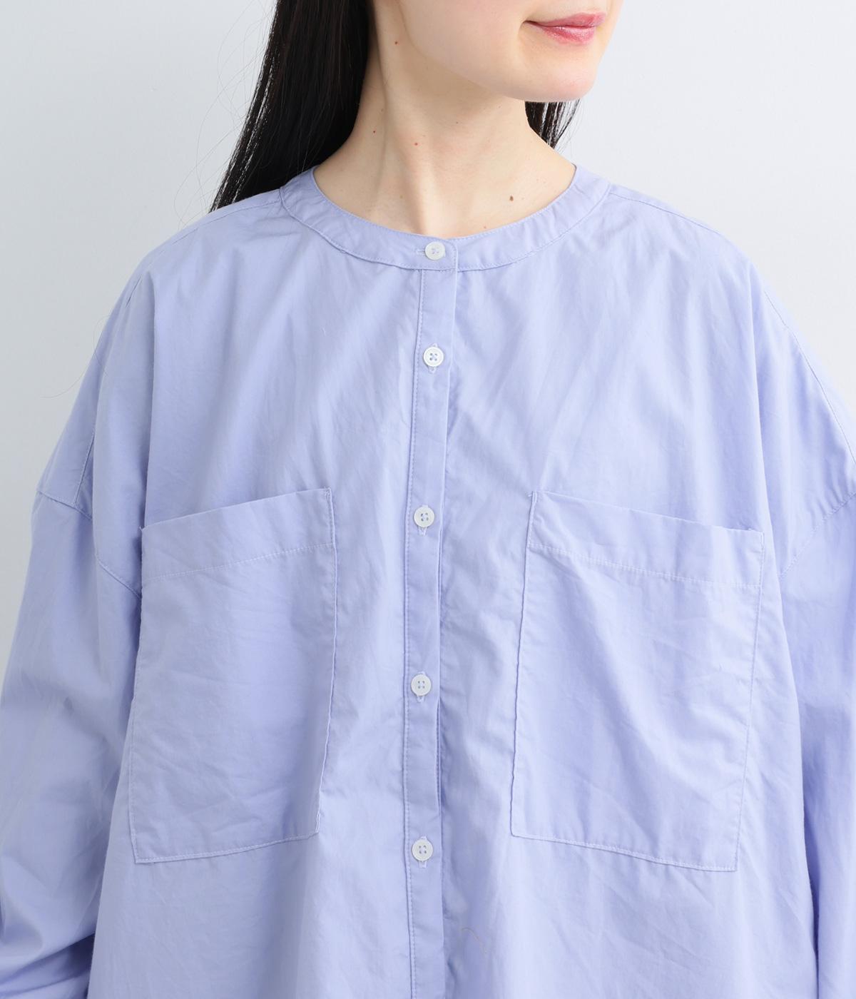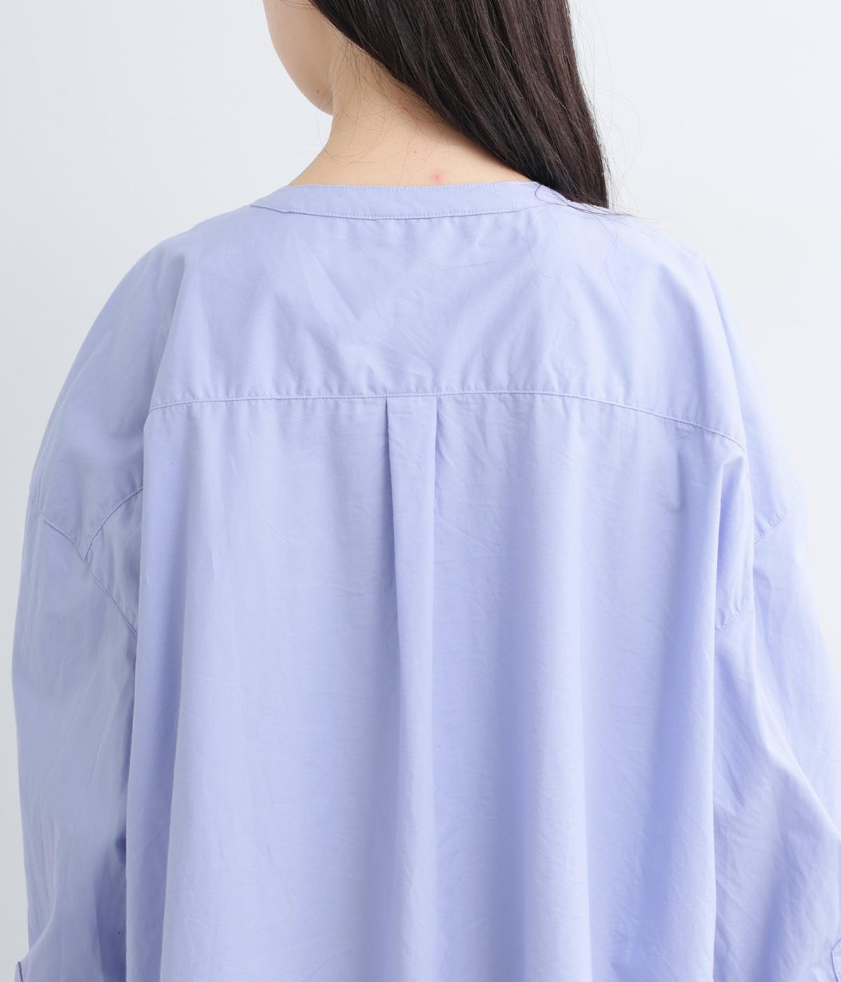 前面に配した大きなポケットがアクセントを添えています。腰まわりをカバーするゆったりとしたシルエットで、リラックス感のある着心地です。首元はバンドカラーですっきりとバランスよく仕上げました。