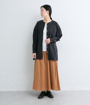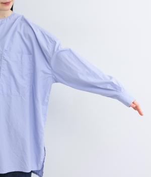 しなやかでハリのあるコットンタイプライター素材を使用しました。ほのかな艶感が上品な表情を添えます。肌ばなれがよく、快適な着心地を叶えます。