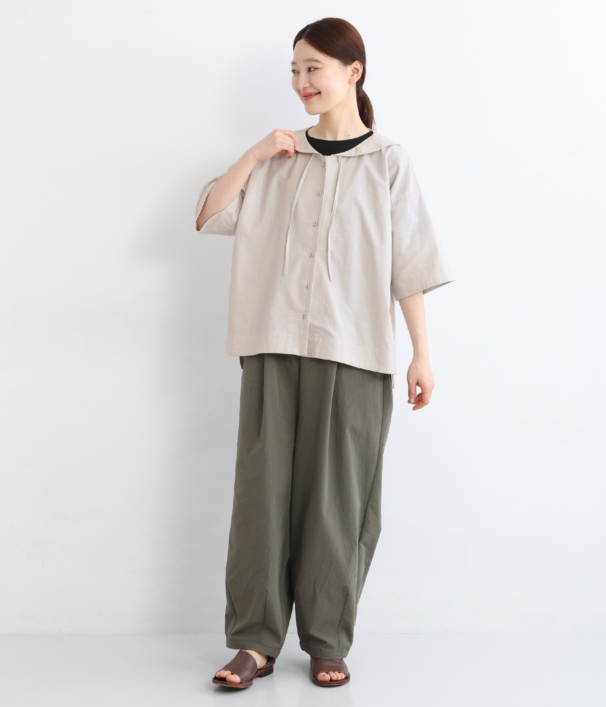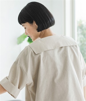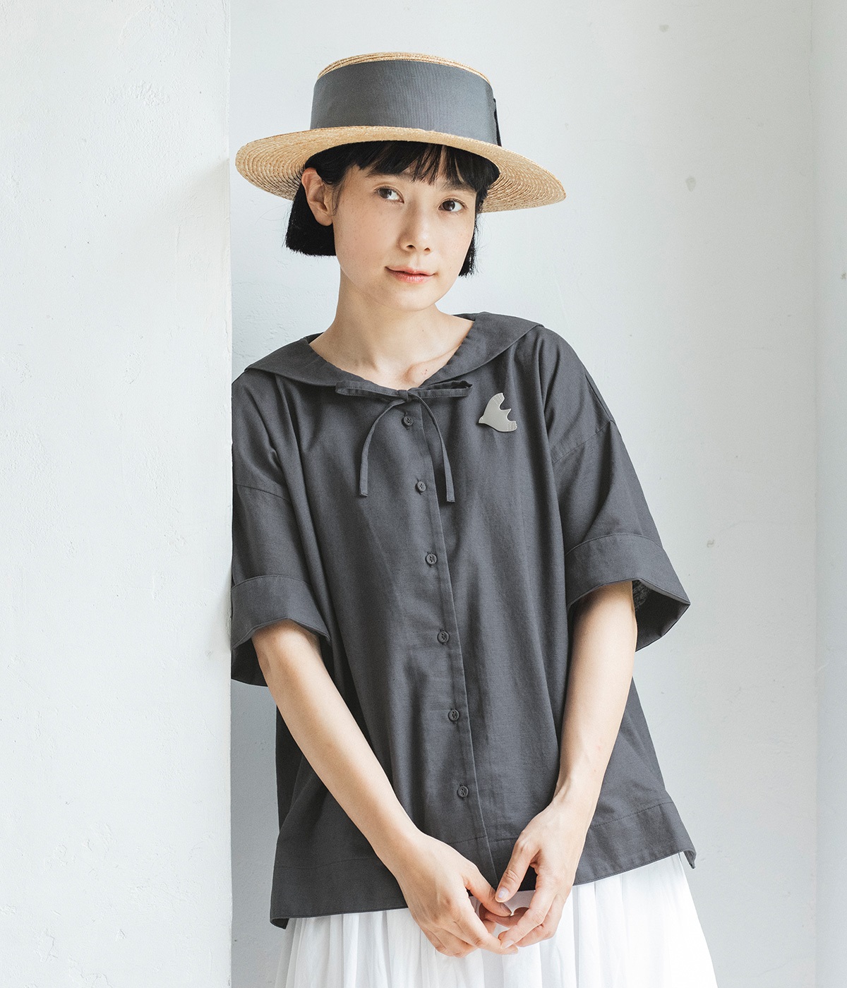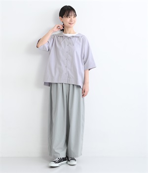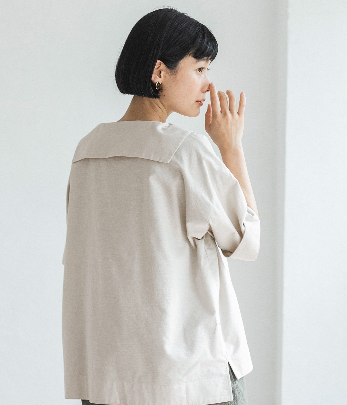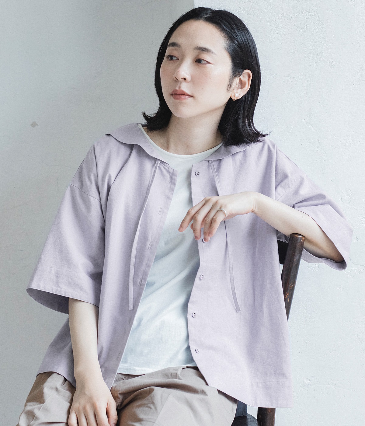 浅めのセーラーカラーがアクセント。やさしい印象の生地感と襟元のリボンが、やわらかな雰囲気を演出。いつものスタイリングをブラッシュアップしてくれます。