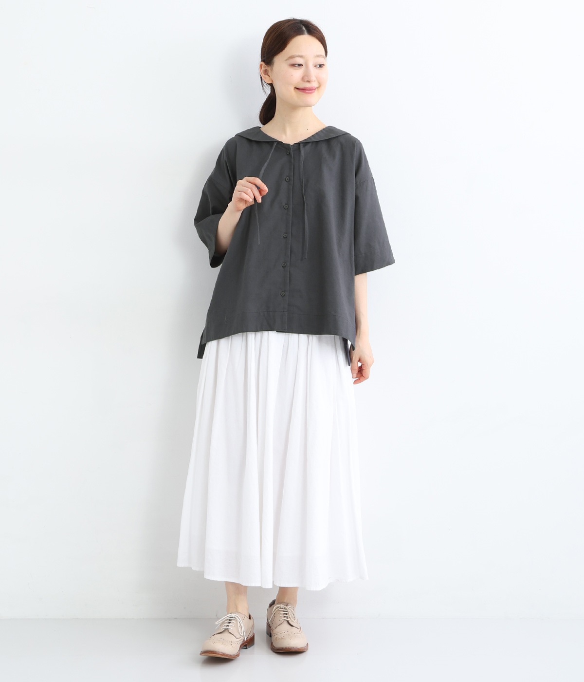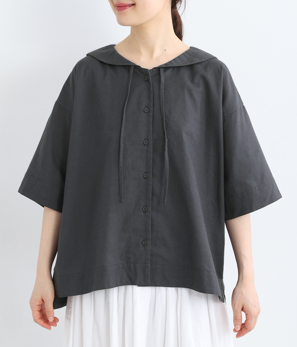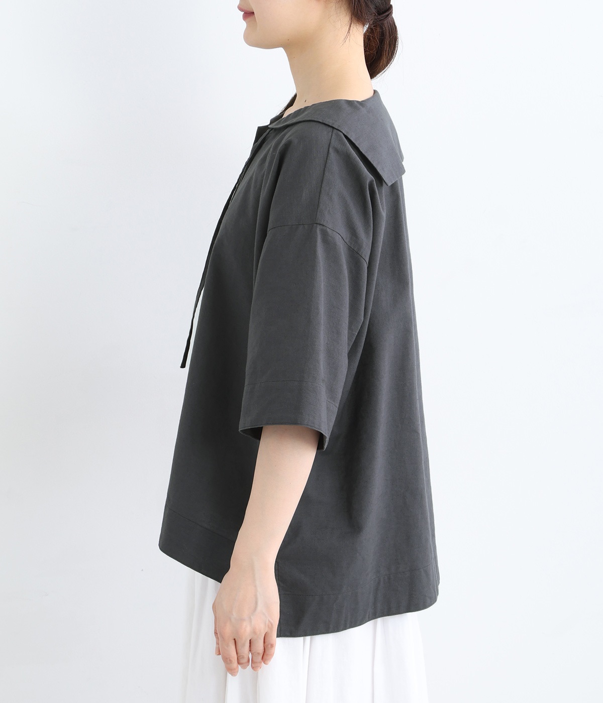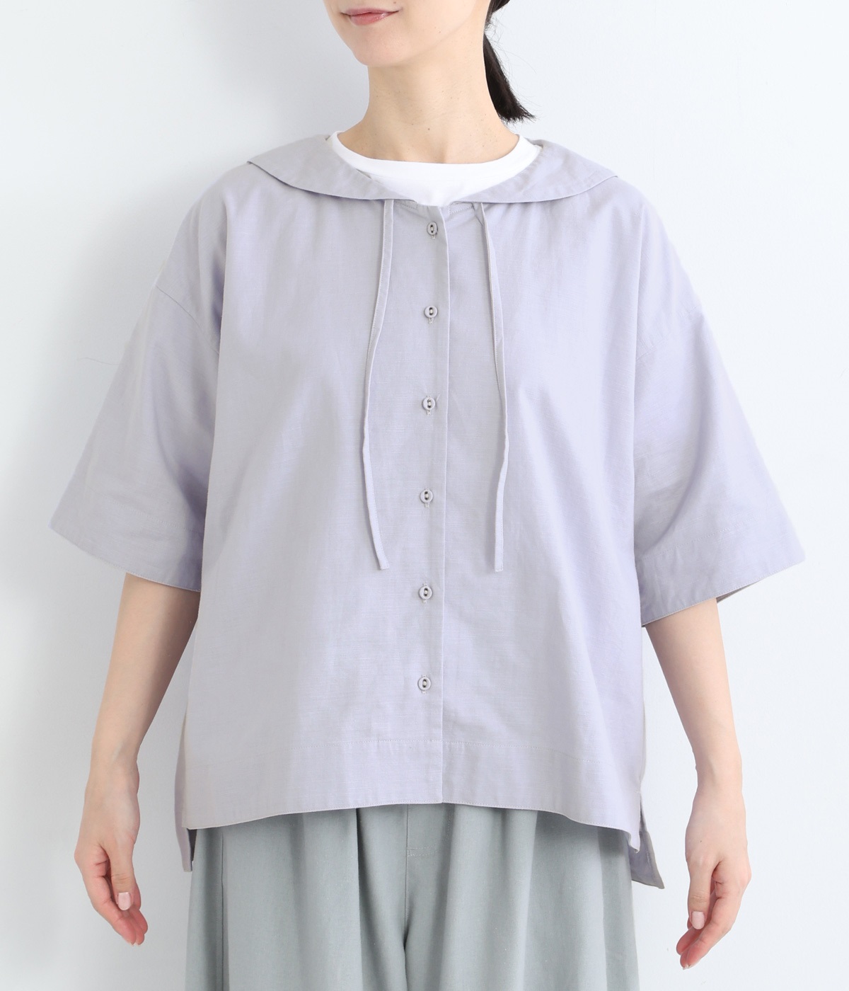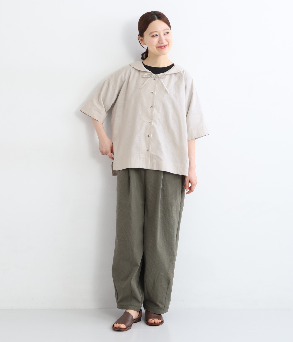 浅めのセーラーカラーがアクセント。やさしい印象の生地感と襟元のリボンが、やわらかな雰囲気を演出。いつものスタイリングをブラッシュアップしてくれます。