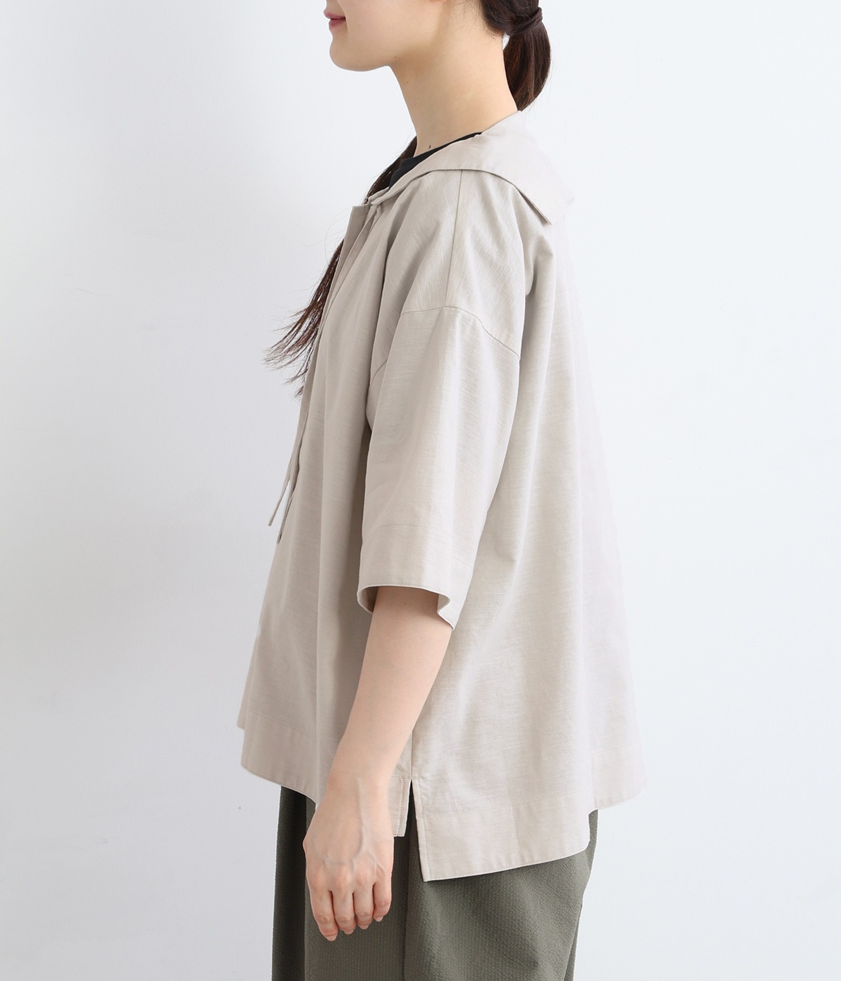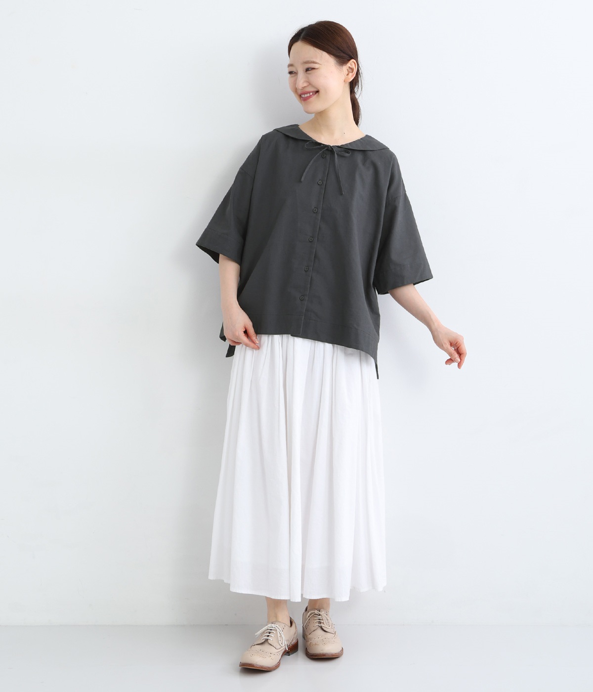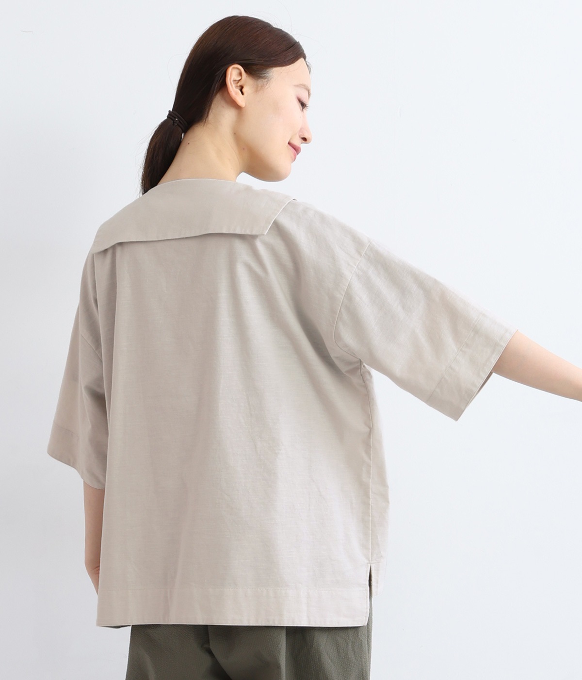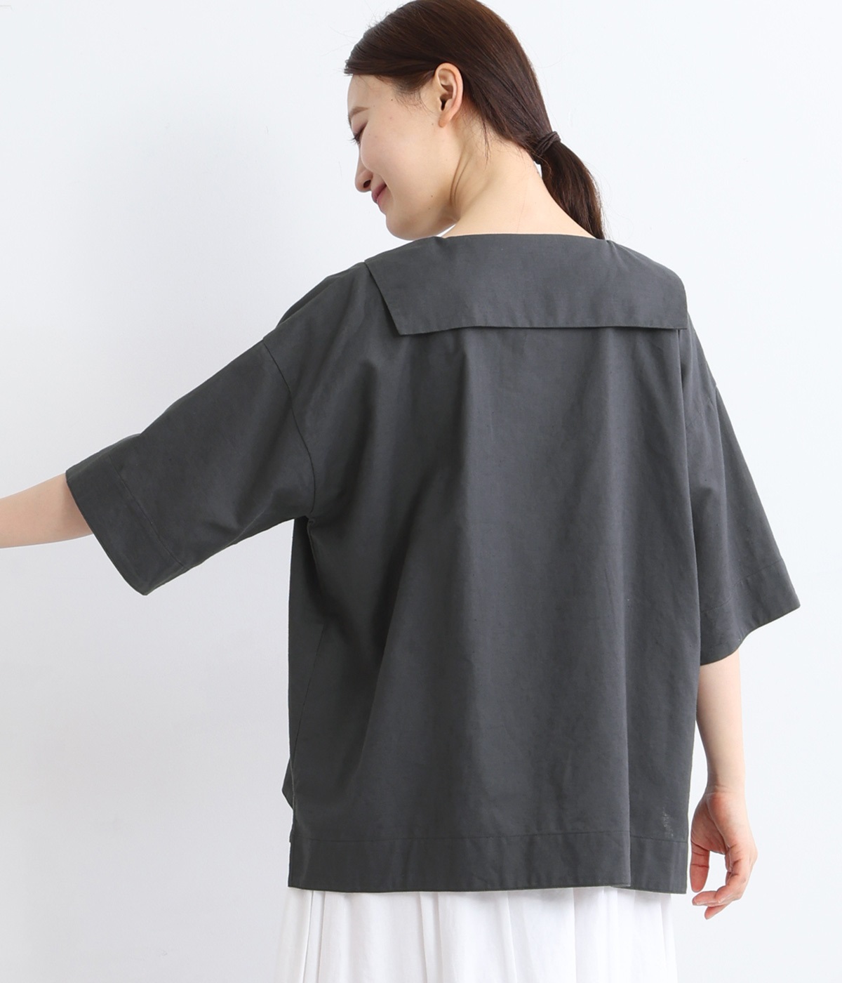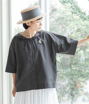 浅めのセーラーカラーがアクセント。やさしい印象の生地感と襟元のリボンが、やわらかな雰囲気を演出。いつものスタイリングをブラッシュアップしてくれます。