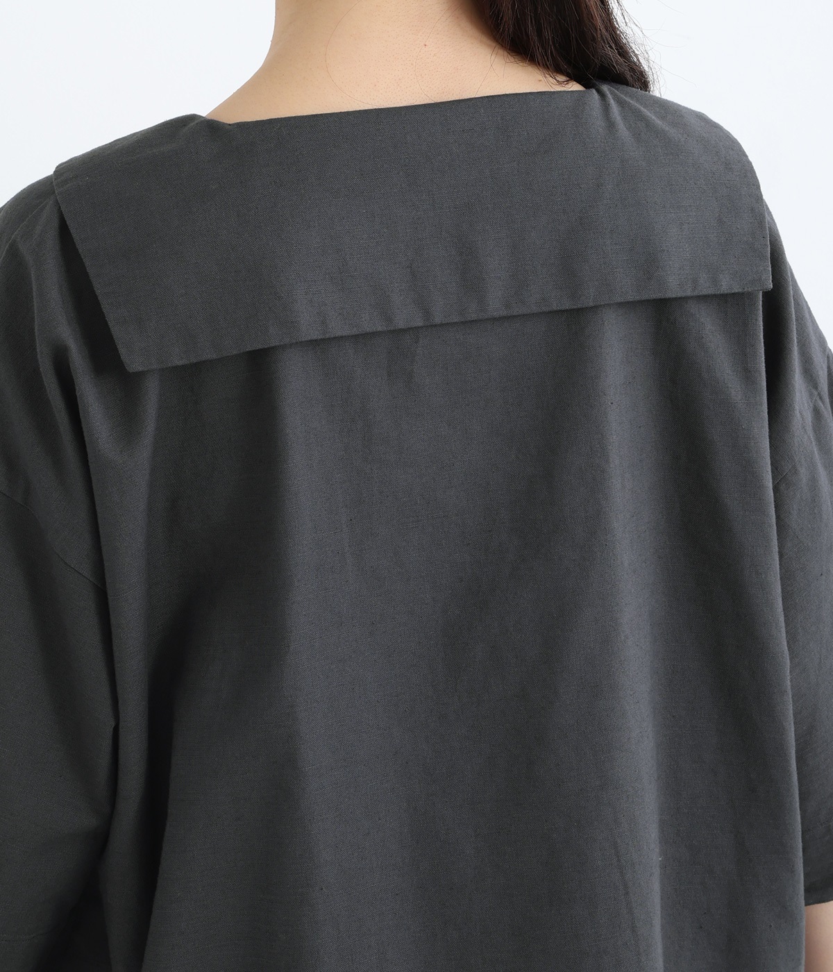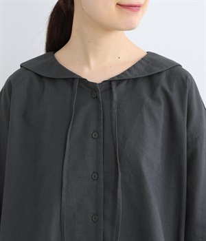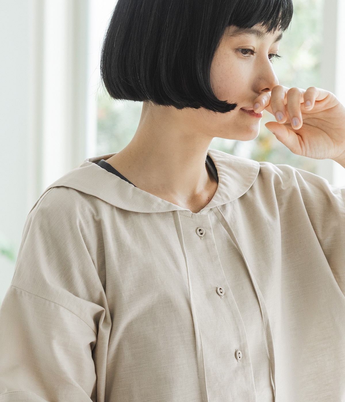 小さめに仕立てたセーラーカラーは、甘くなりすぎず、大人にこそ似合う絶妙なバランス。洗練された印象のくるみボタンなど、細やかなこだわりが光る一枚です。