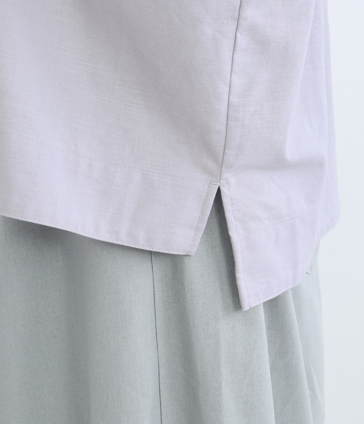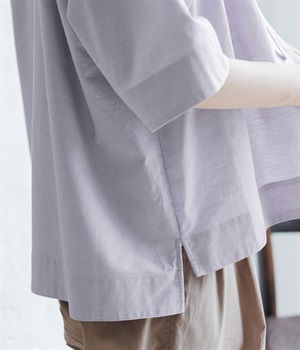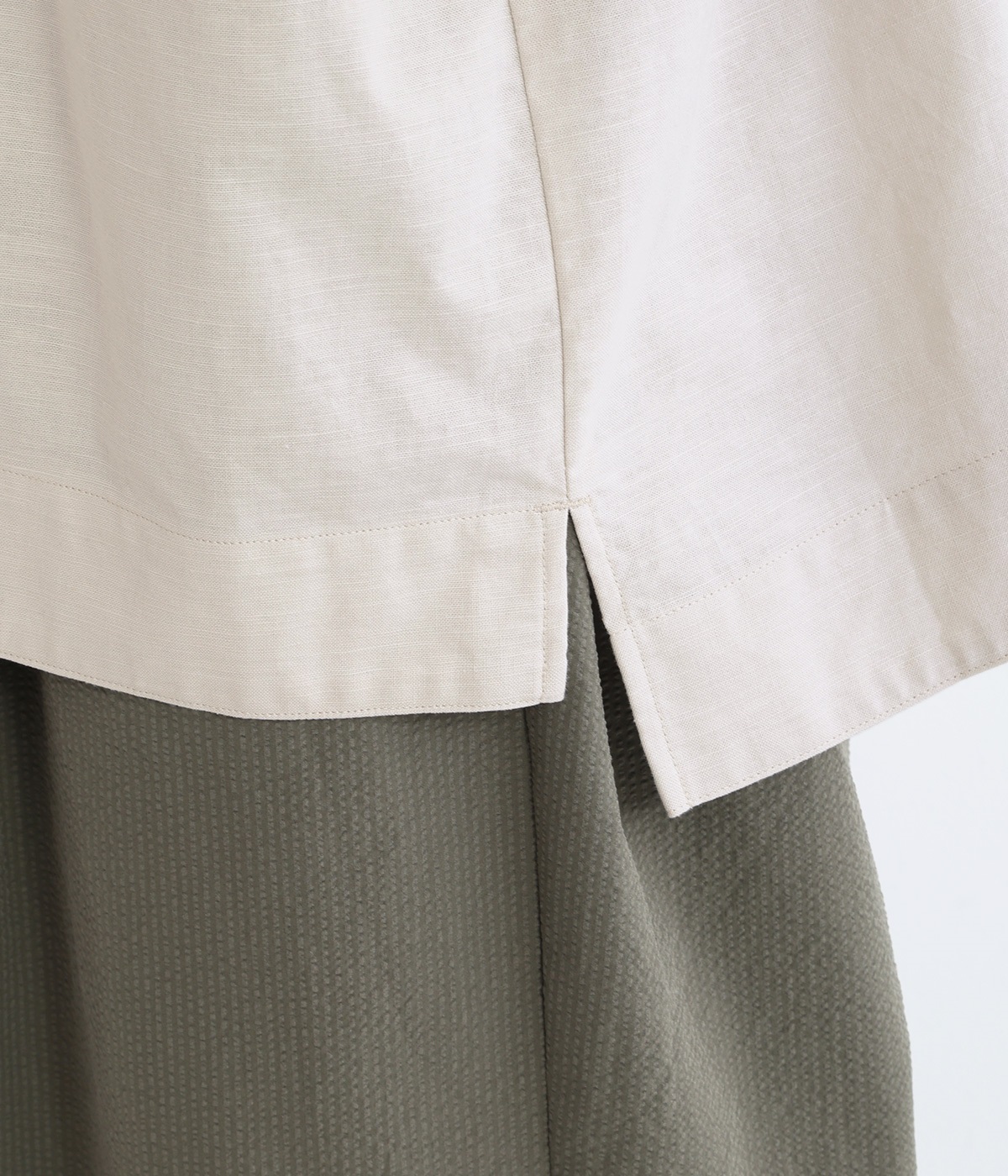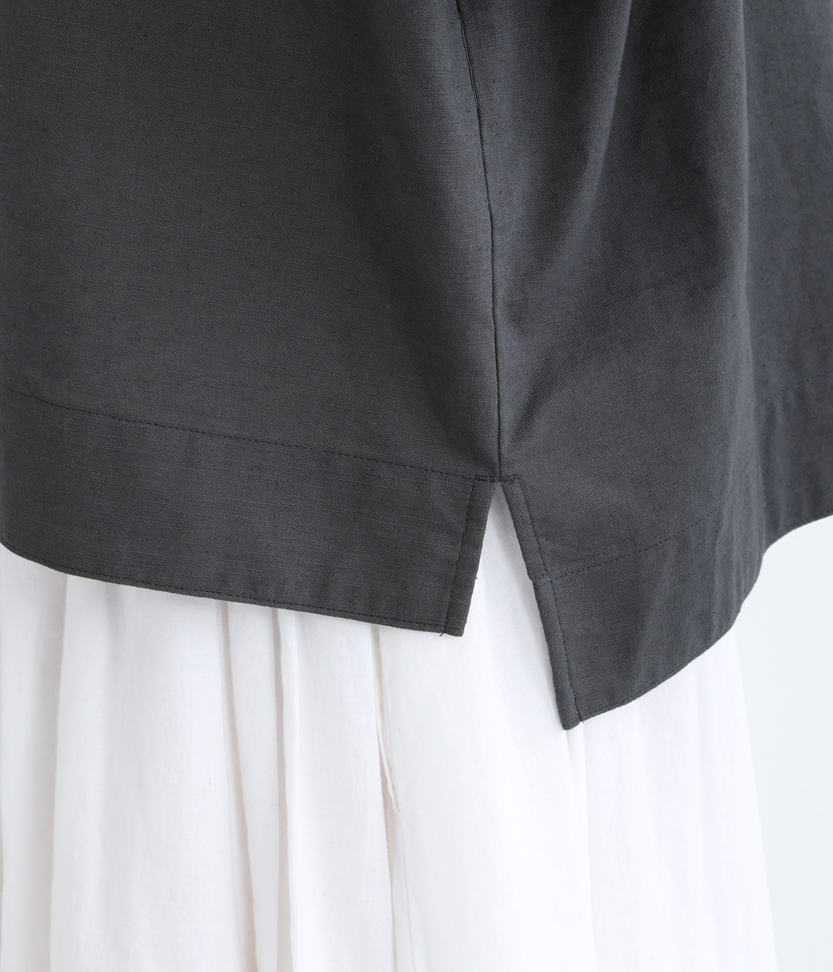 サイドにはスリットが入っていて、着こなしに表情を生み出します。丈は前後差があるので幅広いボトムスとバランスが取りやすいブラウスです。