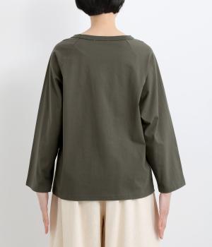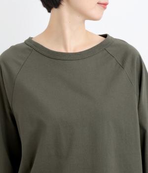 ほどよい厚みのコットン生地を使用しました。素肌にやさしく、着るほどになじみます。首元にはリブを合わせて着やすさにも配慮しました。デイリー使いにぴったりな素材感です。