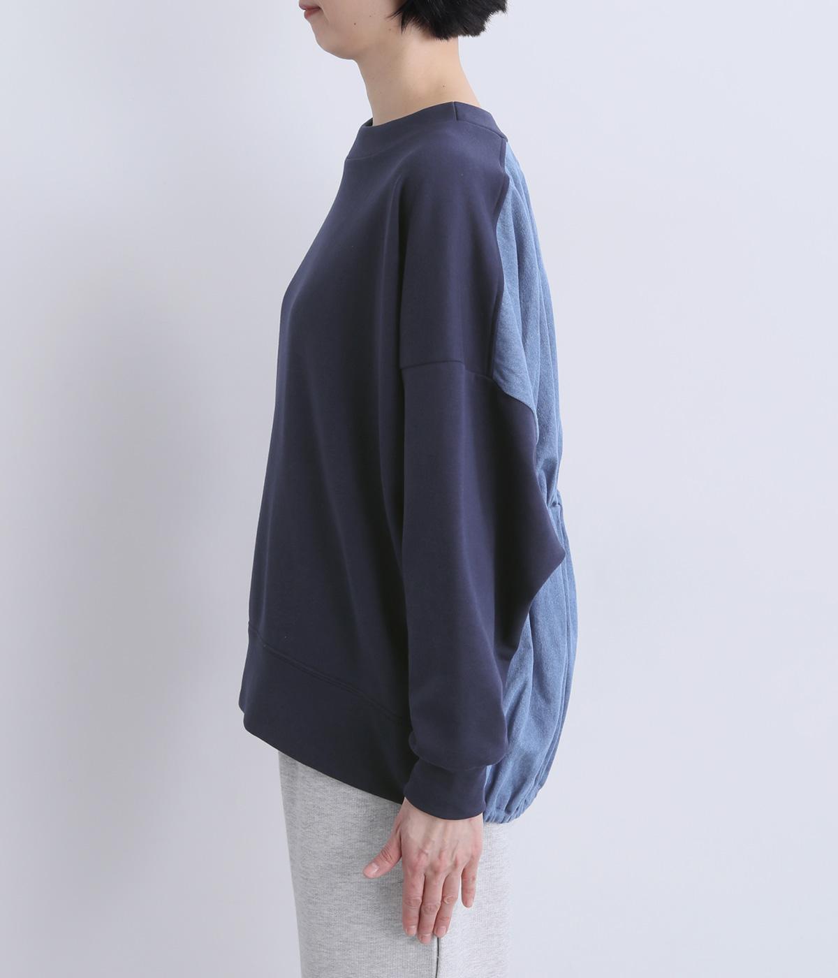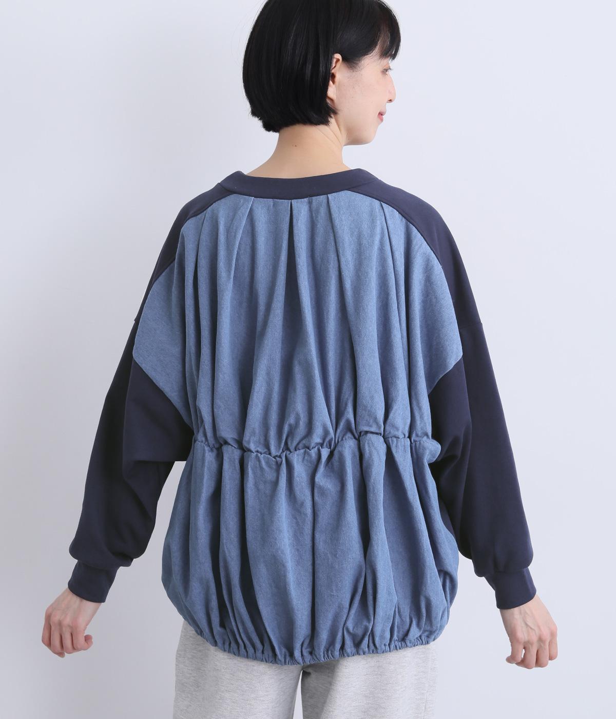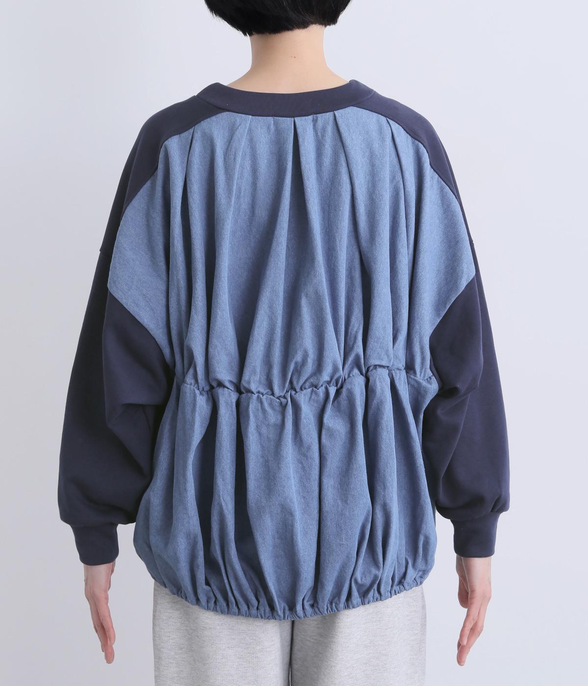 ミニ裏毛×デニムバックシャーリングプルオーバー(ネイビー-F)