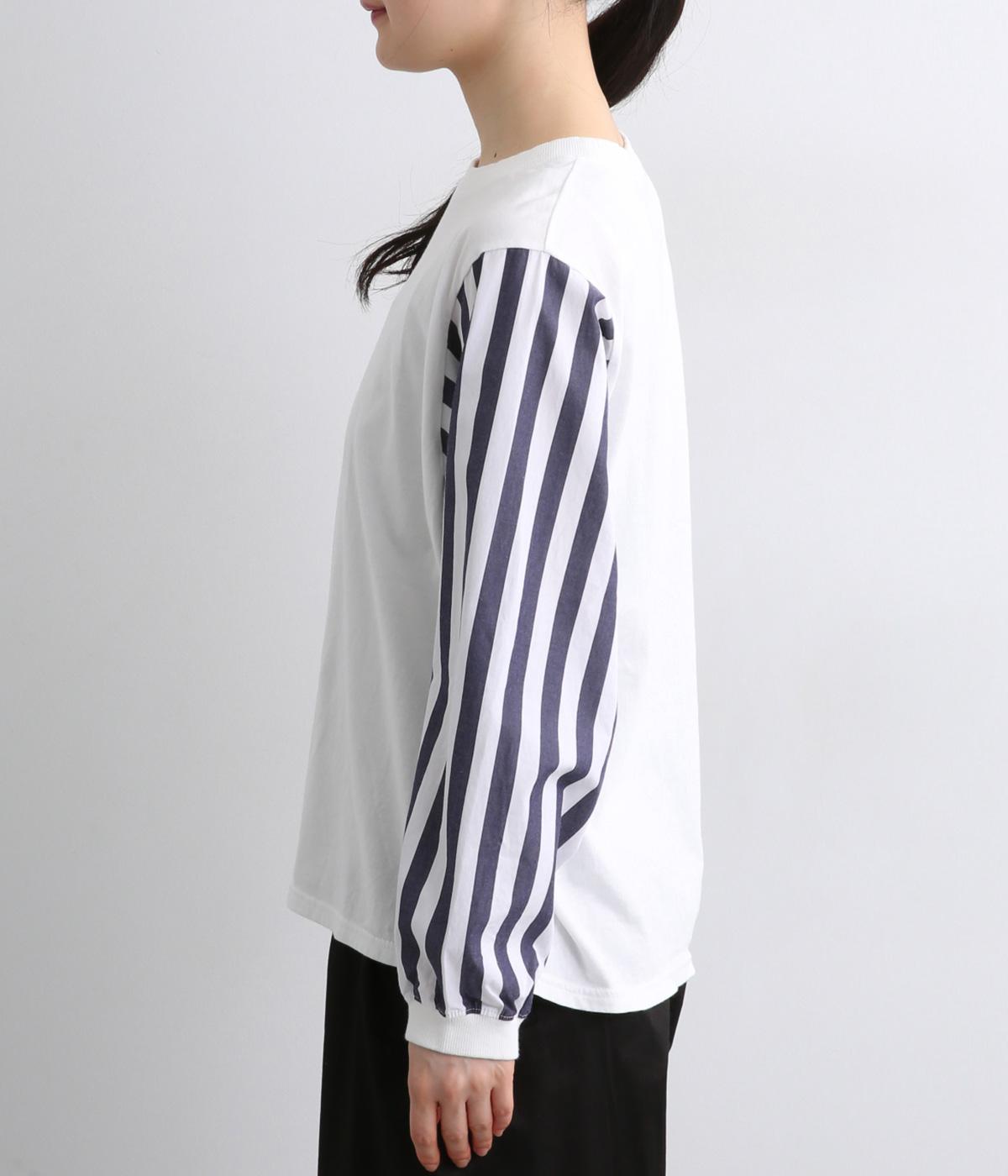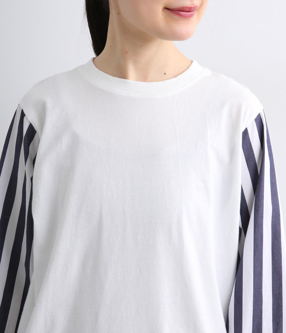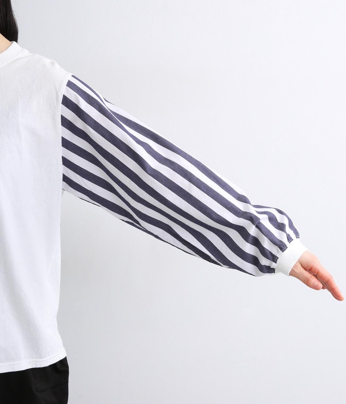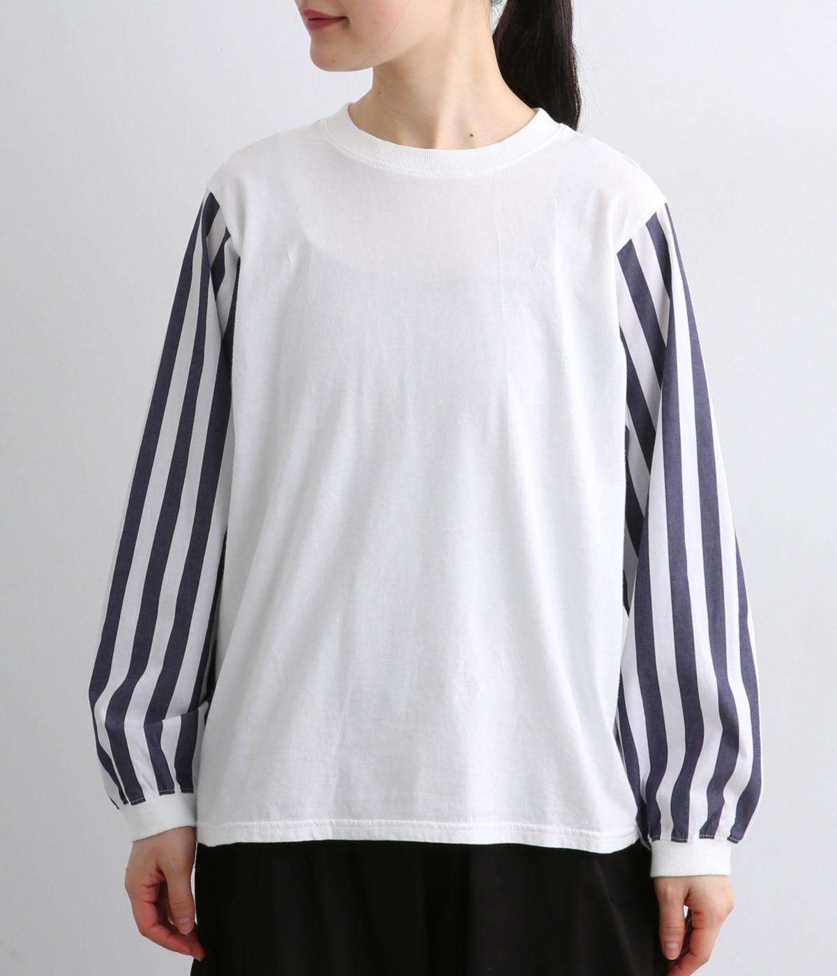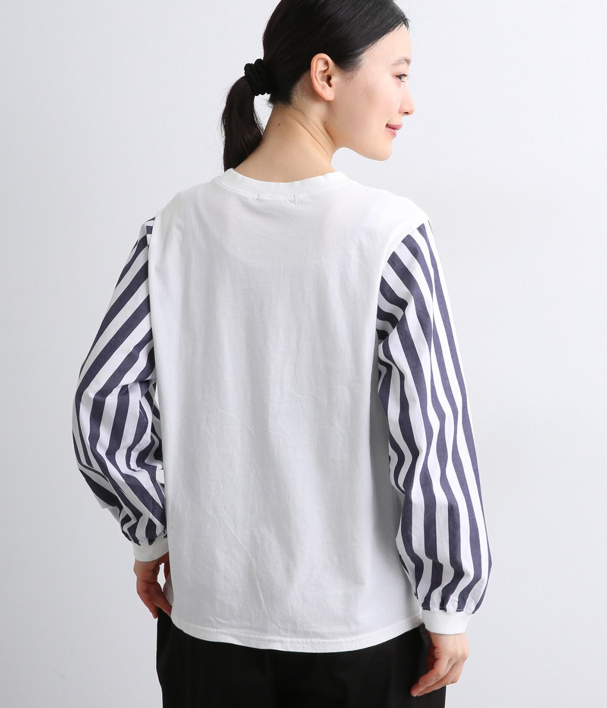 デイリースタイルに欠かせないカットソープルオーバーの袖を柄生地に切り替えて、着心地の良さを担保しながらもお洒落アイテムへと昇華。袖口はリブを配しているのでたくし上げのアレンジも◎。サロペットなどのインナー使いにも最適です。