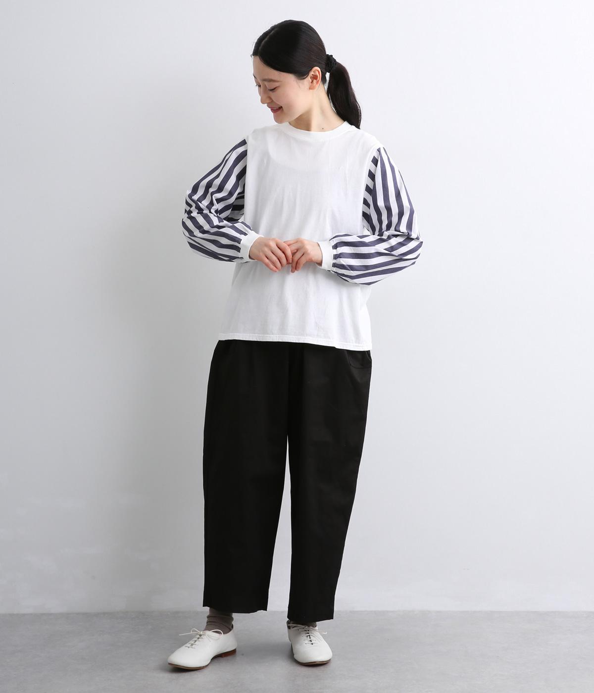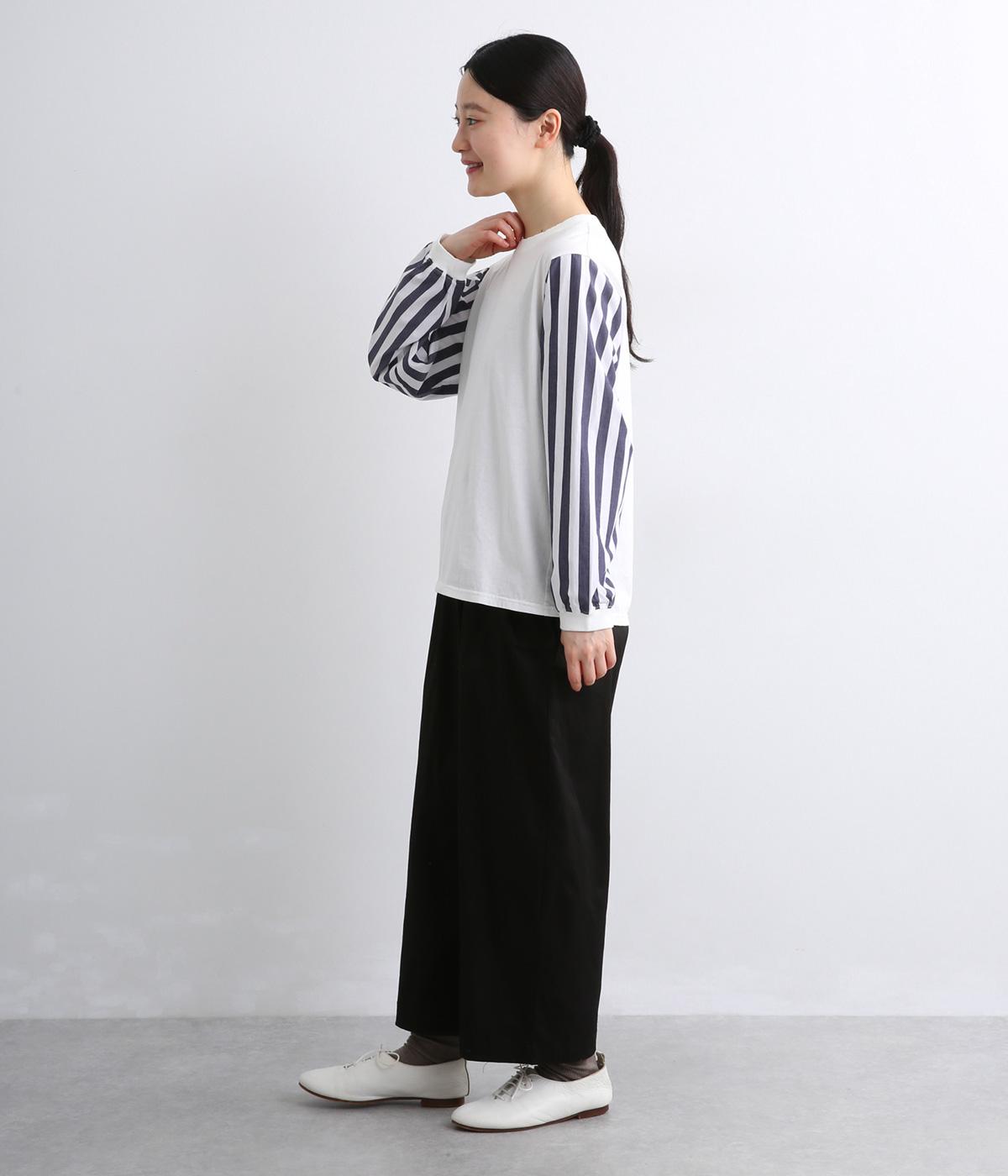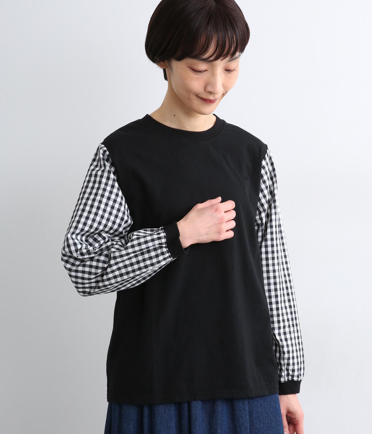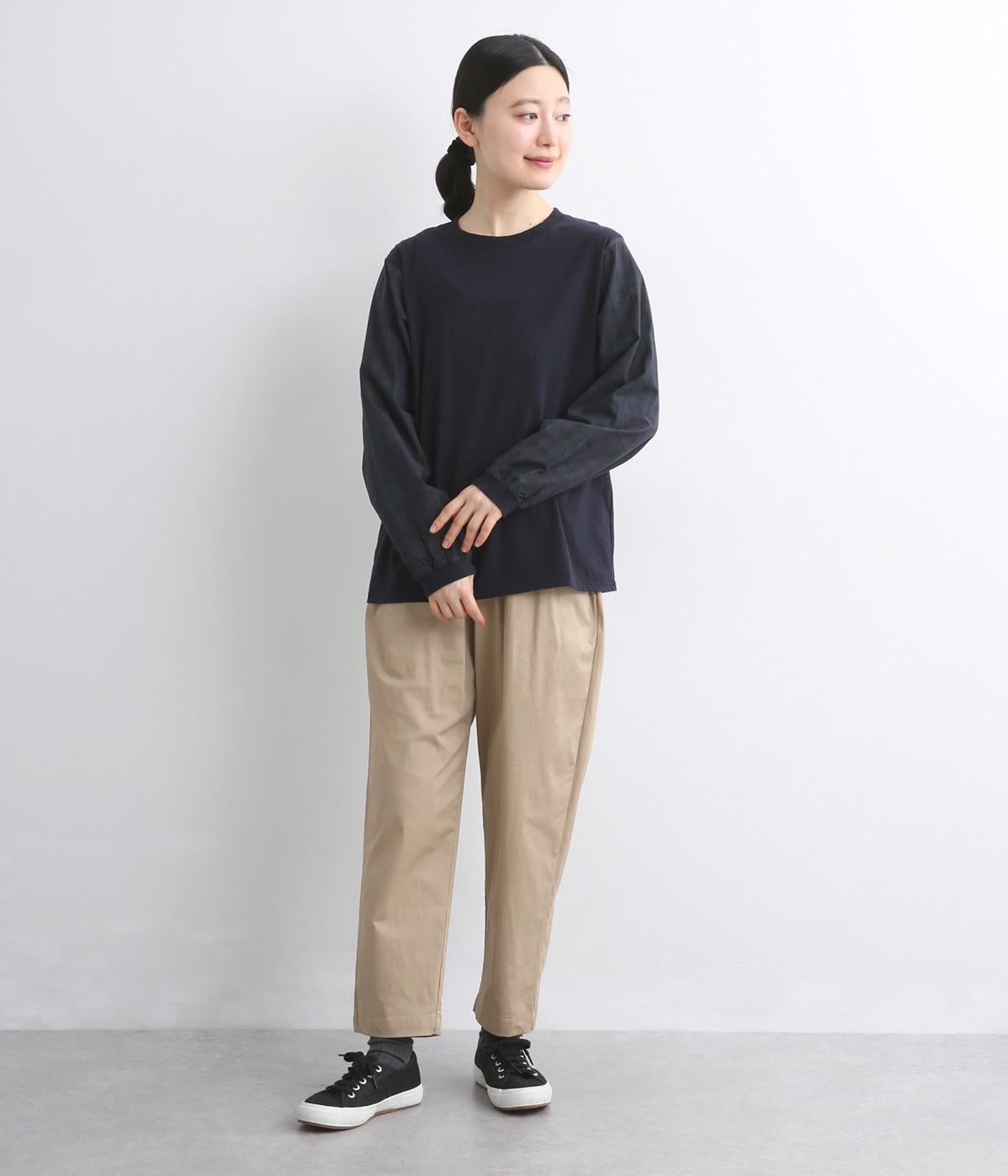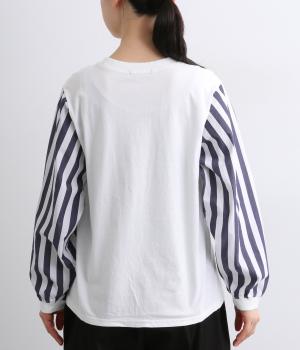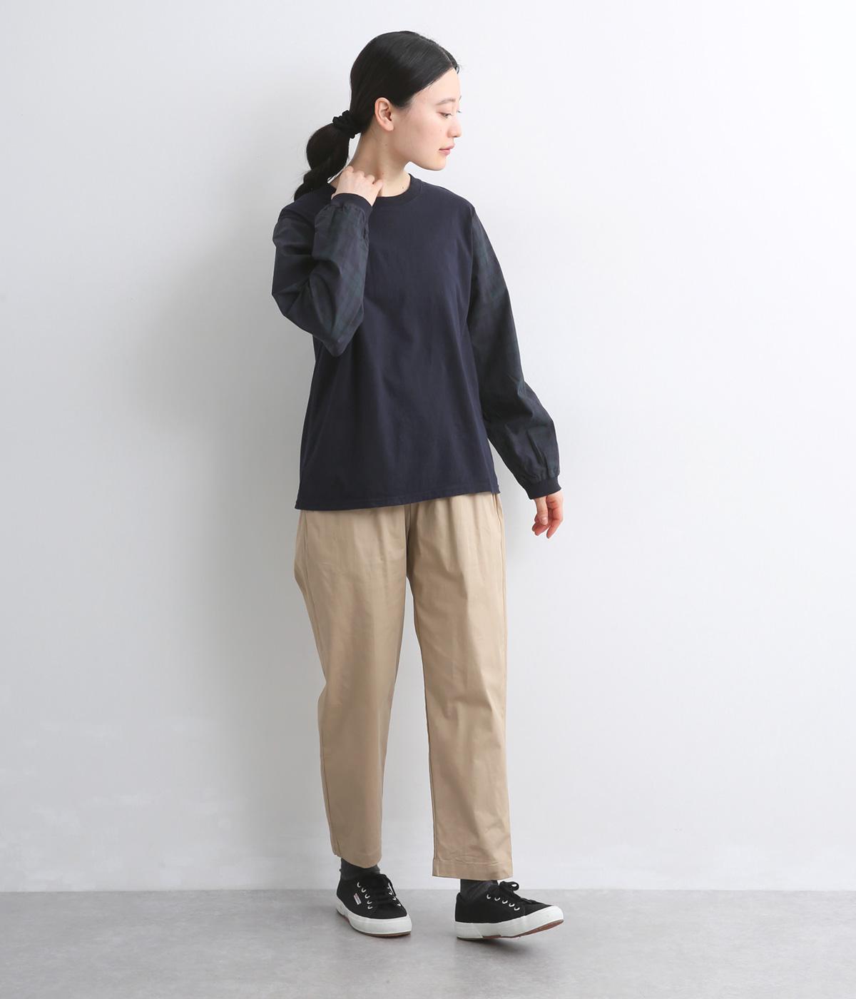 デイリースタイルに欠かせないカットソープルオーバーの袖を柄生地に切り替えて、着心地の良さを担保しながらもお洒落アイテムへと昇華。袖口はリブを配しているのでたくし上げのアレンジも◎。サロペットなどのインナー使いにも最適です。
