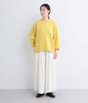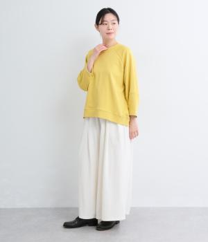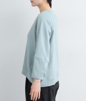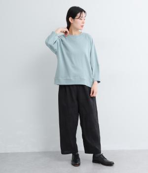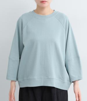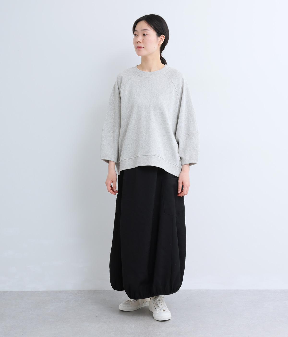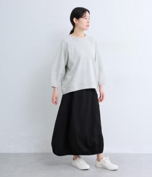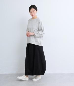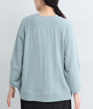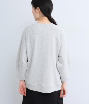 シンプルなプルオーバーはふっくらとしたコクーン袖で特徴をもたせました。ラグラン仕様で肩のラインをやさしく描き、後ろはヨークのようにつなげてデザイン性をプラス。ヒップにかかるほどの丈感で着こなしやすくなっています。