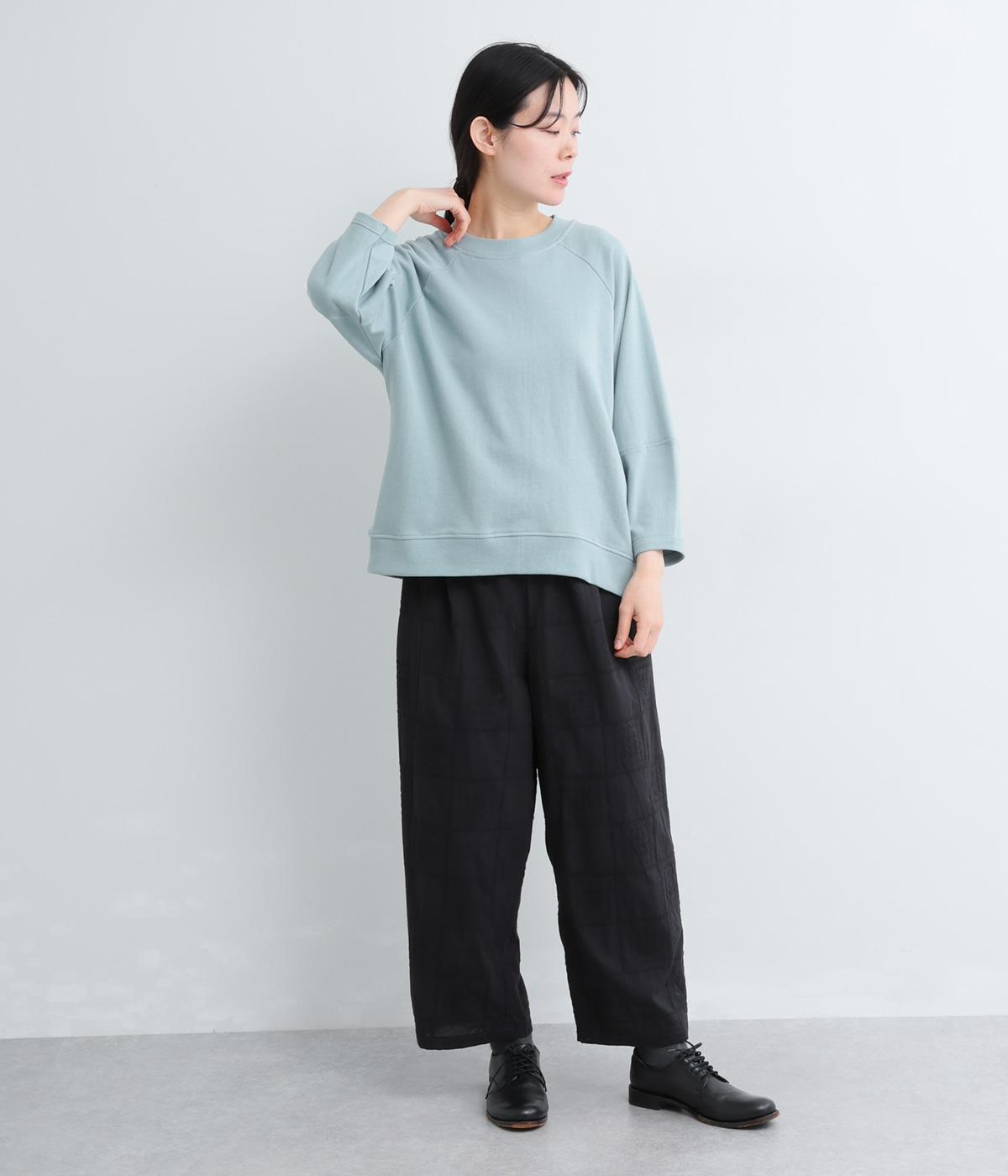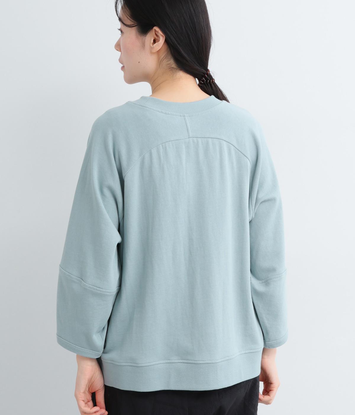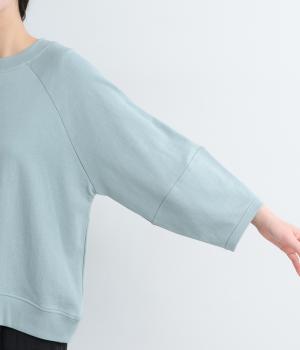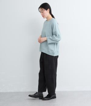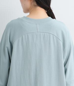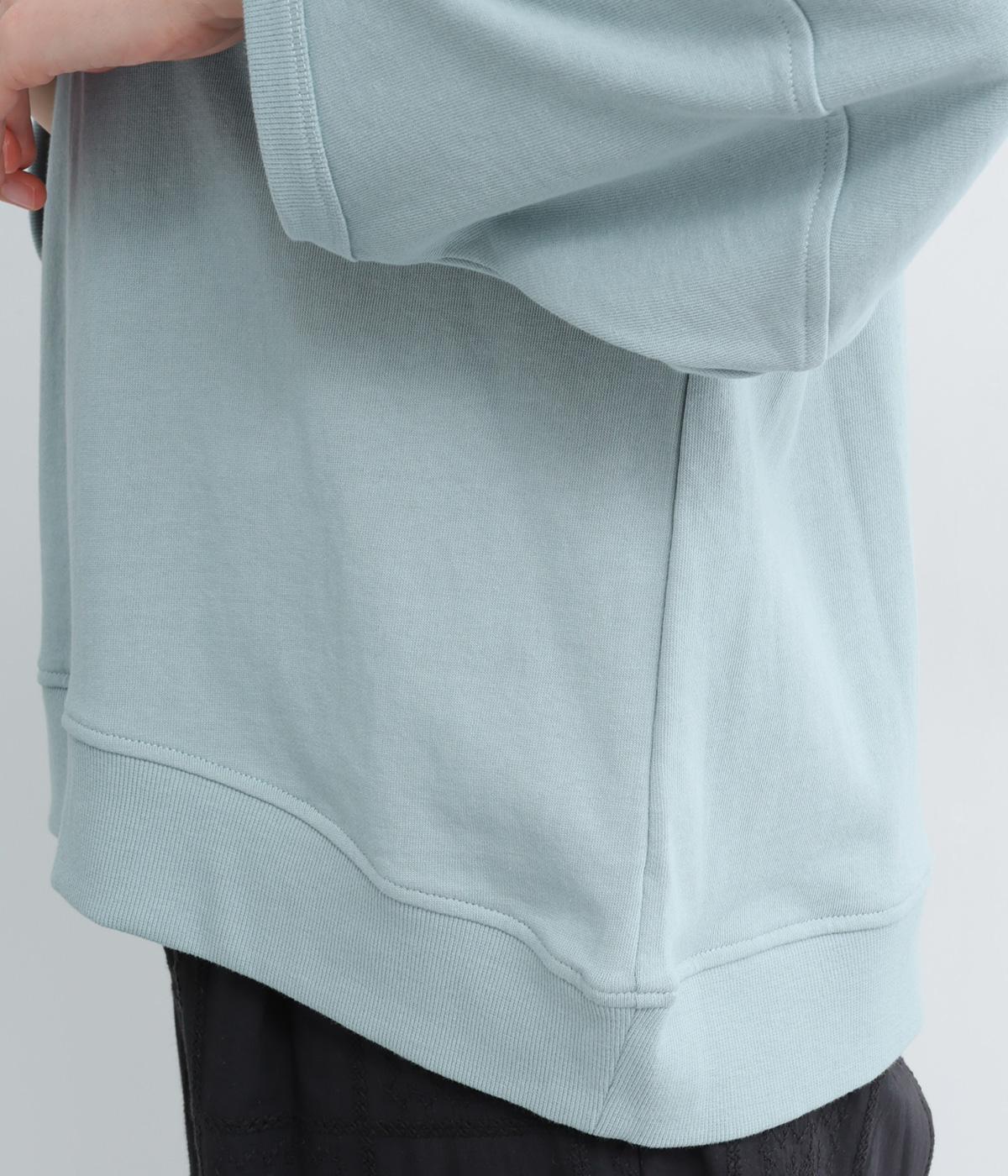 やわらかく肌ざわりの良いコットンミニ裏毛素材で着心地よく仕上げました。適度に落ち感があり、肉厚すぎないのでロングシーズン活躍します。