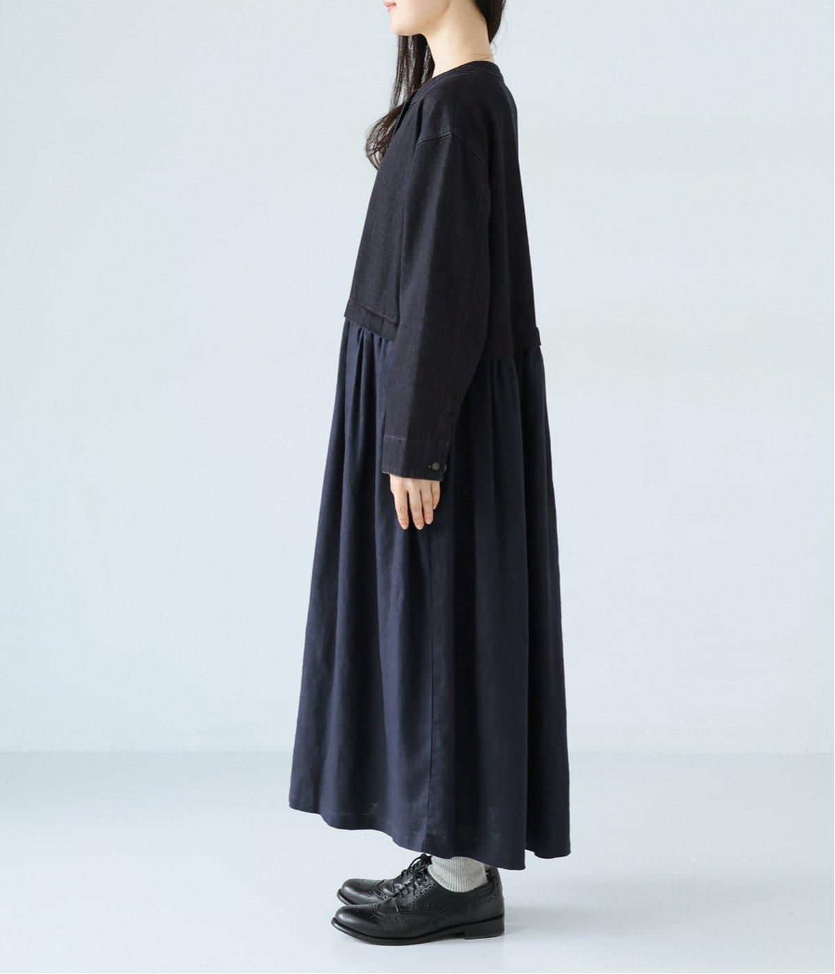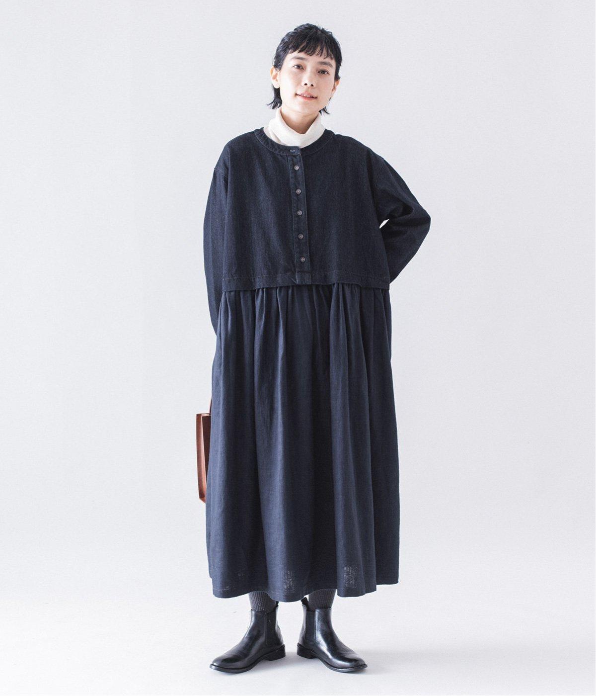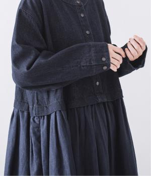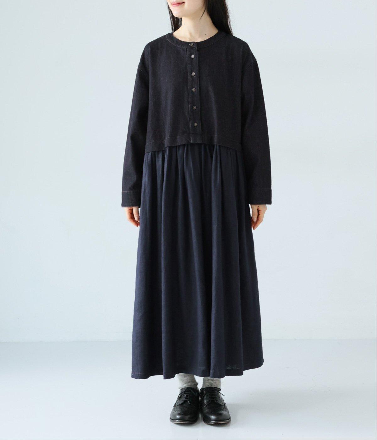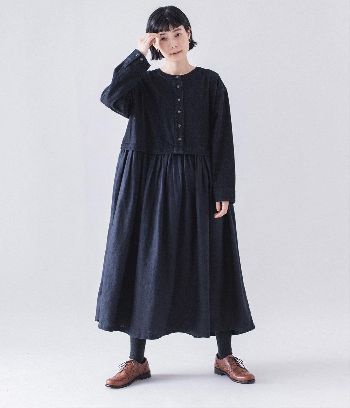 デニムとコットンリネンを掛け合わせた、異素材の切り替えが新鮮なワンピース。ふんわりと広がるAラインが動くたびにやさしく揺れ、重ね着次第でさまざまな着こなしを叶えます。
