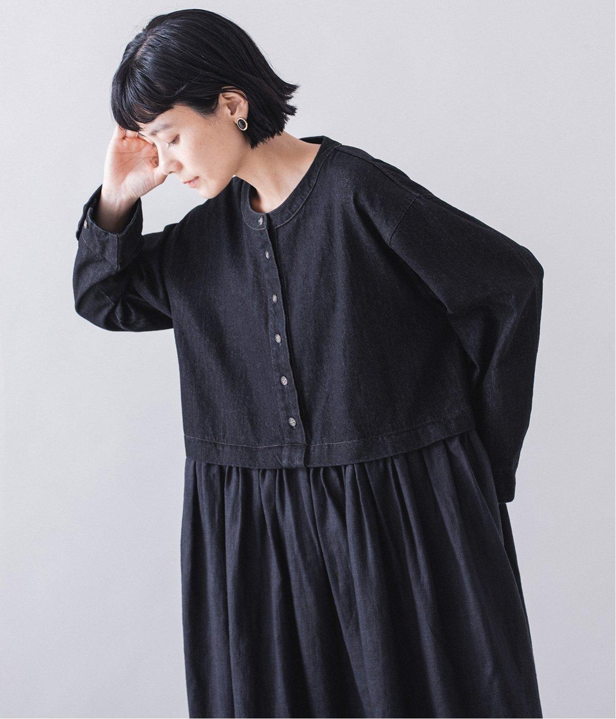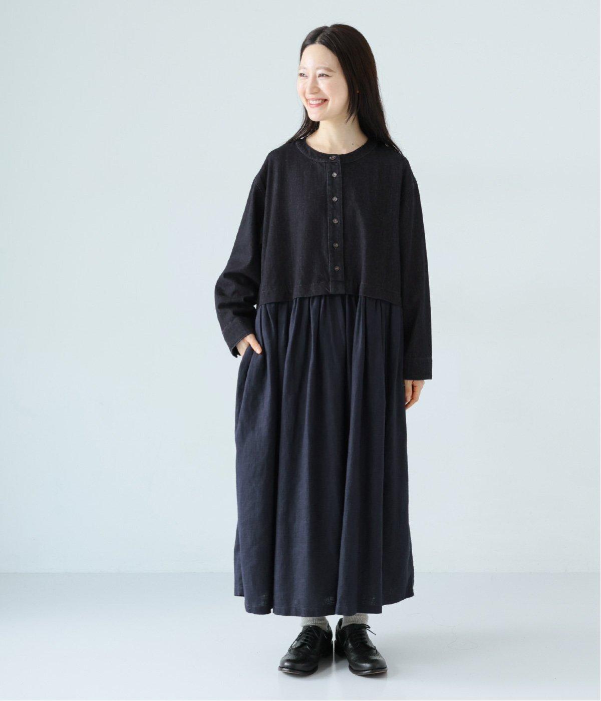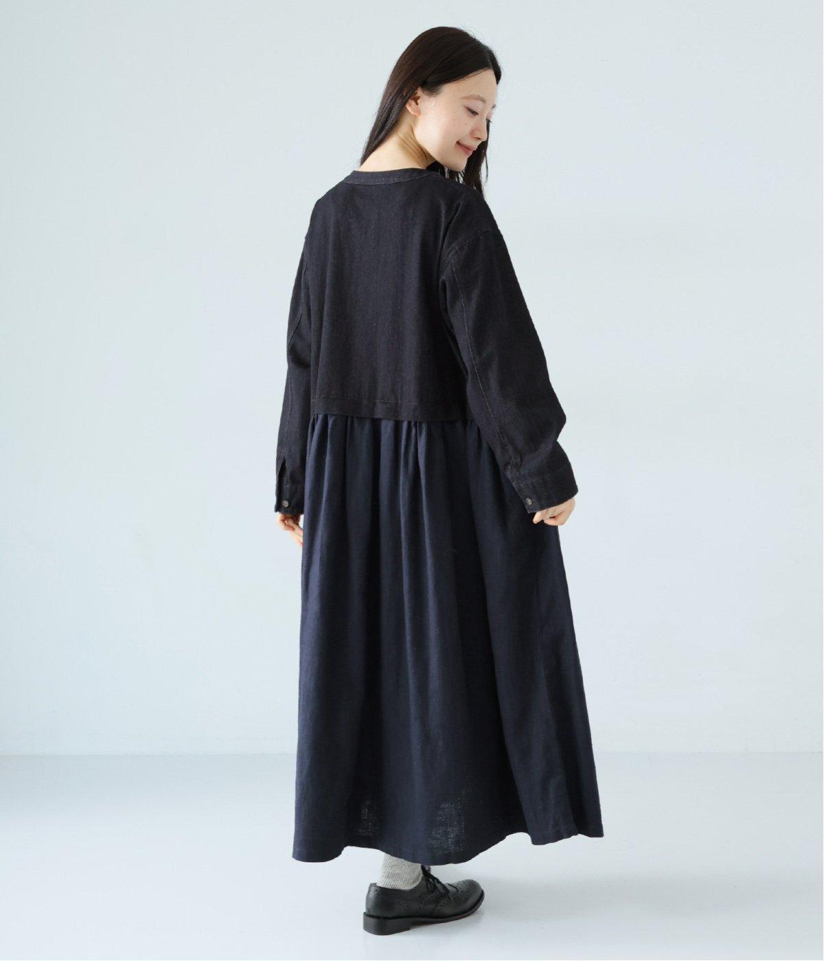 デニムとコットンリネンを掛け合わせた、異素材の切り替えが新鮮なワンピース。ふんわりと広がるAラインが動くたびにやさしく揺れ、重ね着次第でさまざまな着こなしを叶えます。