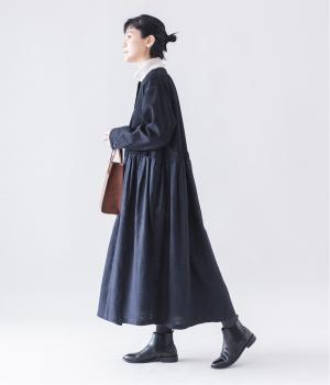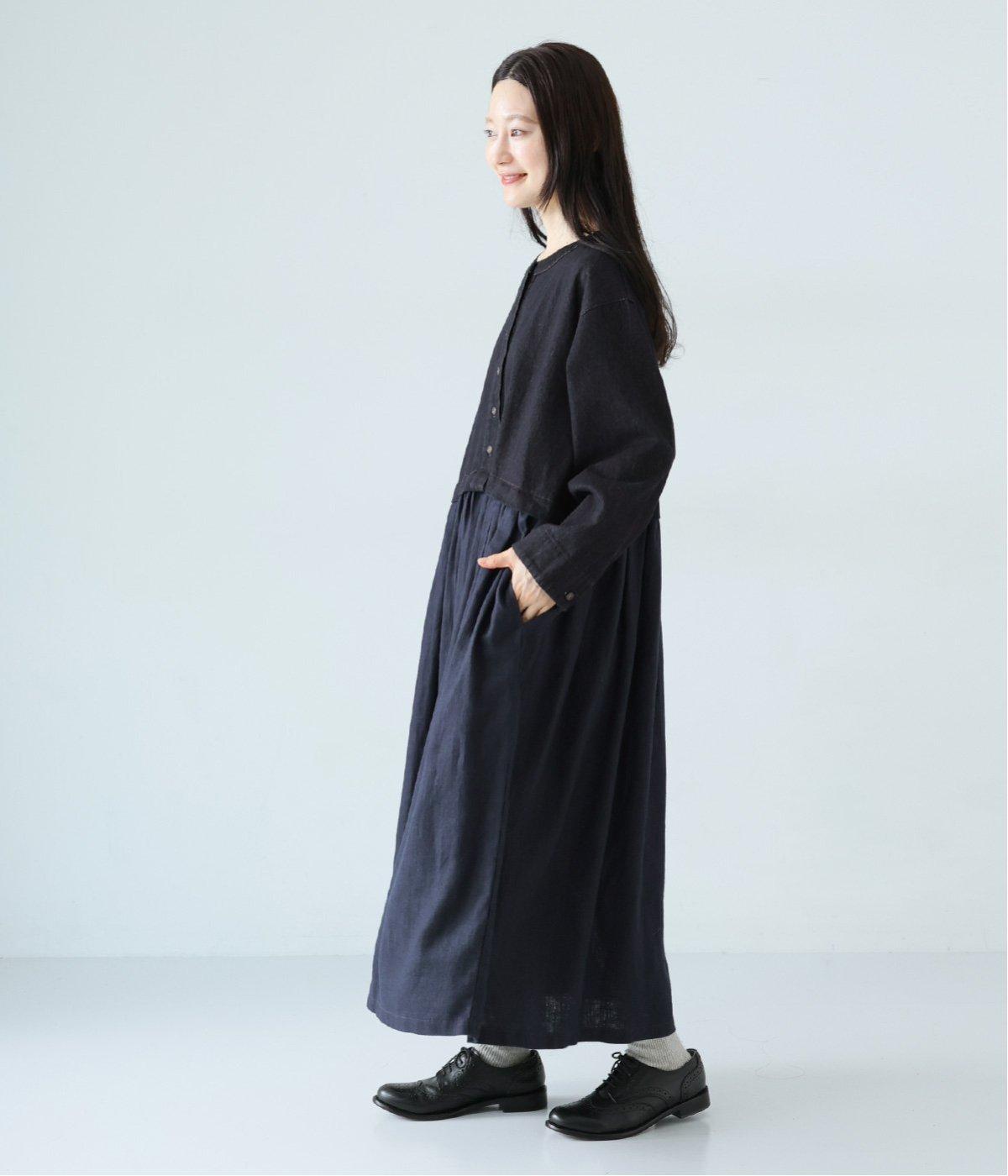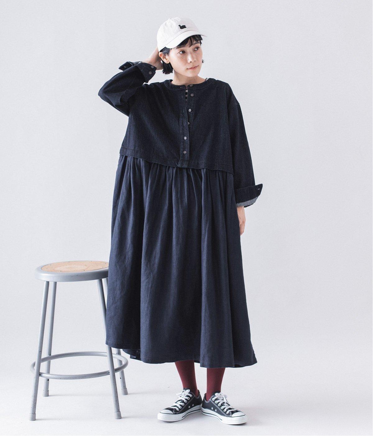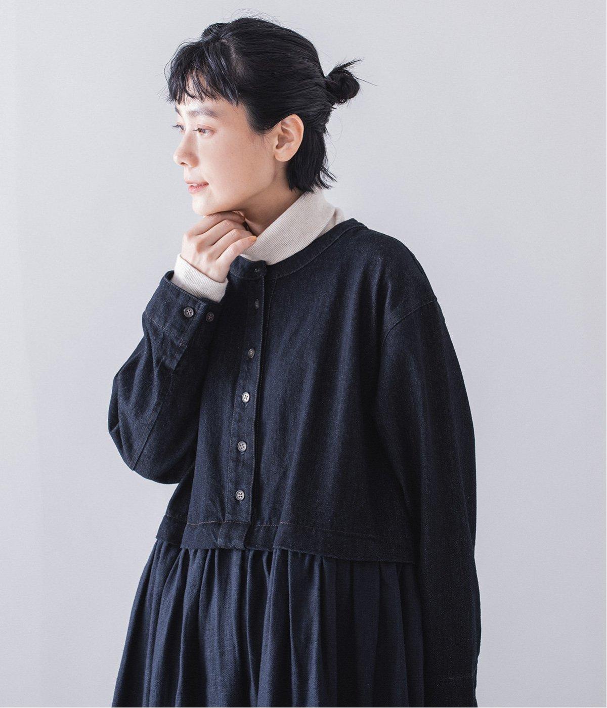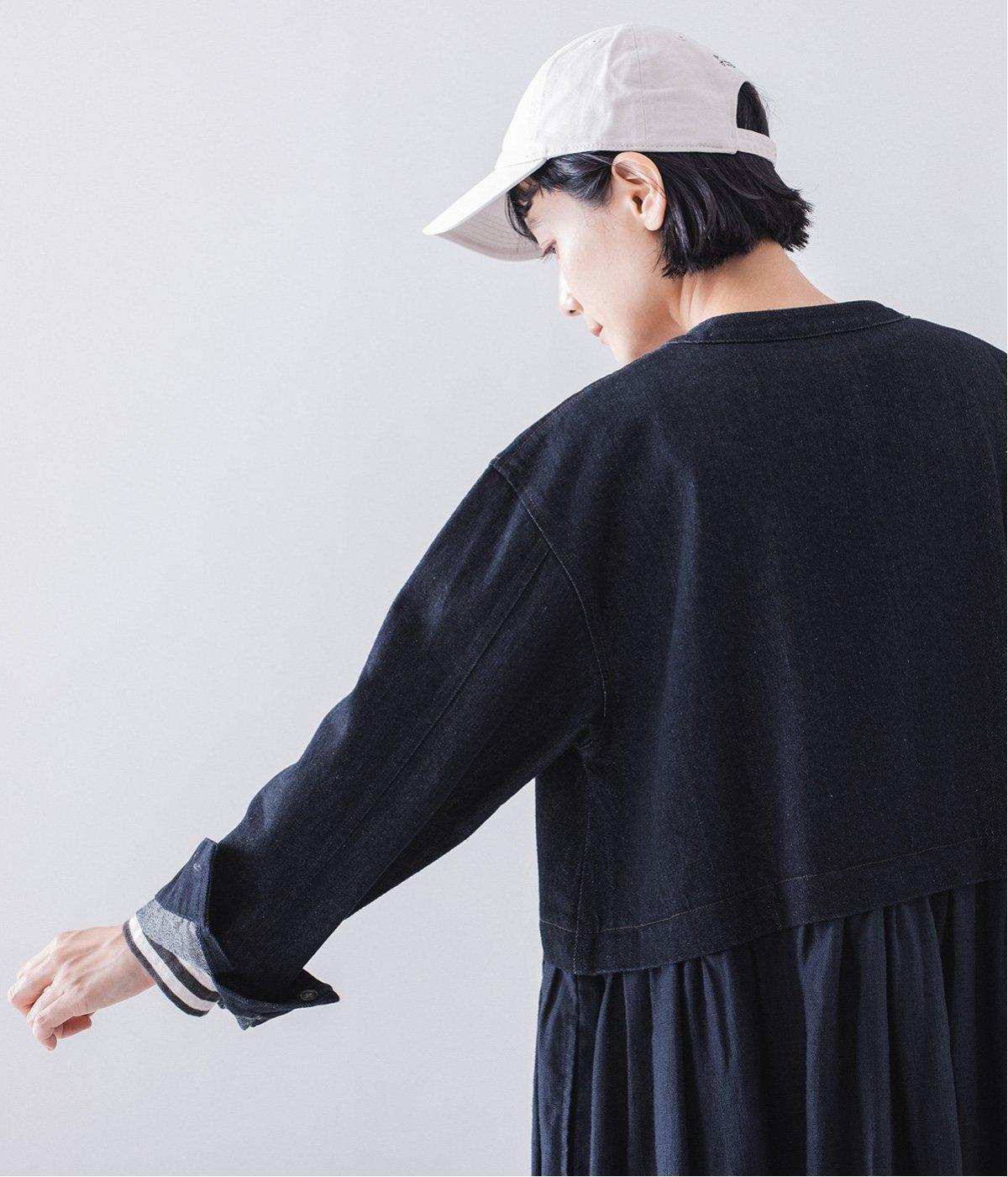デニムとコットンリネンを掛け合わせた、異素材の切り替えが新鮮なワンピース。ふんわりと広がるAラインが動くたびにやさしく揺れ、重ね着次第でさまざまな着こなしを叶えます。