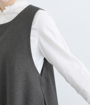 しなやかなハリがシルエットを美しくキープするポリエステル生地で仕立てました。さらりとした手ざわりでやさしい肌あたりです。きちんと感と着心地の良さを両立した素材感です。