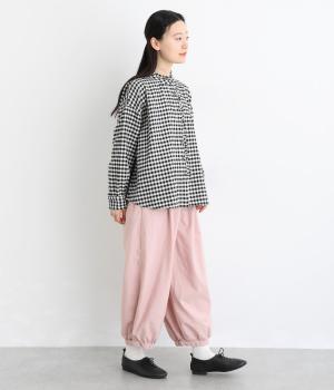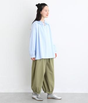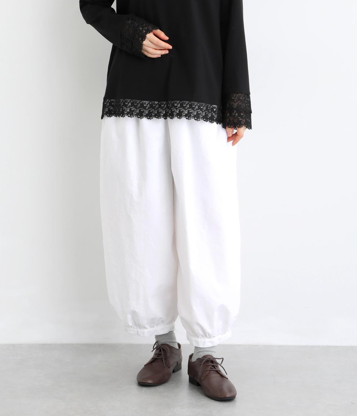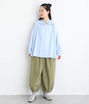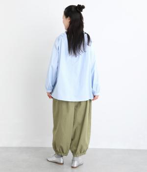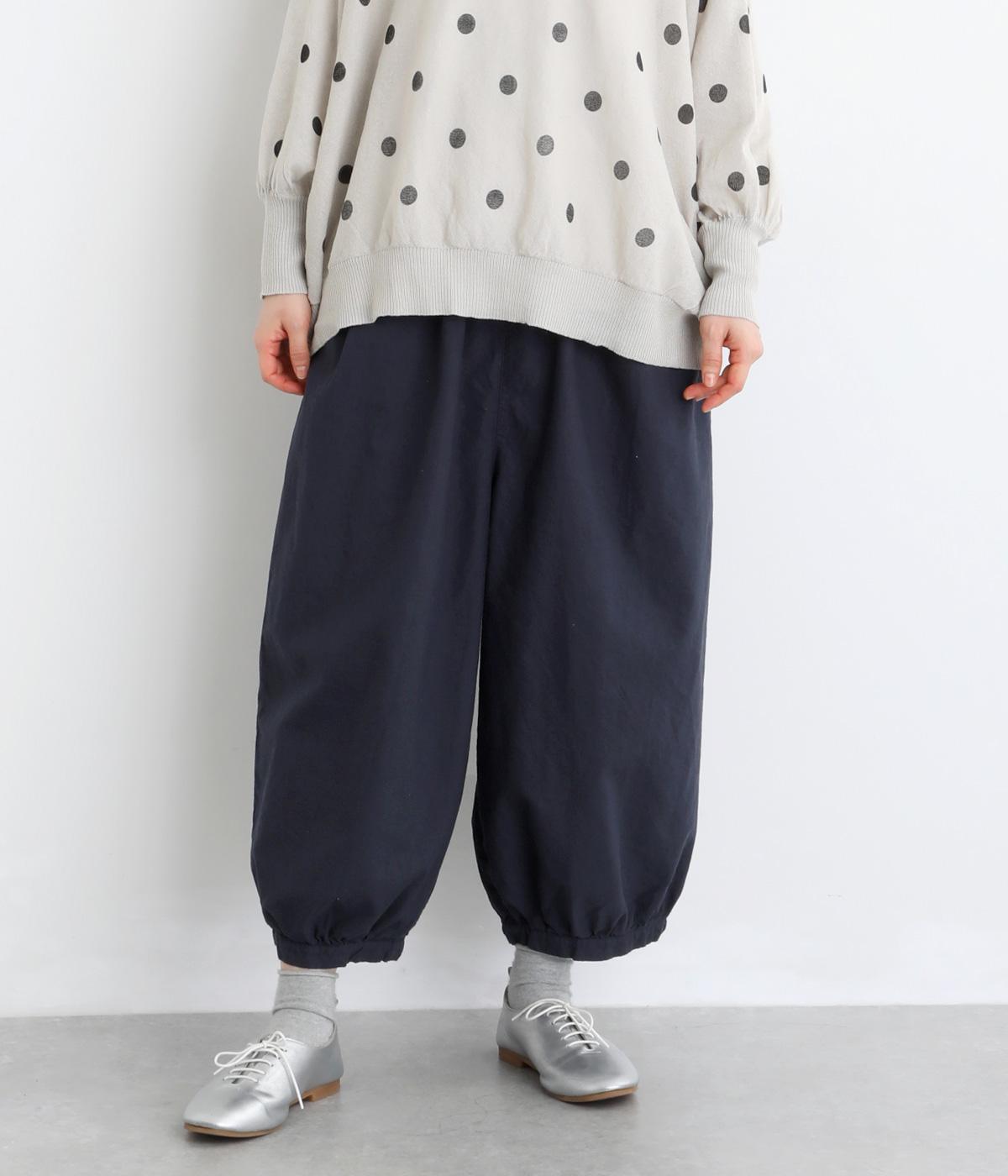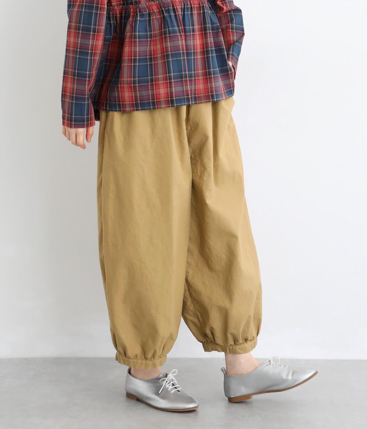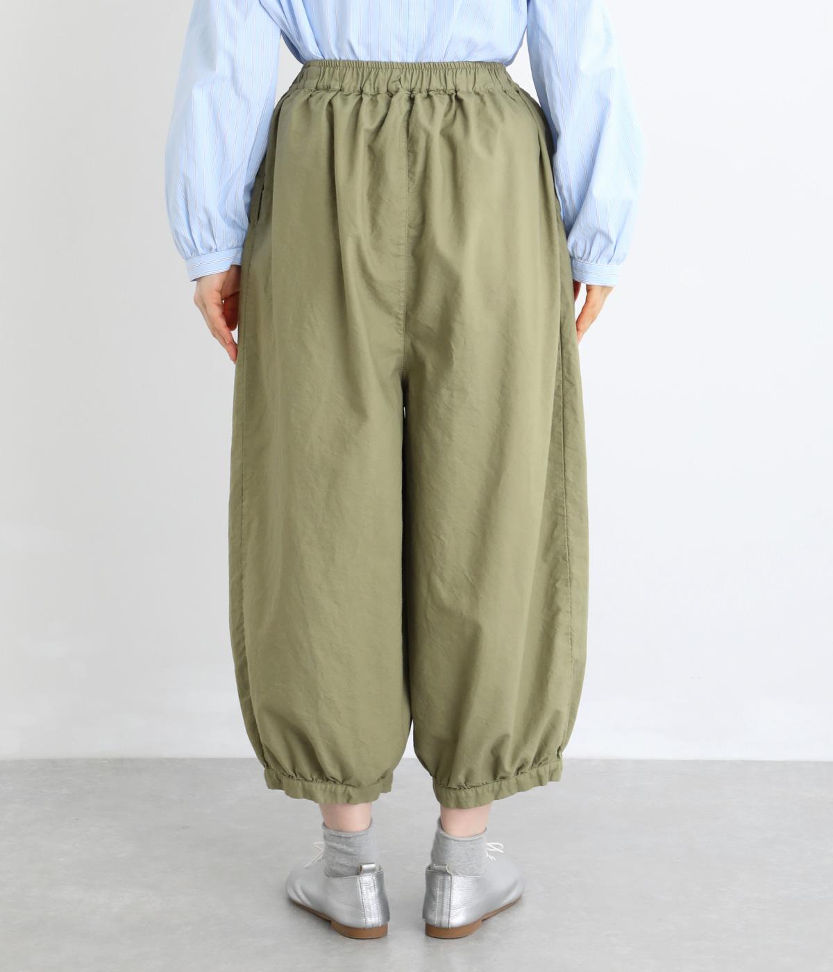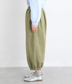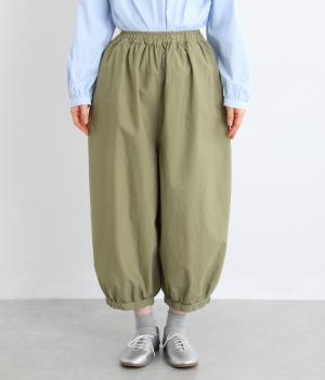 ゆったりとしたワイドシルエットで、体のラインを拾いにくく、リラックス感のあるはき心地を叶えます。裾にはギャザーを寄せてきゅっとしぼり、丸みのあるフォルムをつくります。シンプルなデザインながら立体感があり、幅広いコーディネートに合わせやすい一本です。