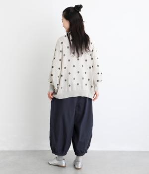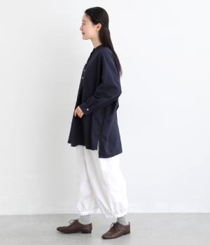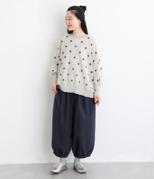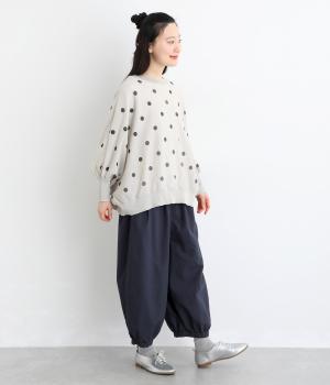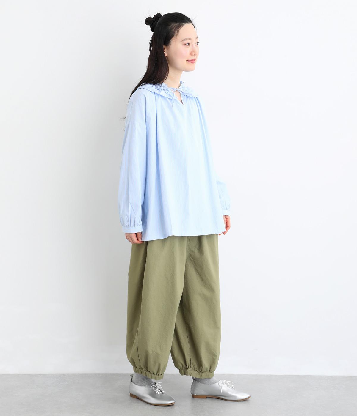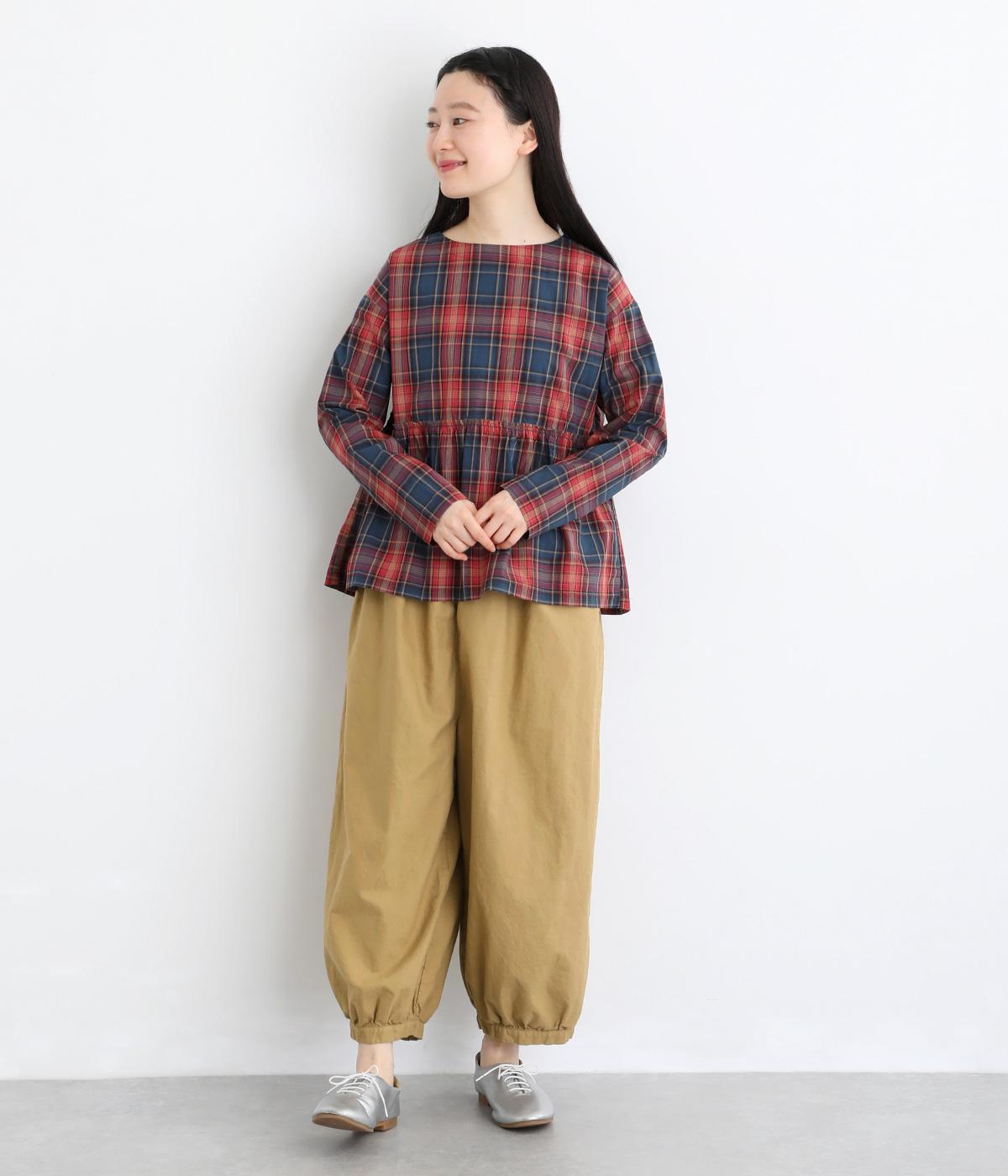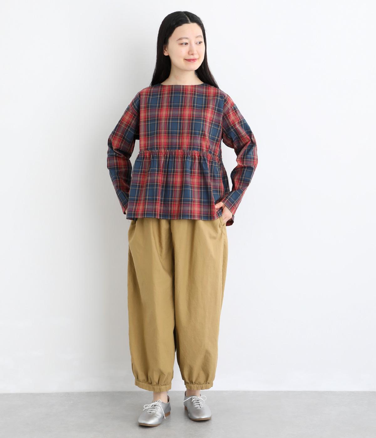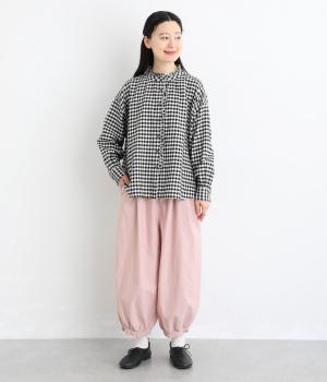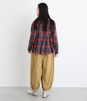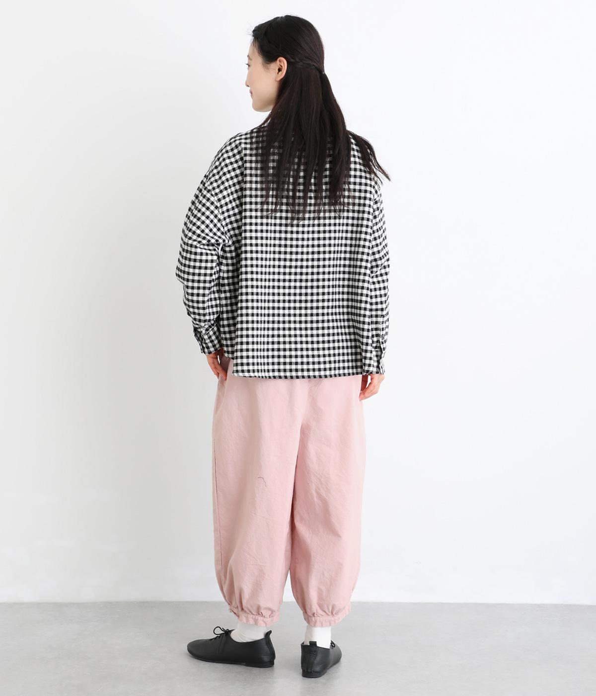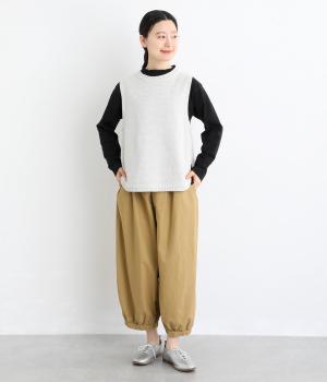 ゆったりとしたワイドシルエットで、体のラインを拾いにくく、リラックス感のあるはき心地を叶えます。裾にはギャザーを寄せてきゅっとしぼり、丸みのあるフォルムをつくります。シンプルなデザインながら立体感があり、幅広いコーディネートに合わせやすい一本です。