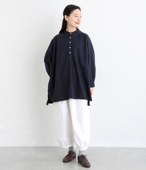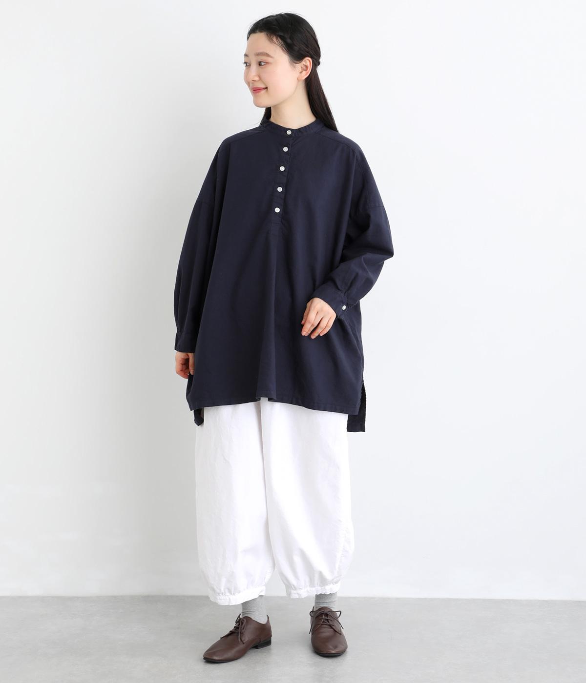 国内の職人による製品染で仕上げた、奥行きのある風合いが魅力です。やわらかくなじむような質感と、一点ごとに異なる表情がたのしめます。ベースとなるほどよい厚みのオックス生地は、くたっとしたしなやかさもあり、肌あたりもやさしいのが◎