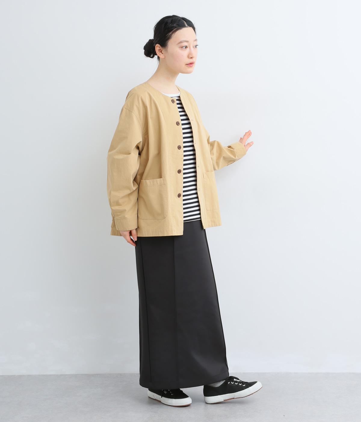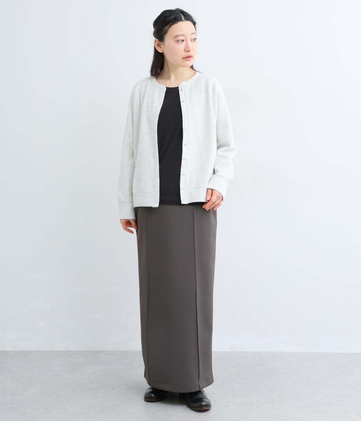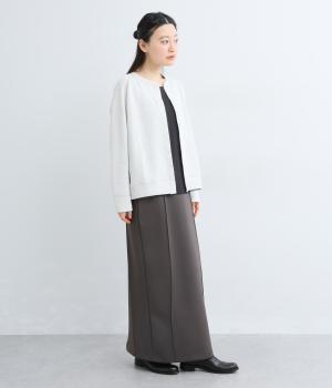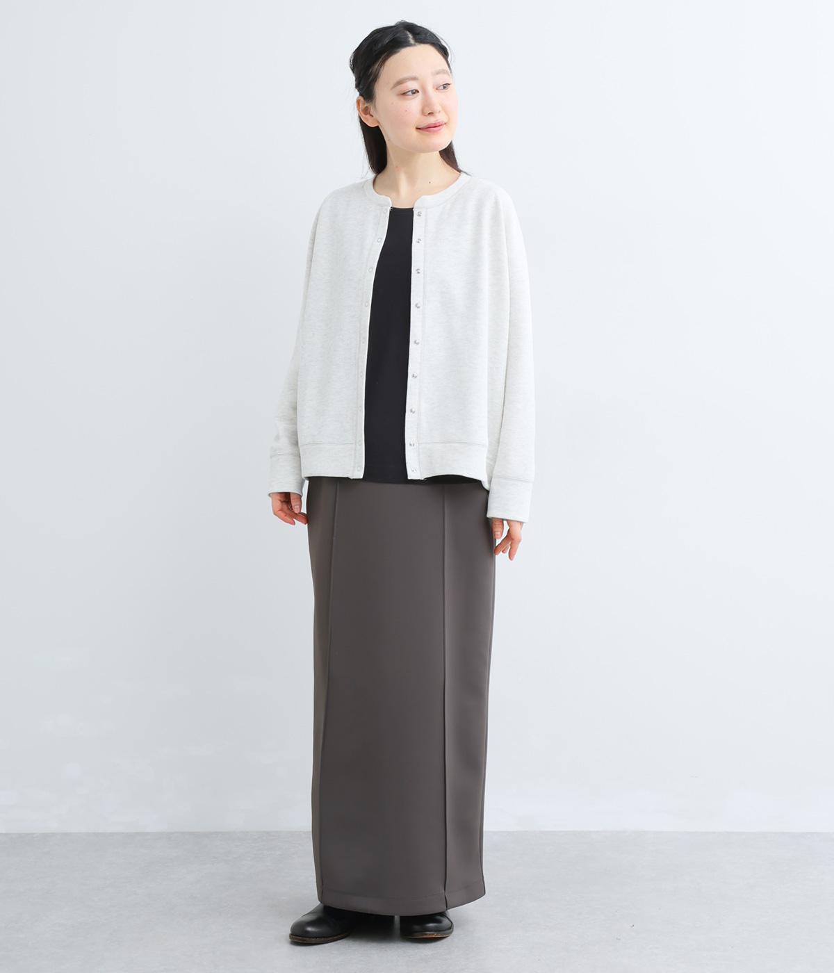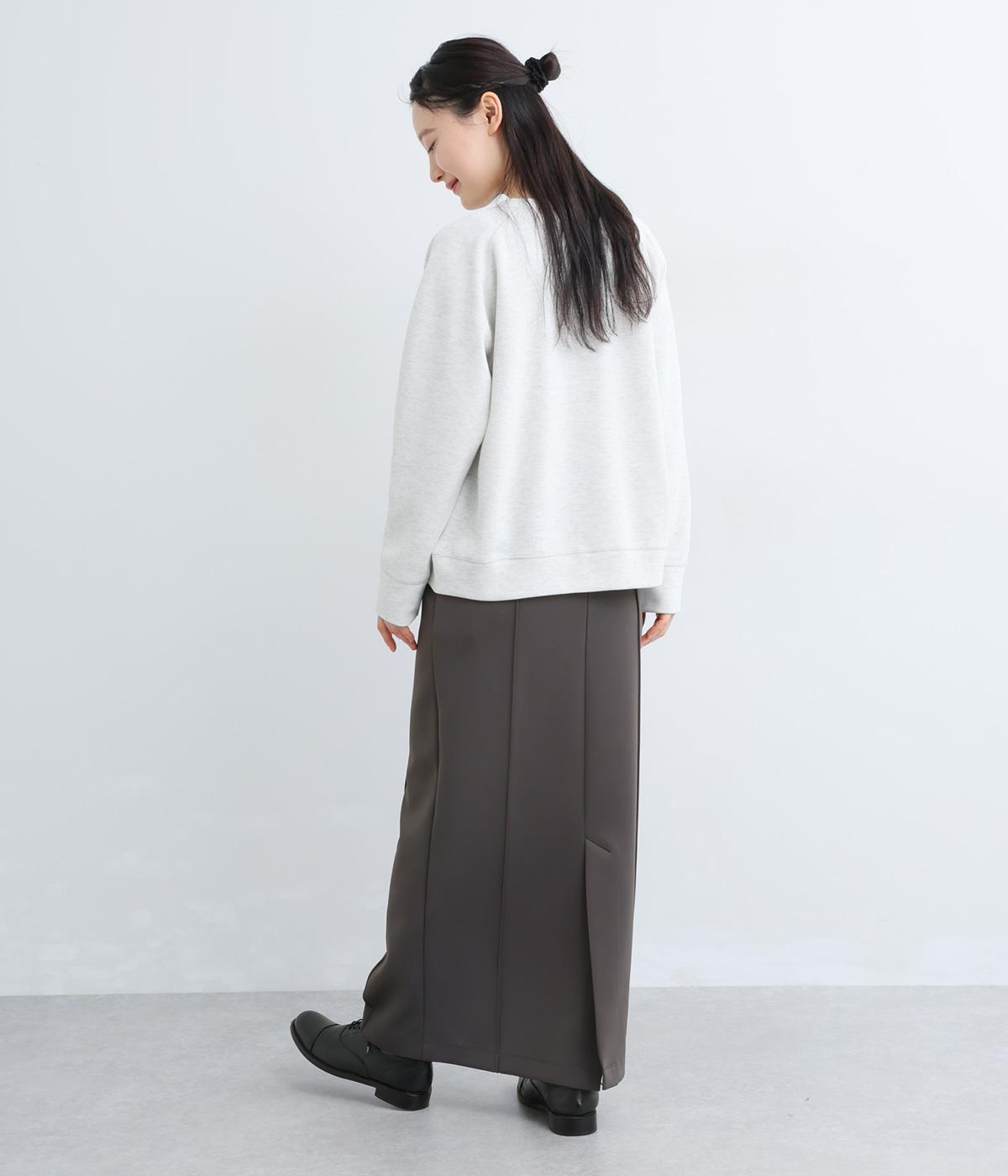 立体感のあるシルエットで体のラインを拾いにくく、ピンタックの縦のラインがスタイルよく見せてくれます。ストレッチ性のある生地感と、うしろのスリットで動きやすさも確保しました。ウエストは総ゴム仕様でストレスフリーな穿き心地です。
