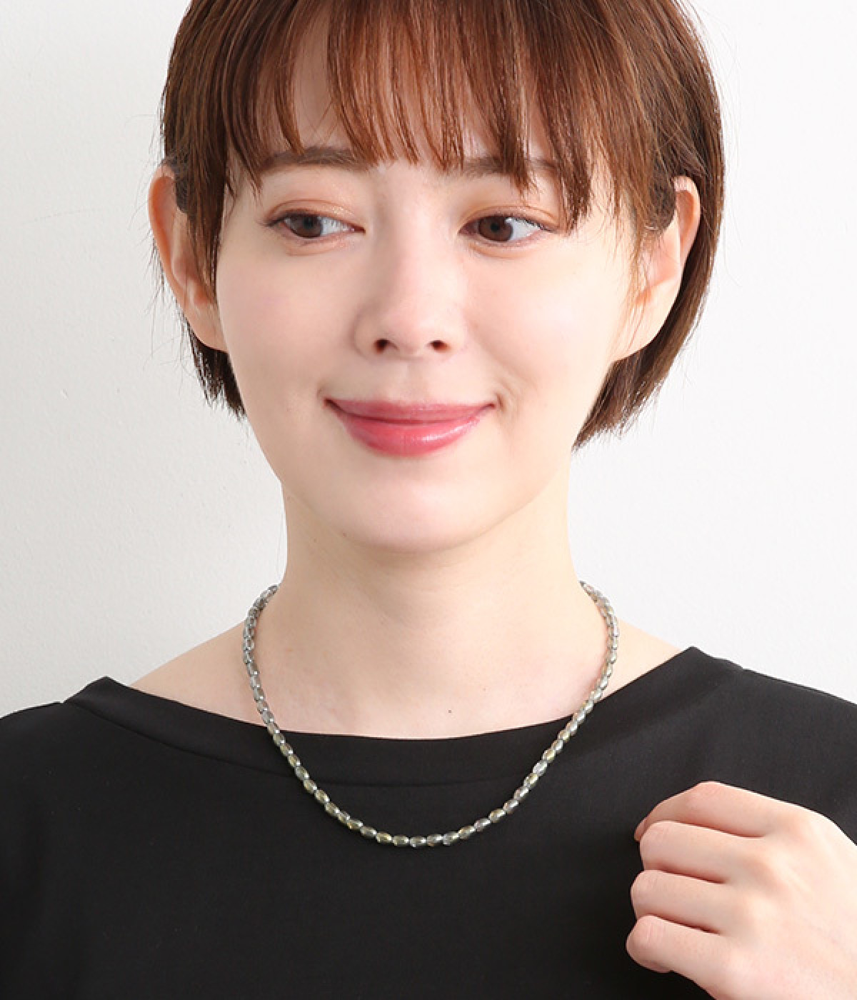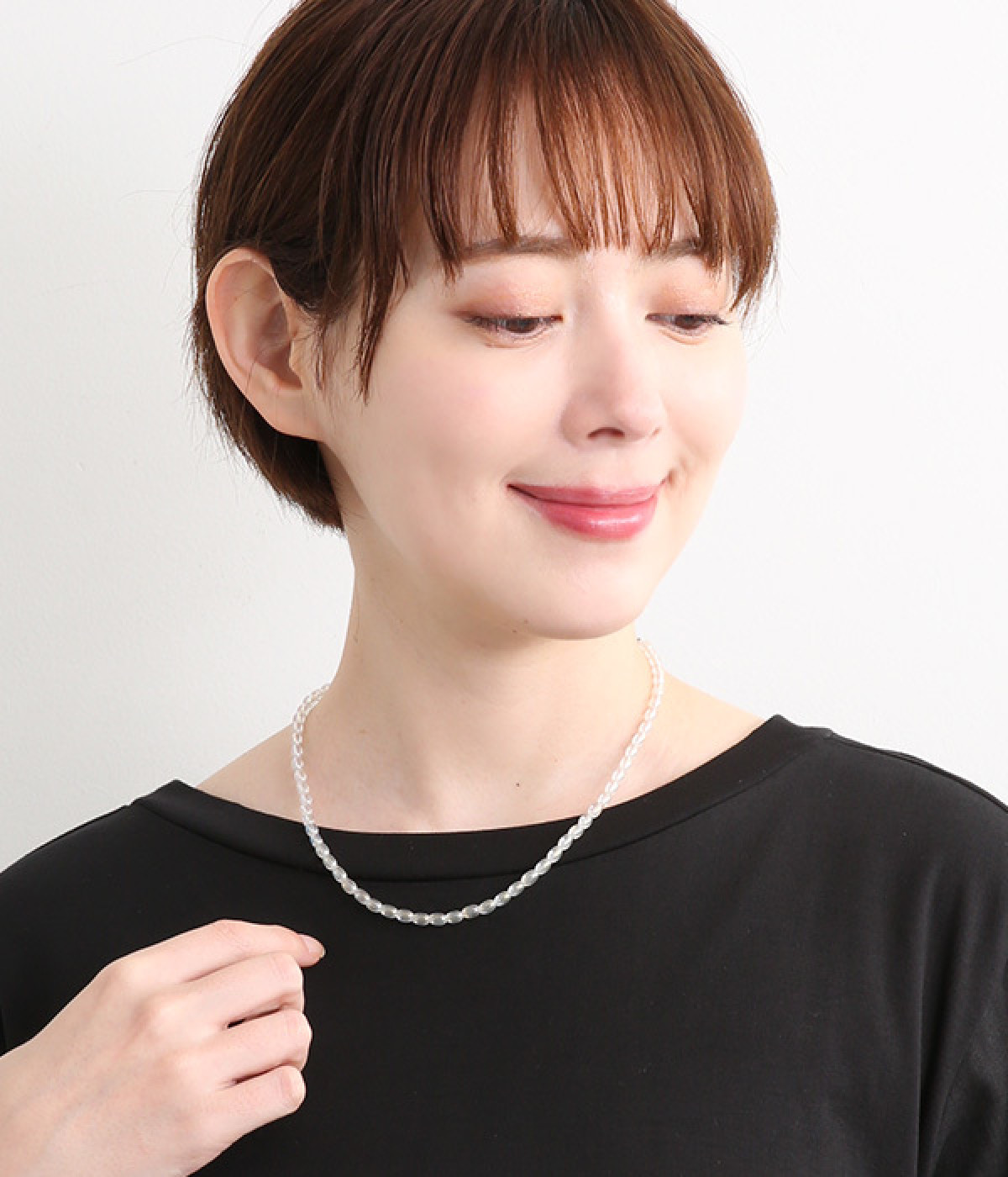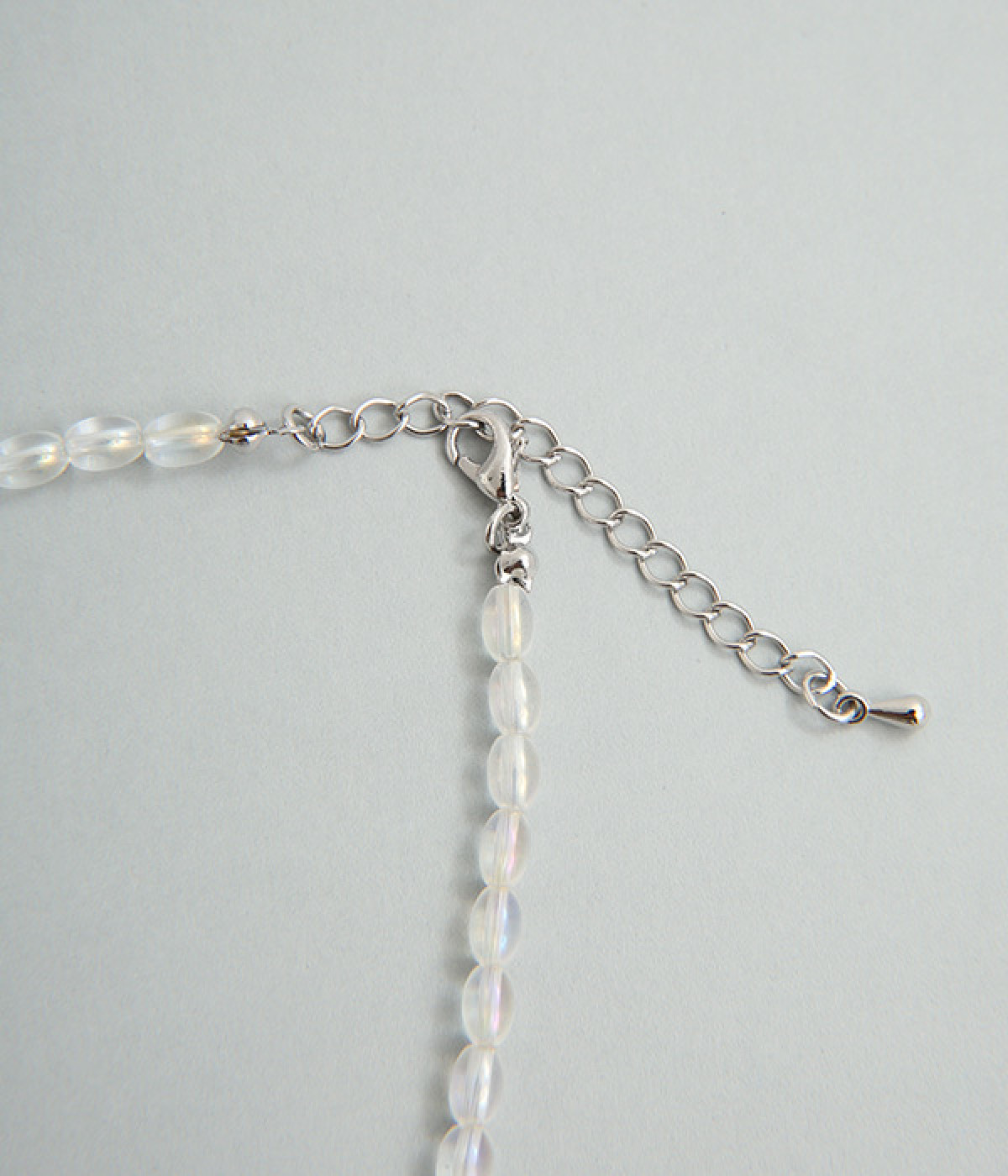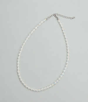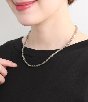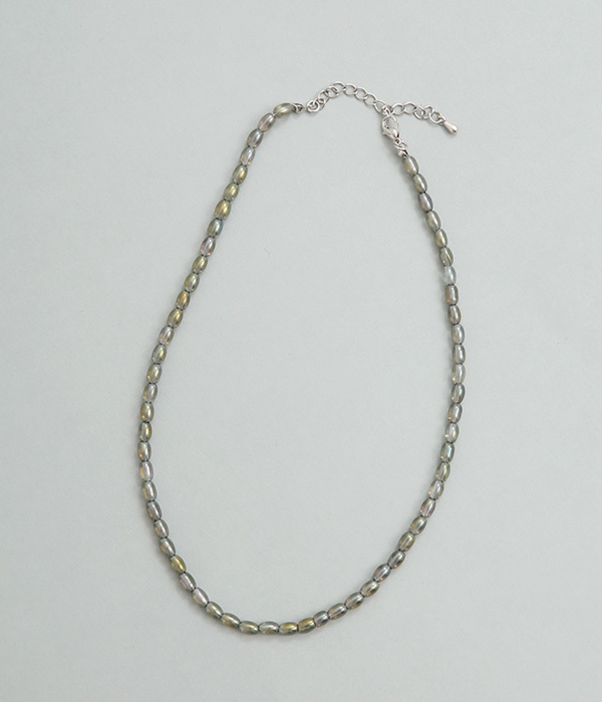 シンプルながらオーロラカラーの輝きがアクセントになるショートネックレス。どの角度から見てもきらきらと上品に光るので、小ぶりでも存在感があります。ロングネックレスとの重ねづけにもぴったり。夏場はシンプルなTシャツやワンピースに、冬場はタートルネックに合わせたりとアレンジもさまざま。お肌に優しいニッケルフリーメッキ素材もうれしいポイントです。