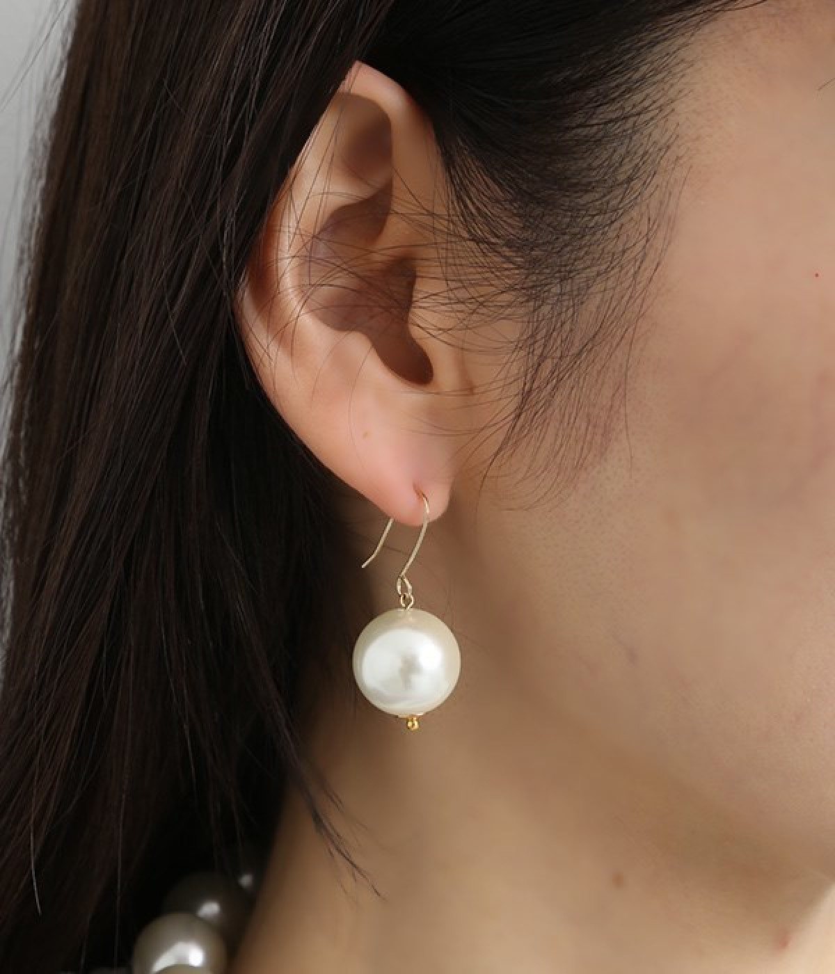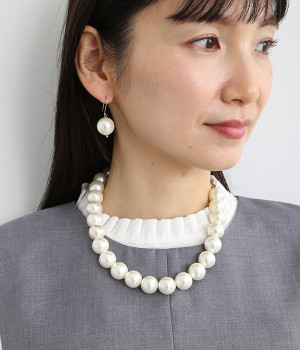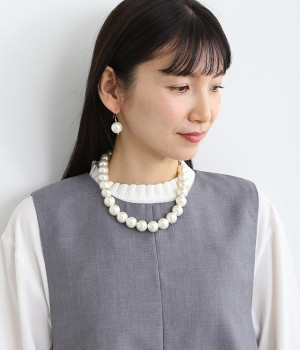 とろみ感のあるやさしい輝きを放つ大粒パールが装いをクラスアップするネックレスとピアスのセット。ネックレスはデコルテを引き立てる短めの設定ですが、トップスのネックの開き具合により長さをアレンジ可能です。それぞれが単体での使いまわしもできるため、デイリーに気兼ねなく取り入れやすいのも◎。見た目ほど重みを感じにくいので、長時間のお出かけで身につけていてもストレスになりません。