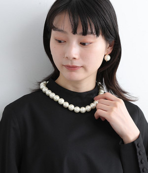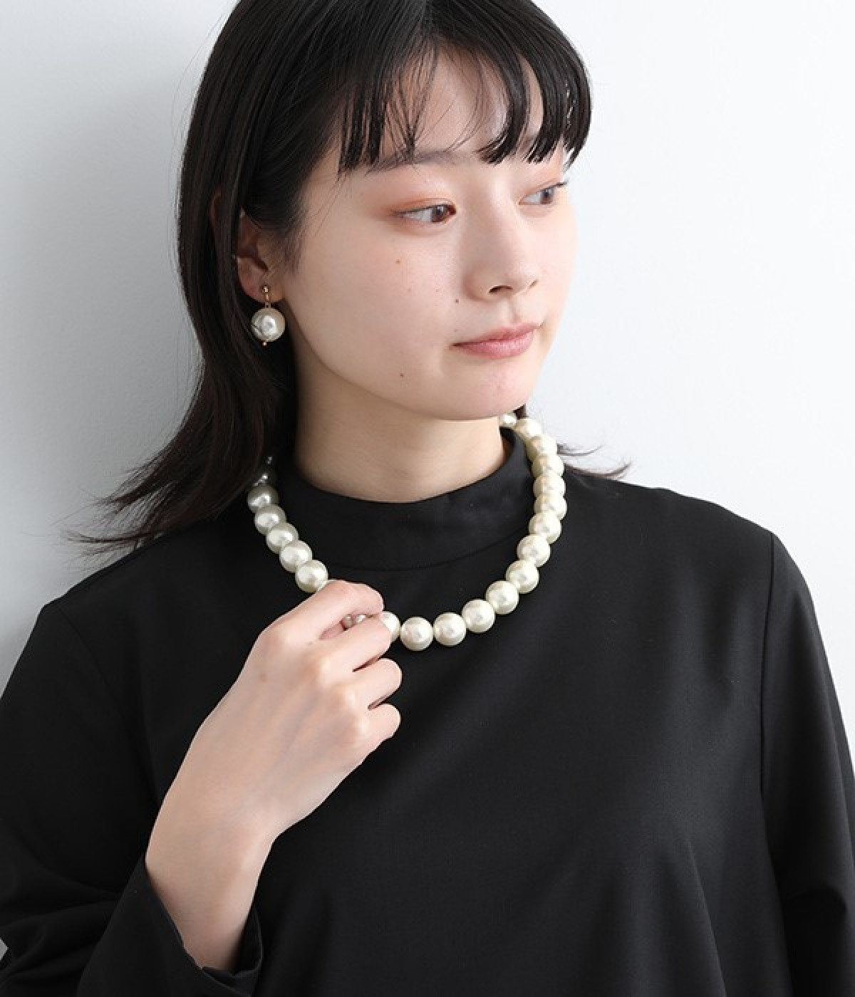 とろみ感のあるやさしい輝きを放つ大粒パールが装いをクラスアップするネックレスとイヤリングのセット。ネックレスはデコルテを引き立てる短めの設定ですが、トップスのネックの開き具合により長さをアレンジ可能です。それぞれが単体での使いまわしもできるため、デイリーに気兼ねなく取り入れやすいのも◎。見た目ほど重みを感じにくいので、長時間のお出かけで身につけていてもストレスになりません。