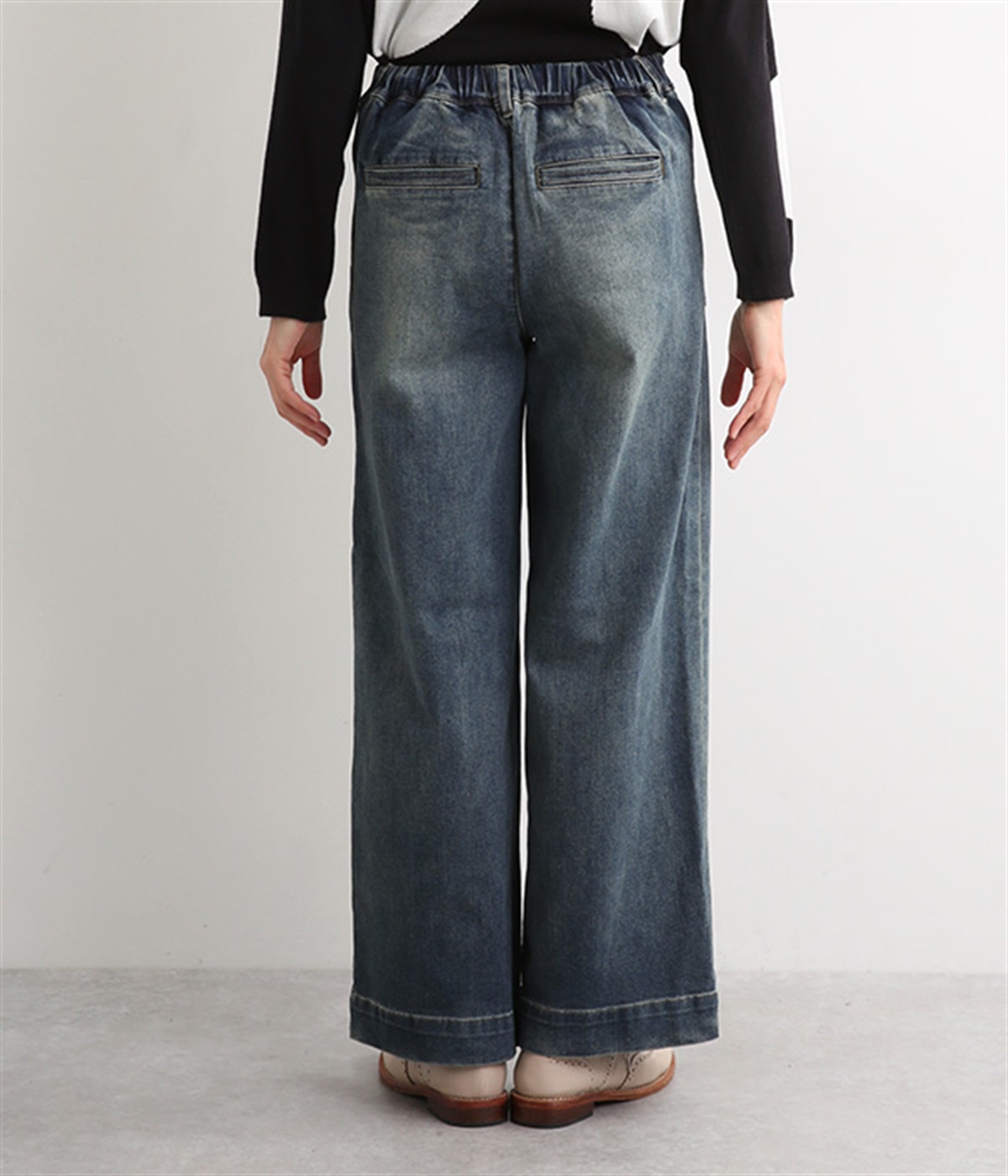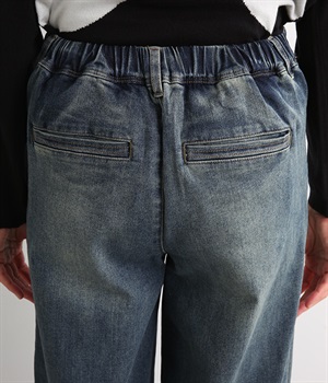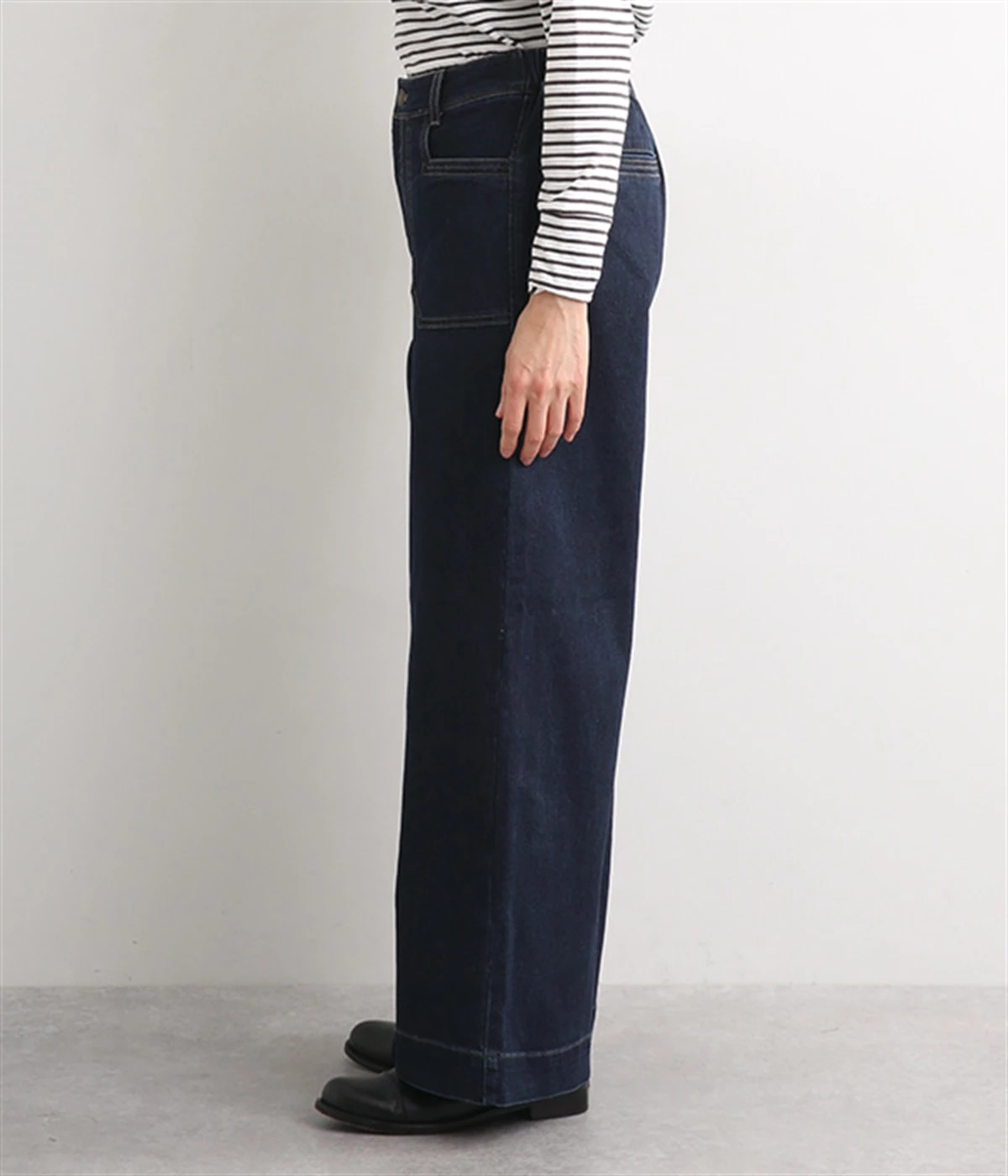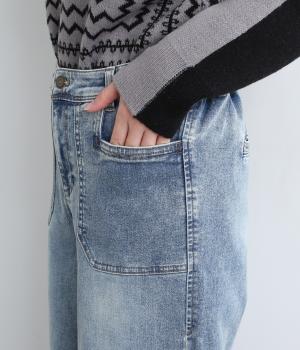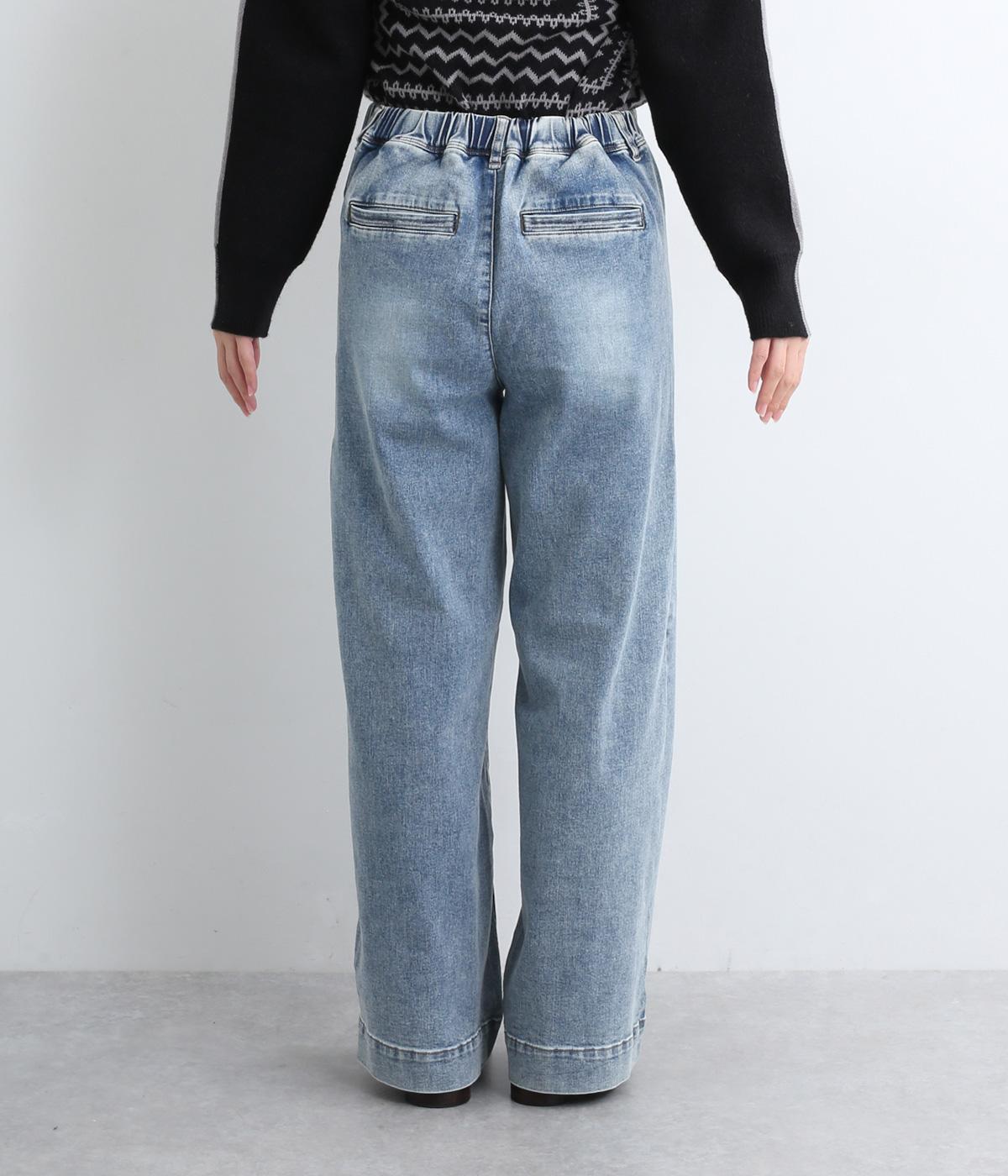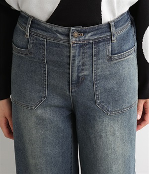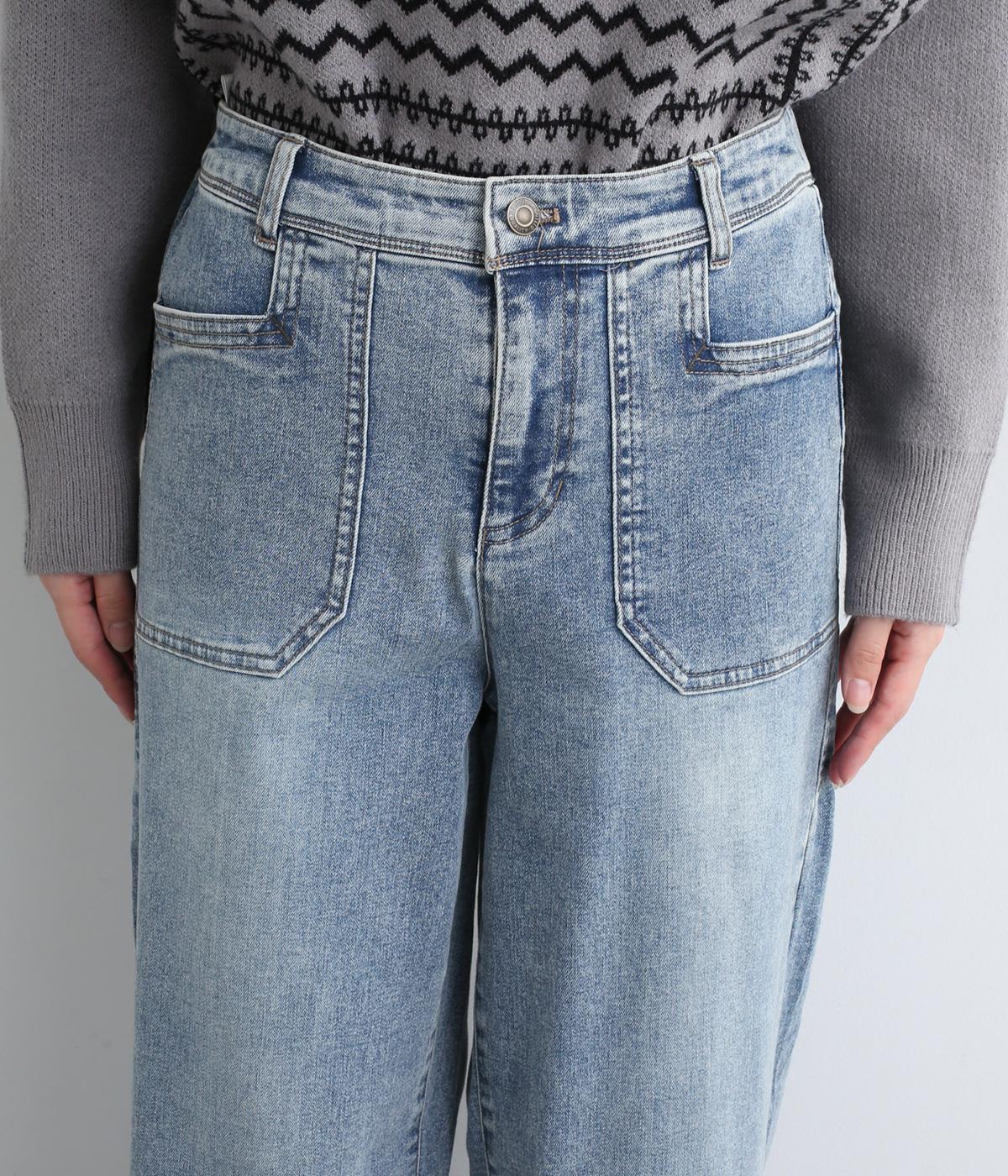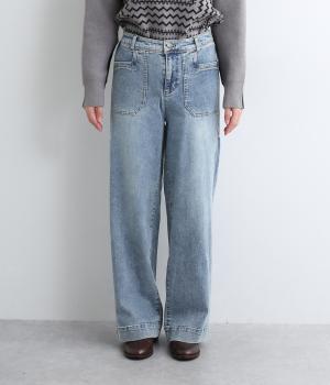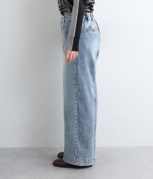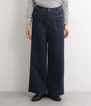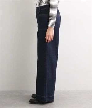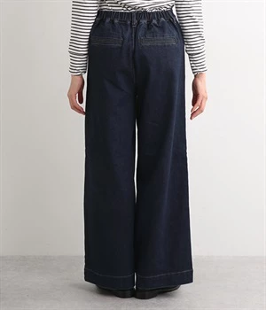 すとんと落ちるワイドなストレートシルエットがこなれ感を漂わせるデニムパンツ。ステッチが映えるフロントの大きなポケットがアクセントです。合わせるトップスを選びにくいほどよいボリューム感が◎。ウエストは後ろのみゴムを入れました。