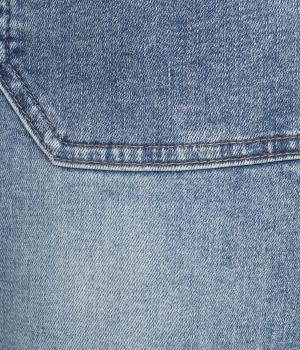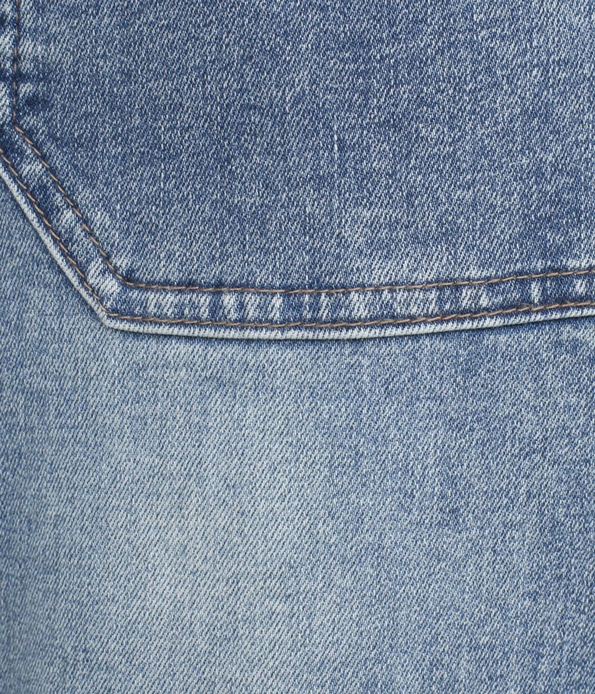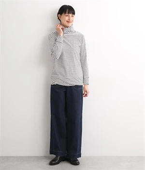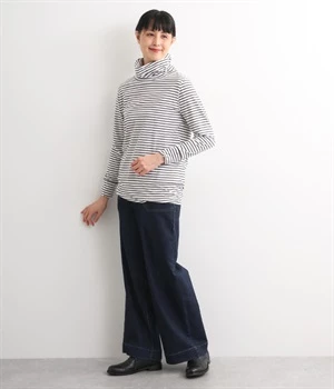 硬さやごわつきの少ないやわらかな風合いのデニム生地。伸縮性を備え、動きやすさをアップさせました。適度な厚みで季節を問わずにデイリーに活躍します。
