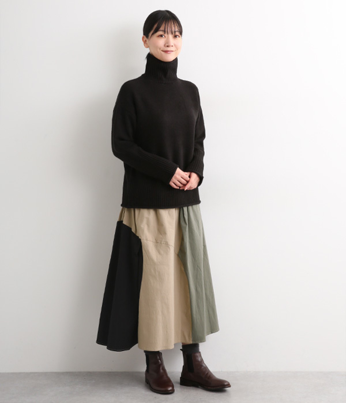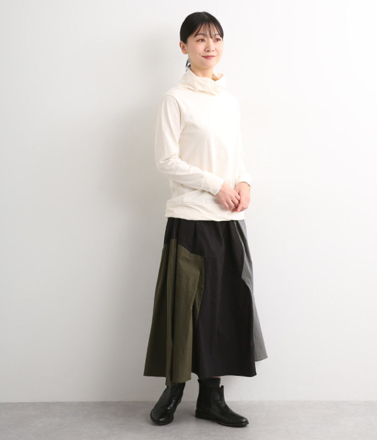 ボディラインを拾いにくい、ふんわり広がるAラインシルエット