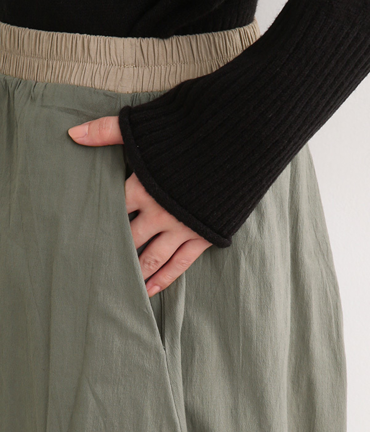 ウエストはぐるりとゴム入りでストレスを軽減