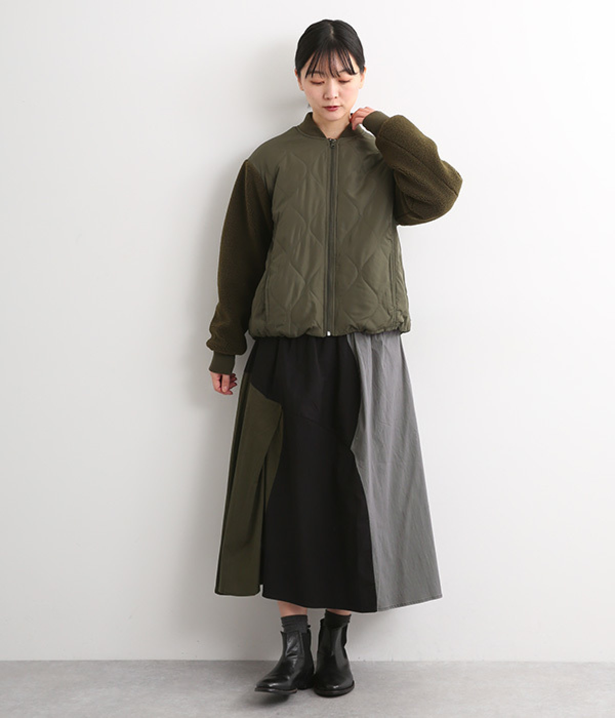 落ち着いたグレイッシュなカラーリングが大人の女性らしさを演出