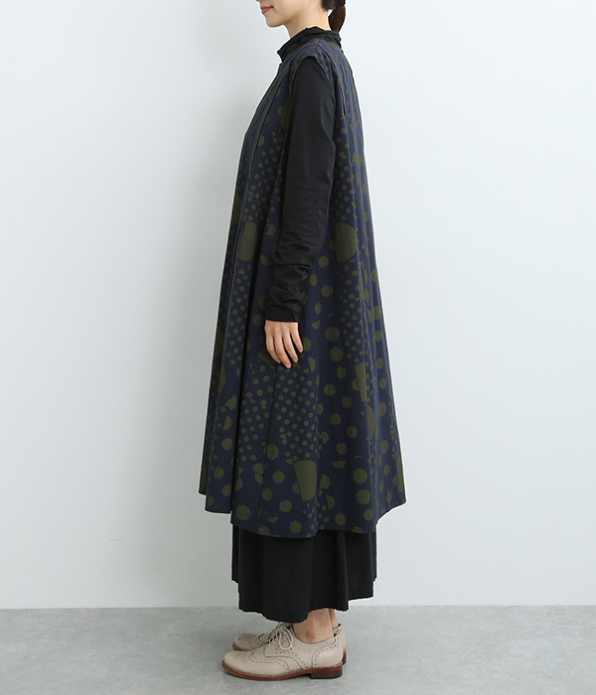 羽織りものがストレスなく合わせられるノースリーブ型