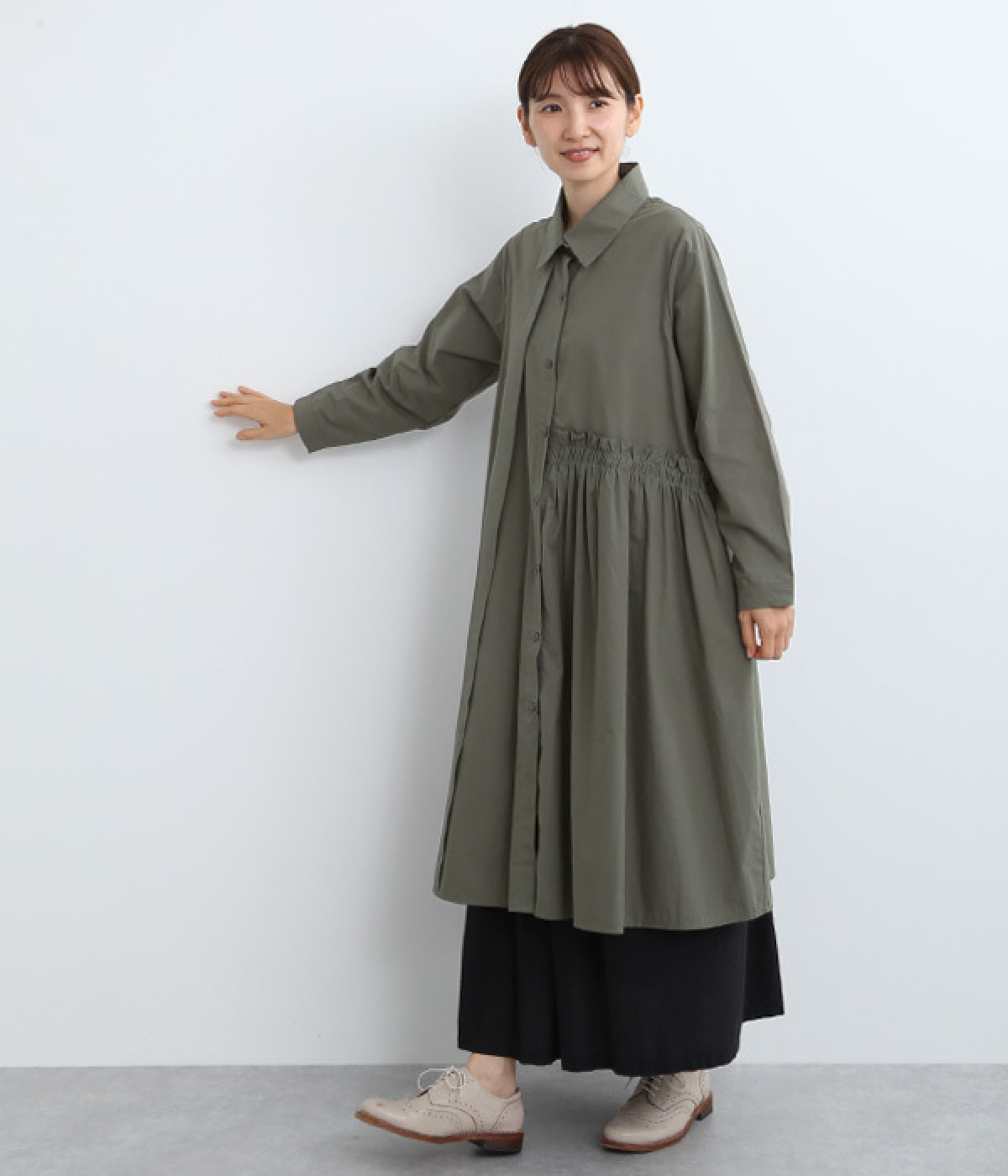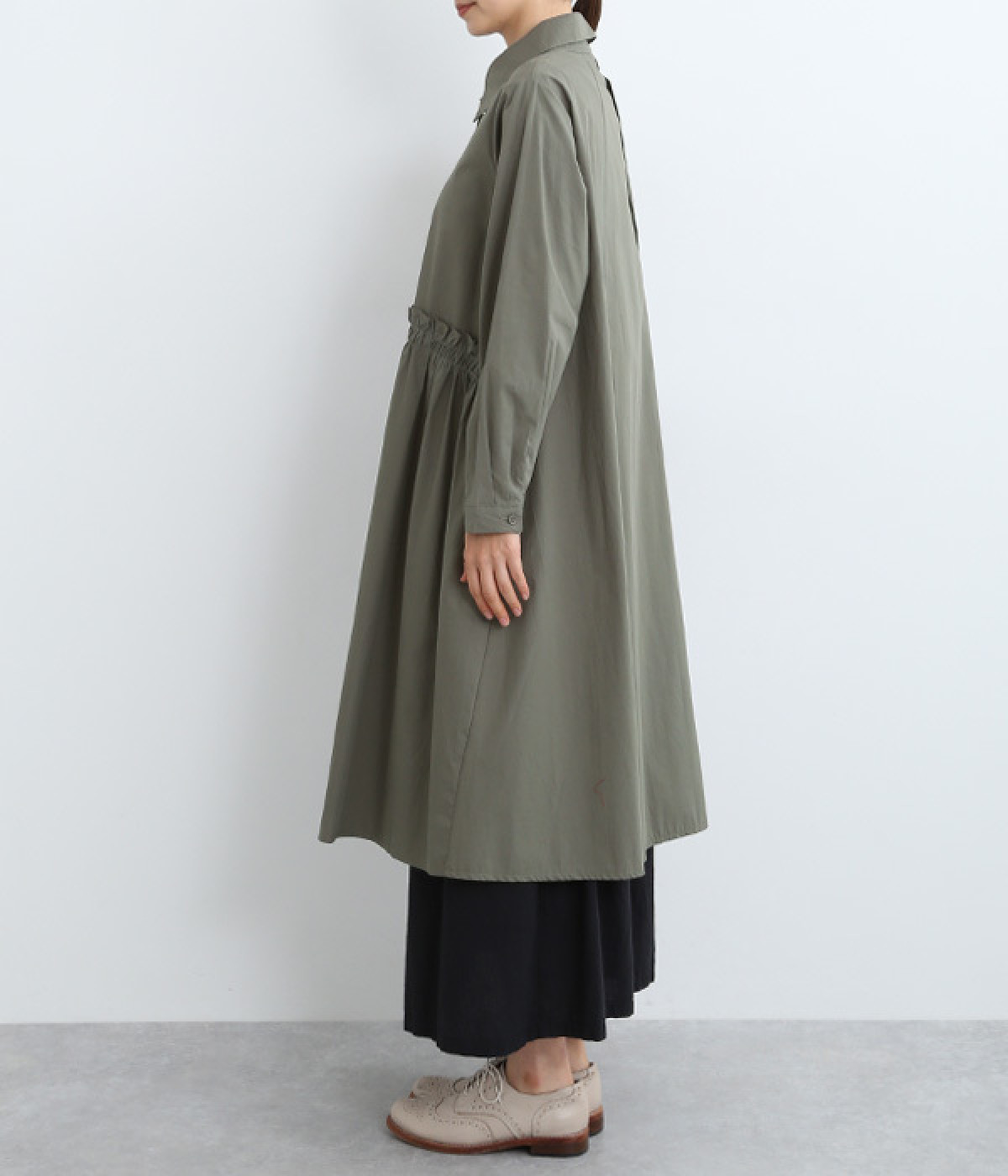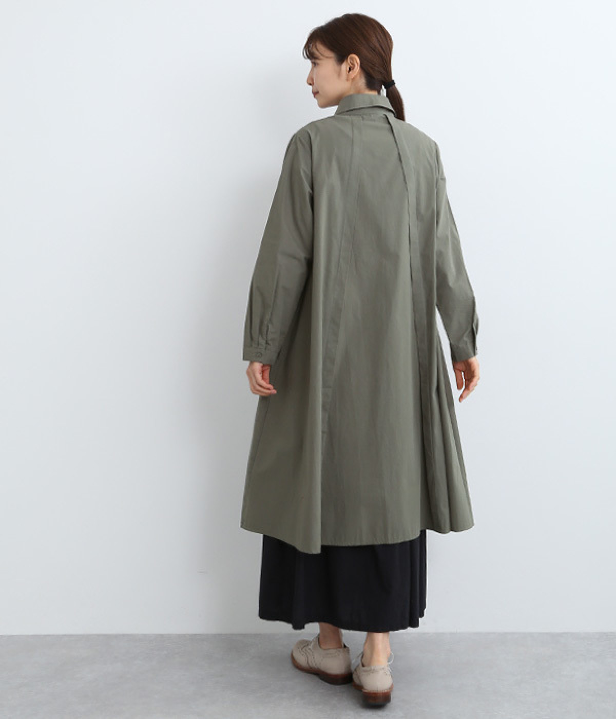 レイヤードのしやすさを考慮し、裾まわりはゆったりフレア