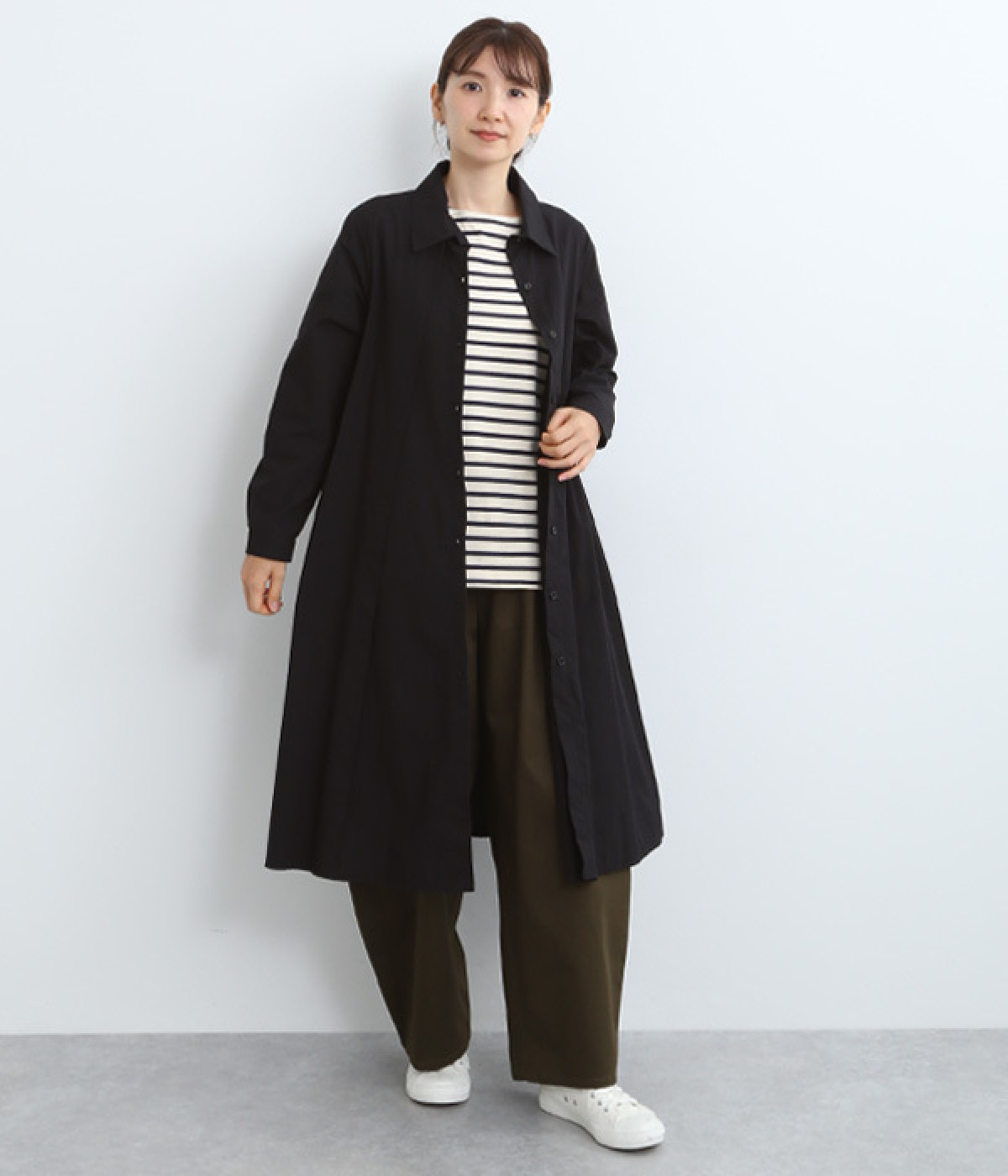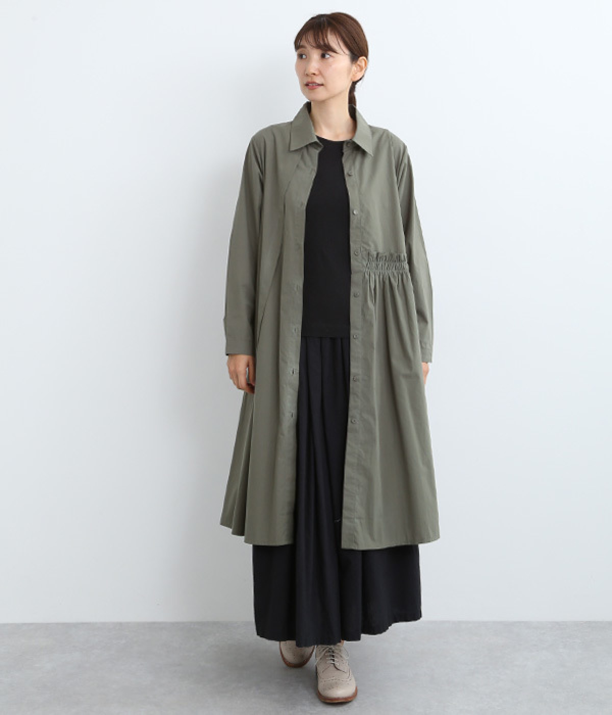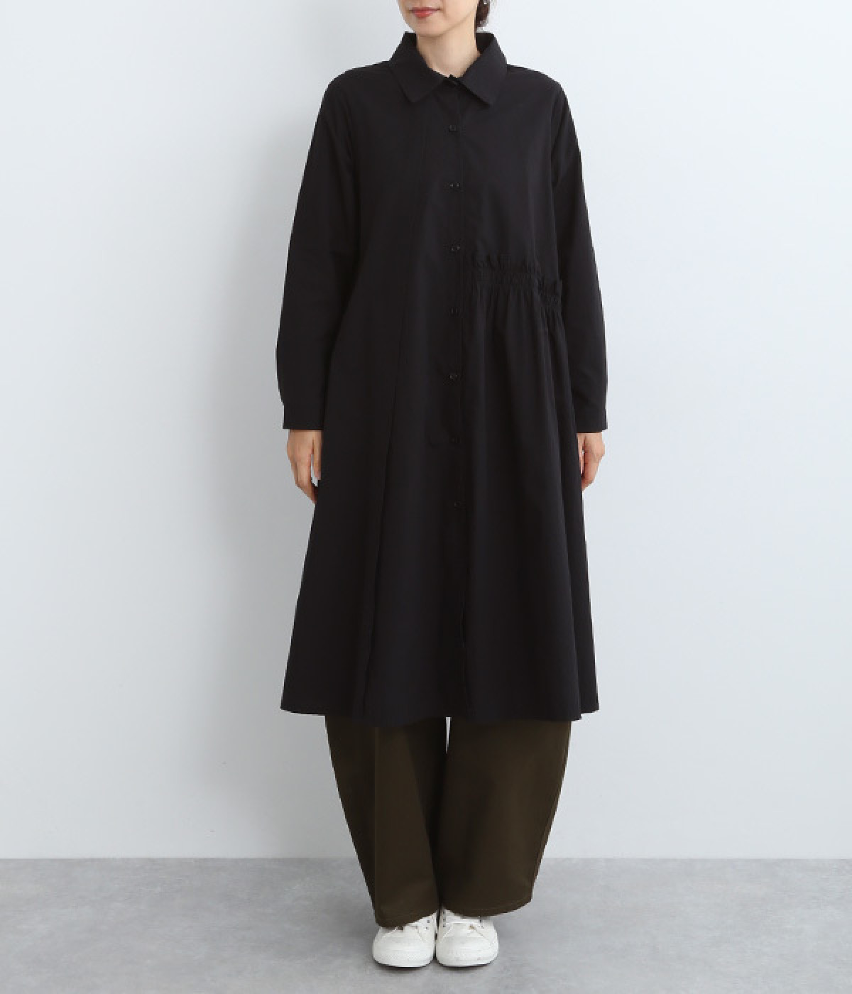レイヤードのしやすさを考慮し、裾まわりはゆったりフレア