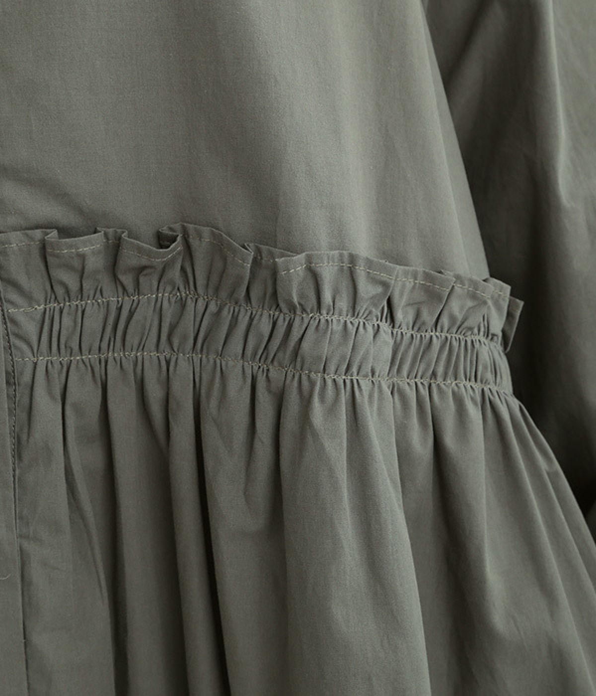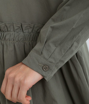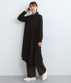 フロントの左半分のウエストギャザー使いでかわいらしさを
