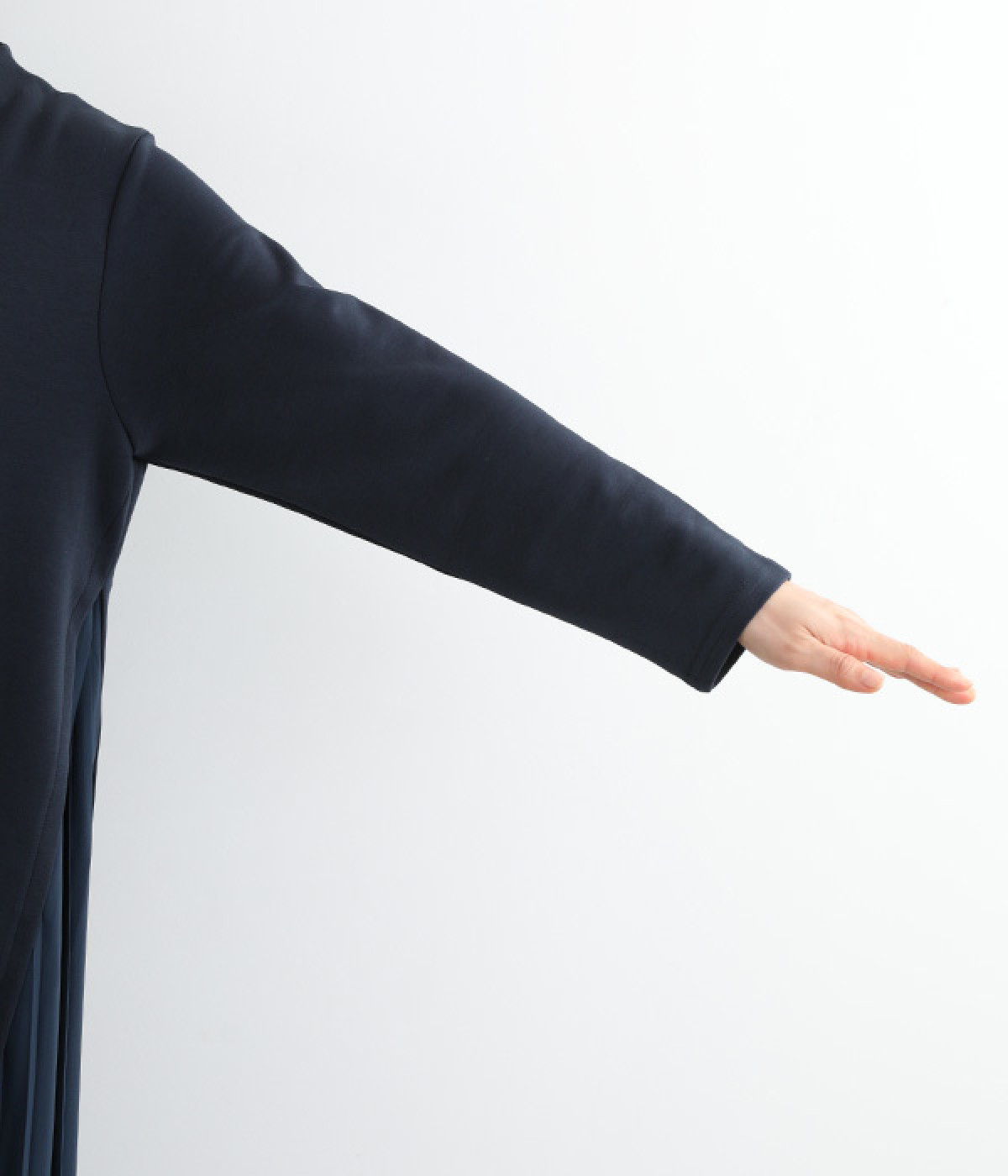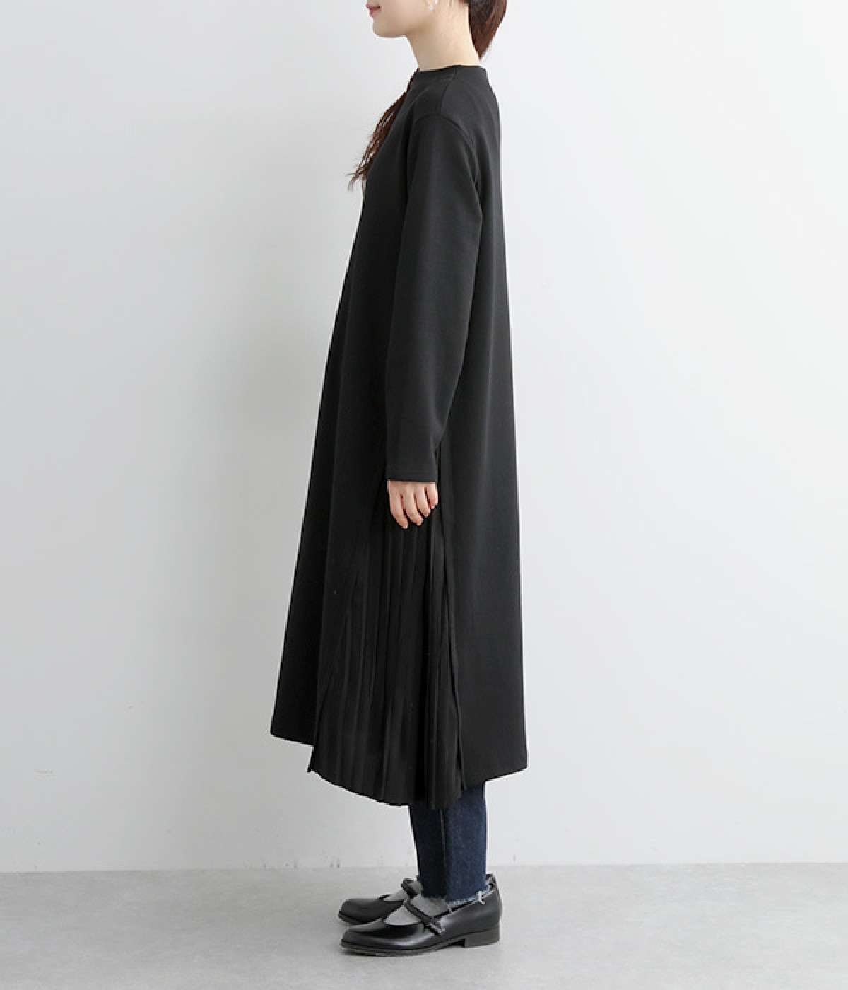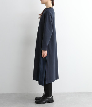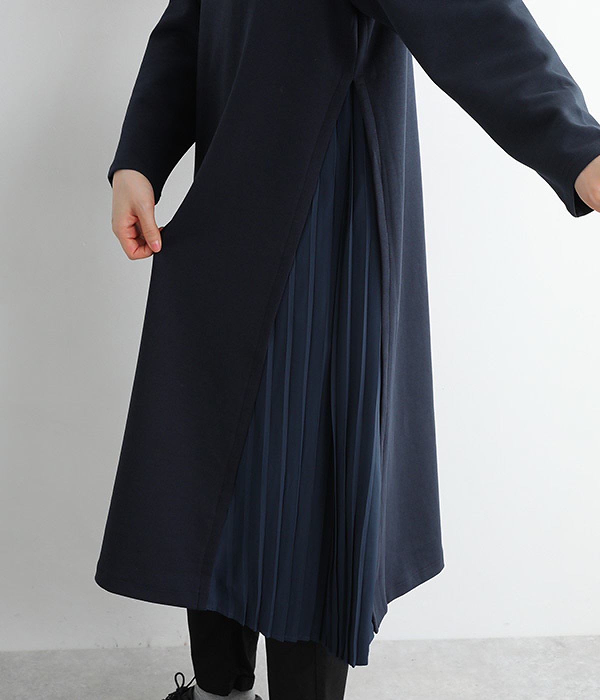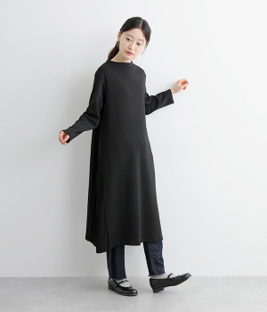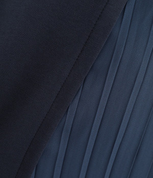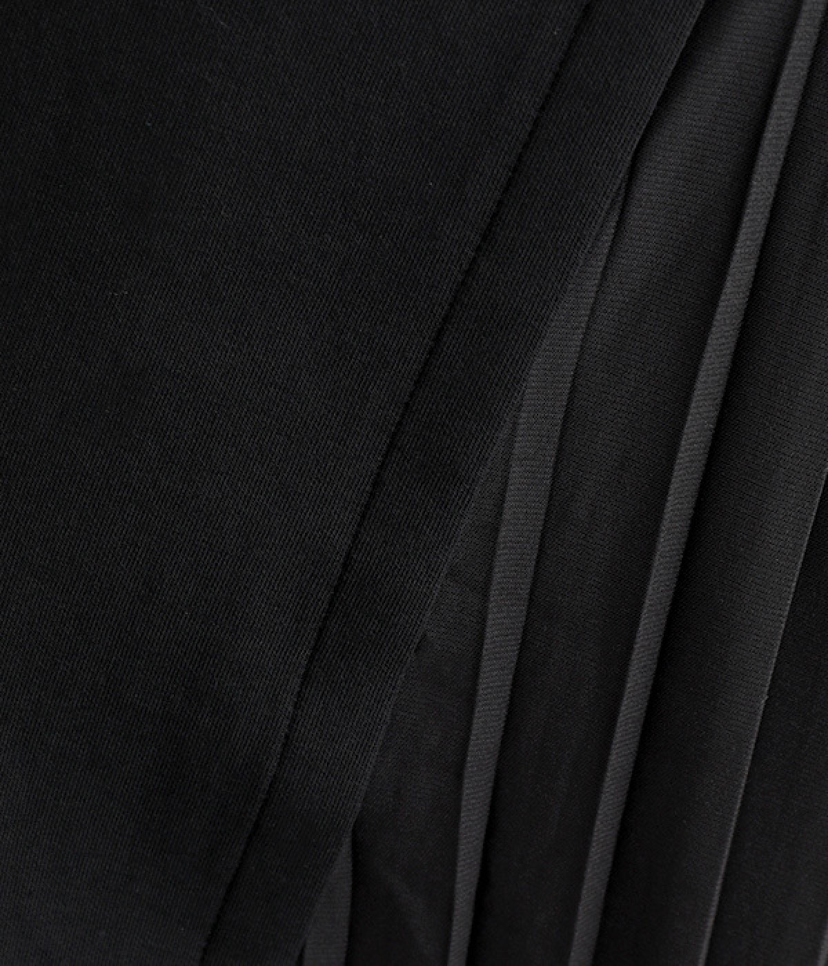 両サイドから大きく切り替えた異素材プリーツが特徴