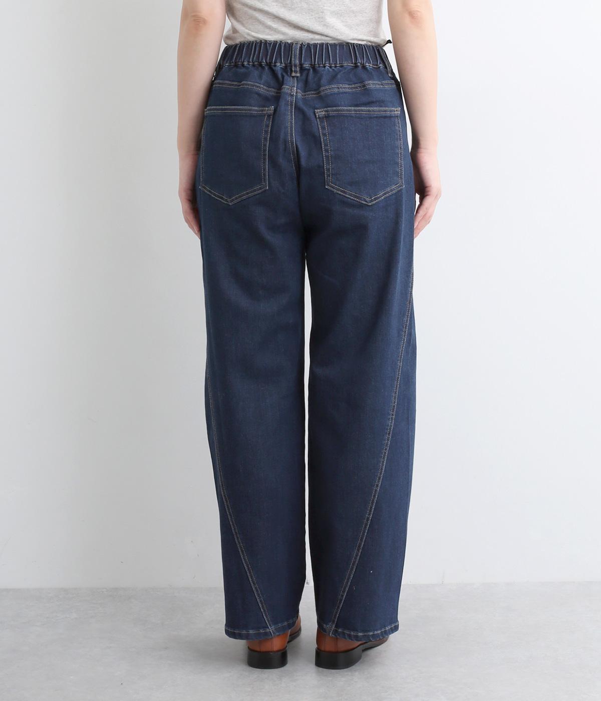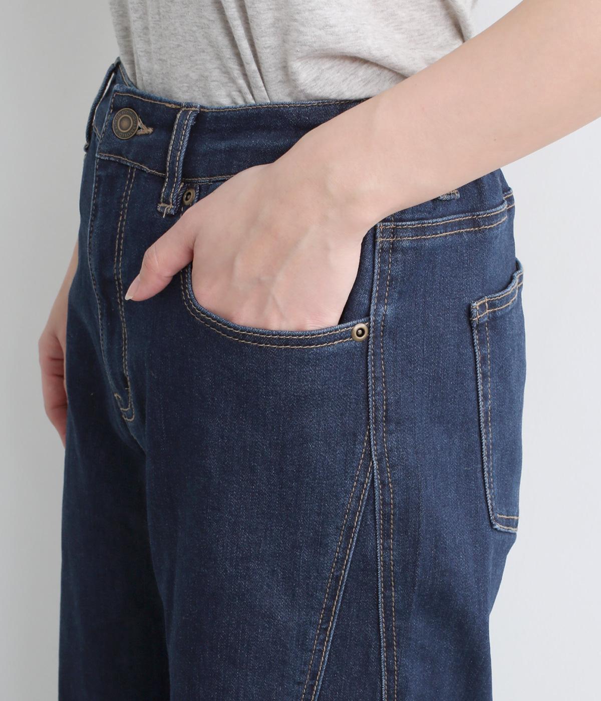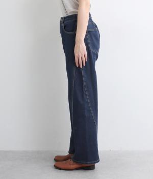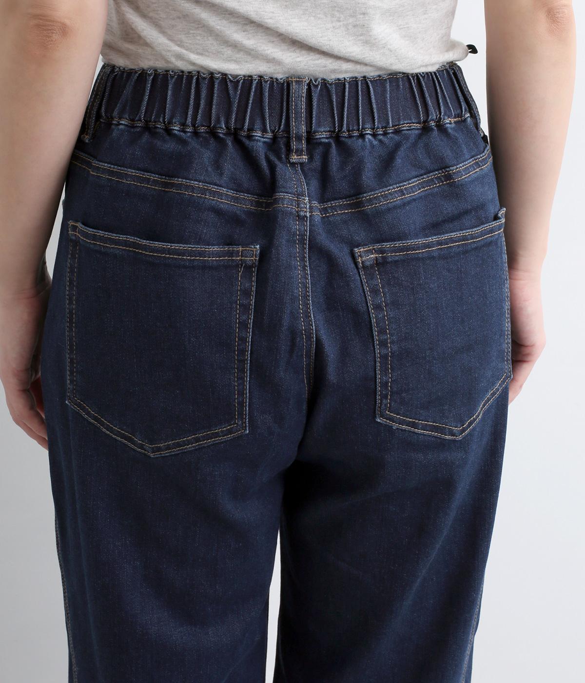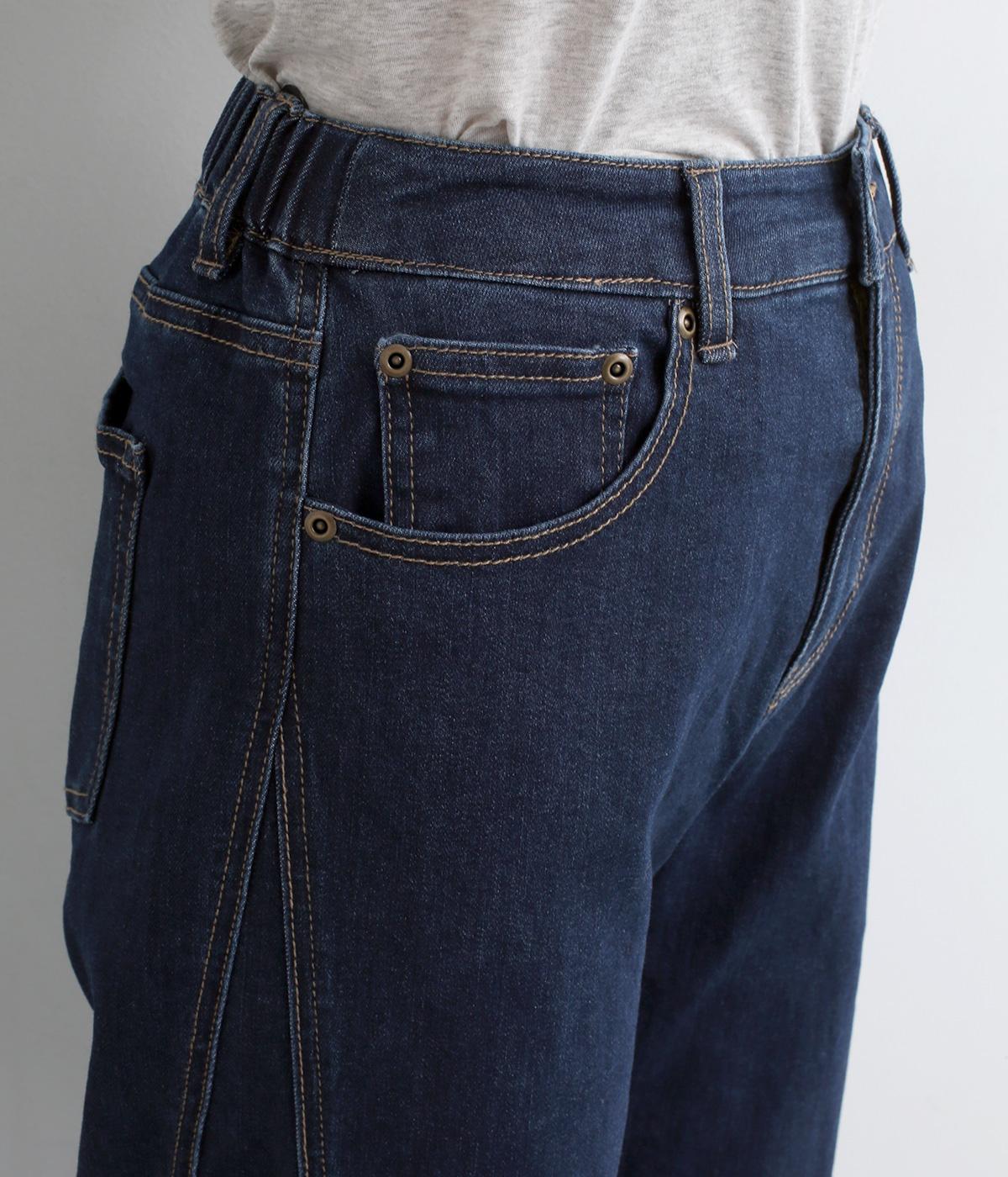 硬さやごわつきの少ないやわらかな風合いのデニム生地。伸縮性を備え、動きやすさをアップさせました。適度な厚みで季節を問わずにデイリーに活躍します。