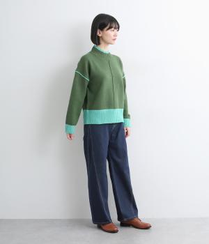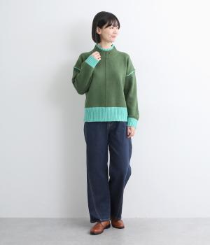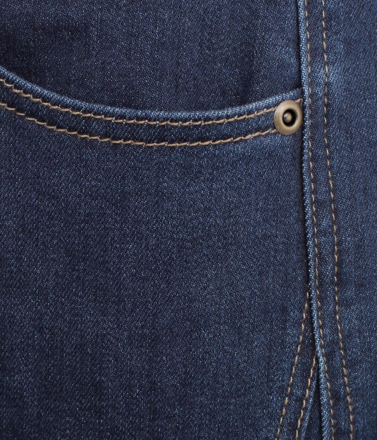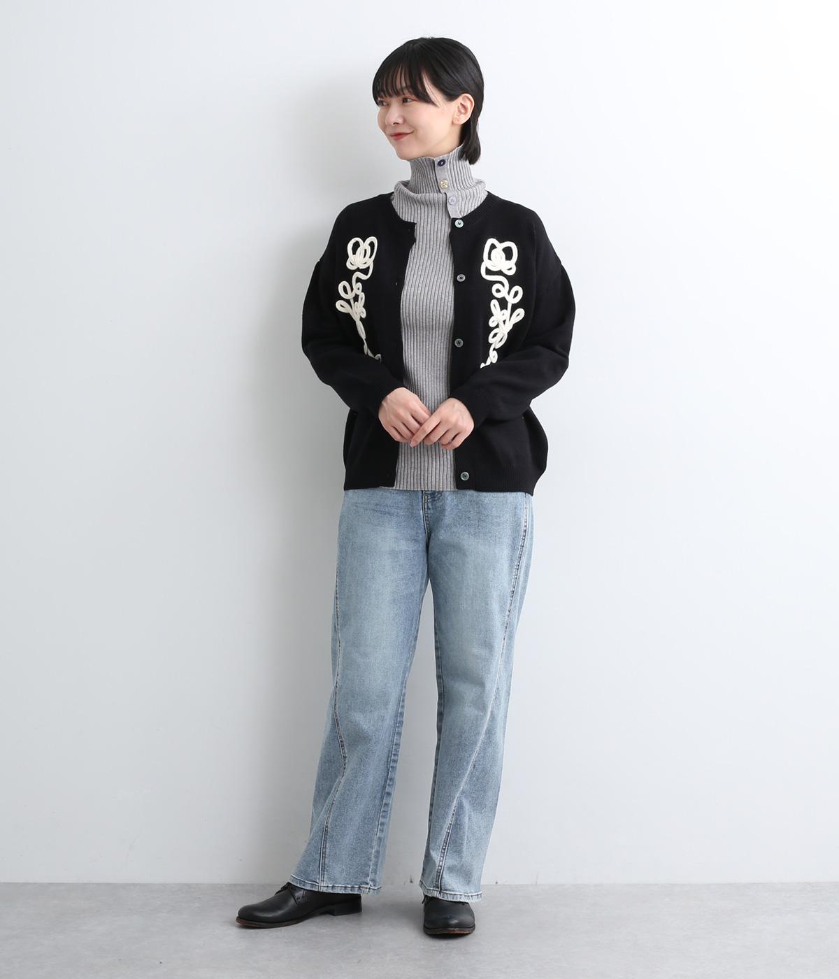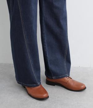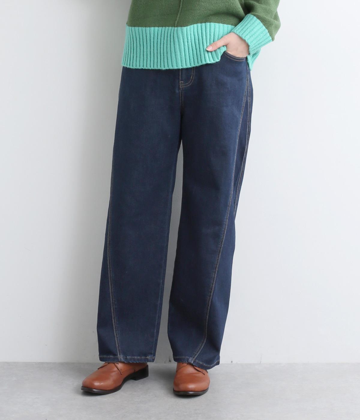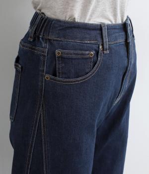 硬さやごわつきの少ないやわらかな風合いのデニム生地。伸縮性を備え、動きやすさをアップさせました。適度な厚みで季節を問わずにデイリーに活躍します。