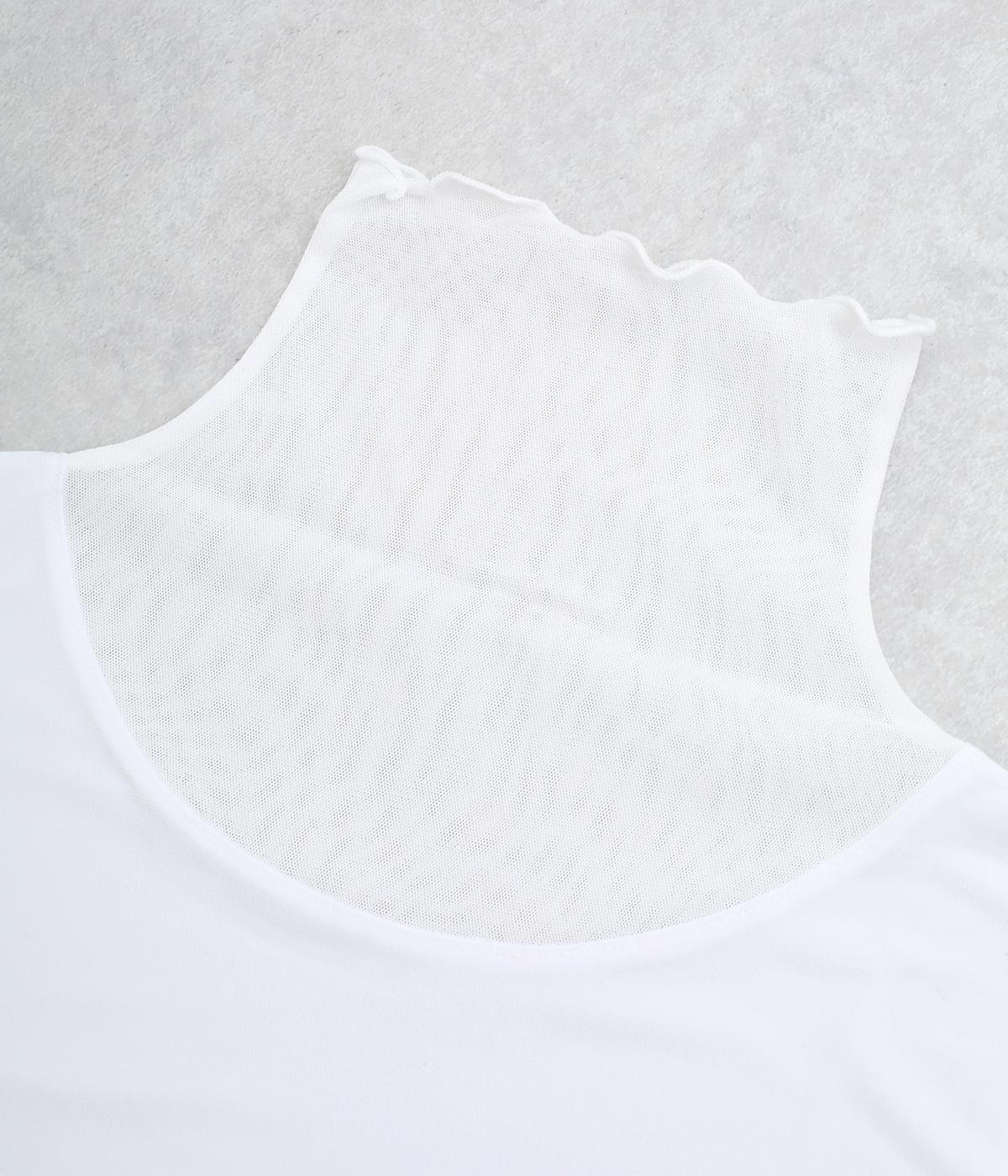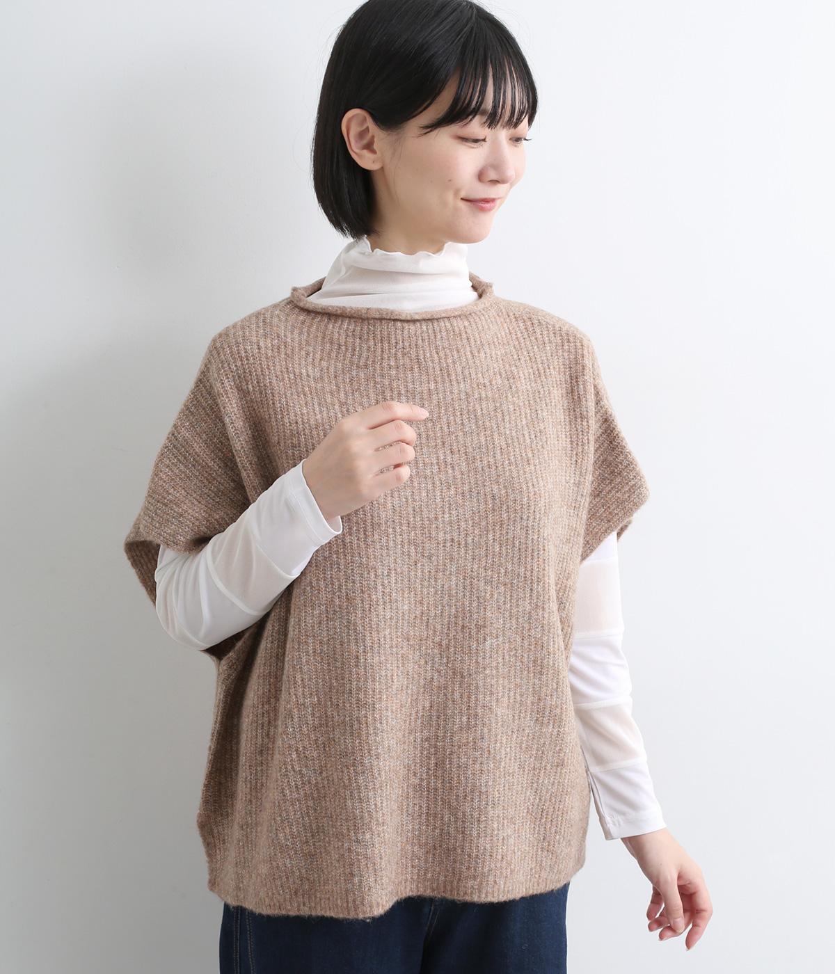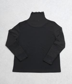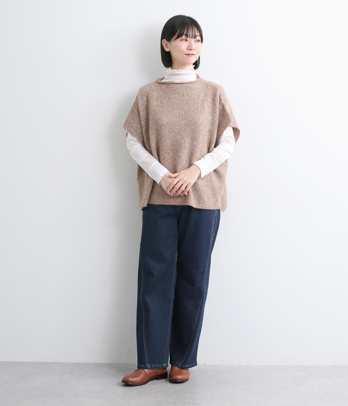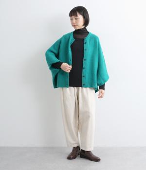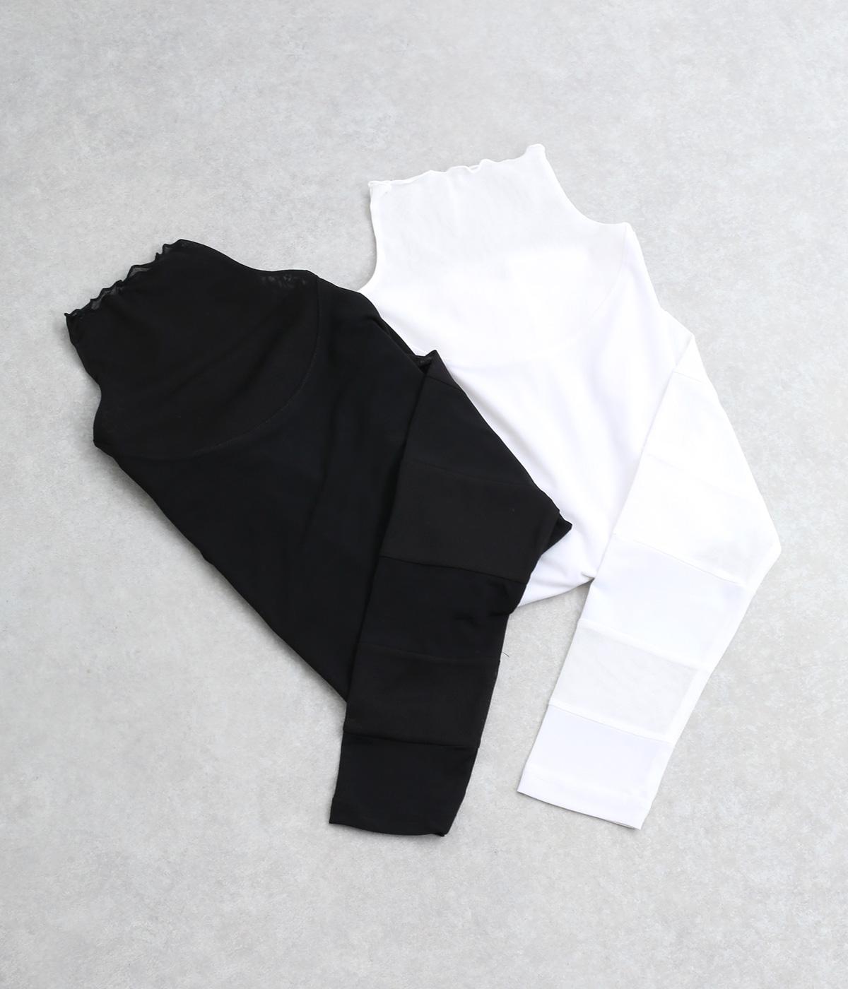 襟ぐりと袖にボーダー状に切り替えたシアー素材がポイント。部分的にシアー感を出すことで合わせるインナーに迷いにくく、きれいめにもカジュアルにも合わせやすい絶妙なバランスに仕上げました。ベストなどとのレイヤードにも最適で、着まわしのきく一枚です。