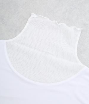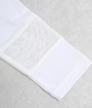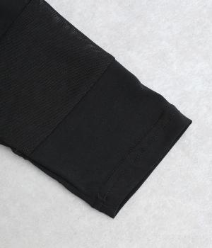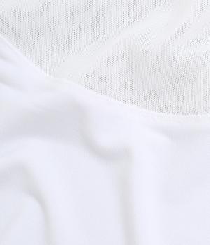 さらりとした肌ざわりとやわらかな風合いが魅力の薄手のポリエステル生地を使用。ポリウレタンをブレンドし、体にやさしくフィットする伸びのよさを加えました。