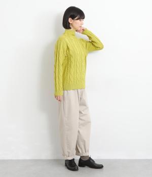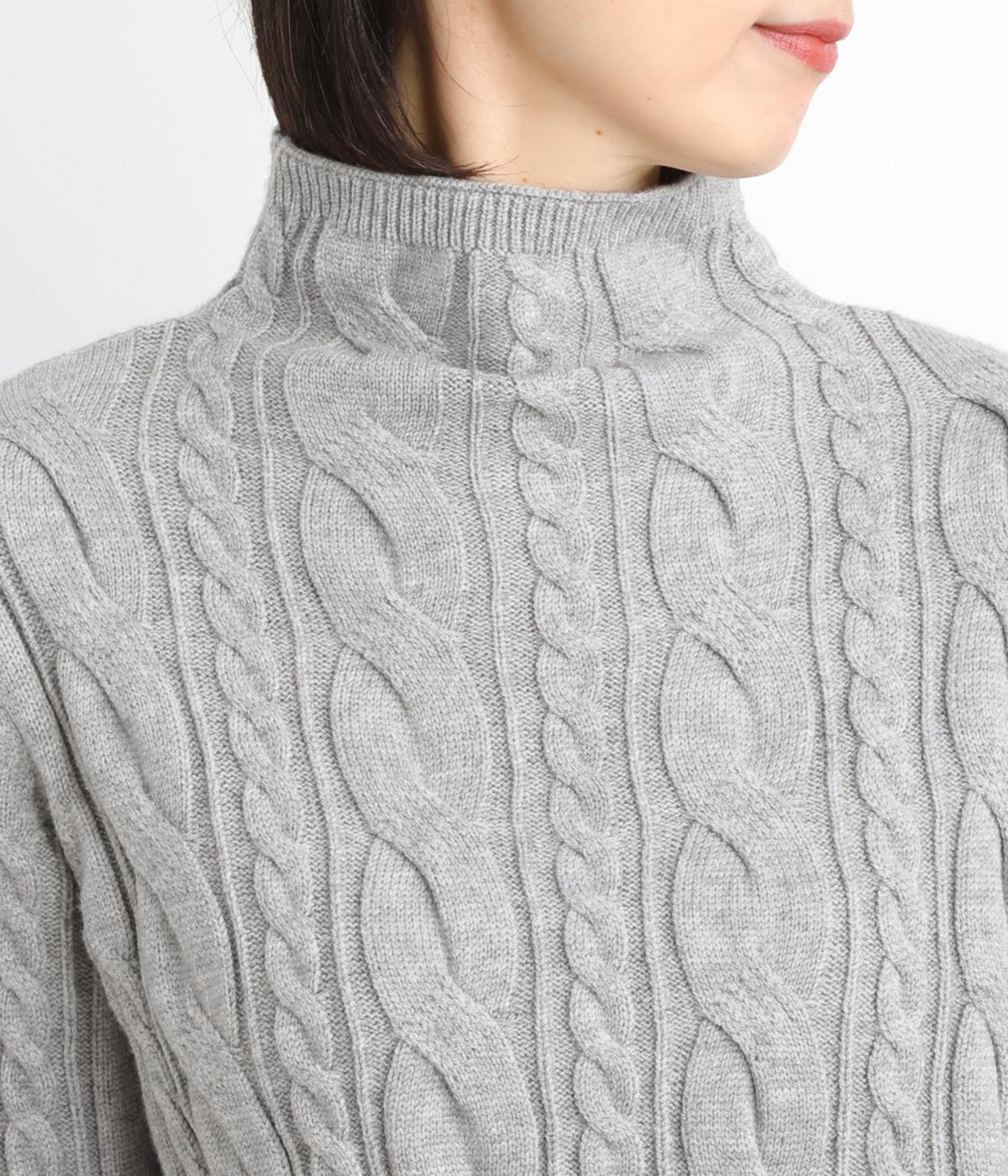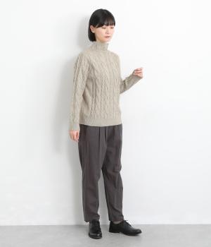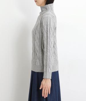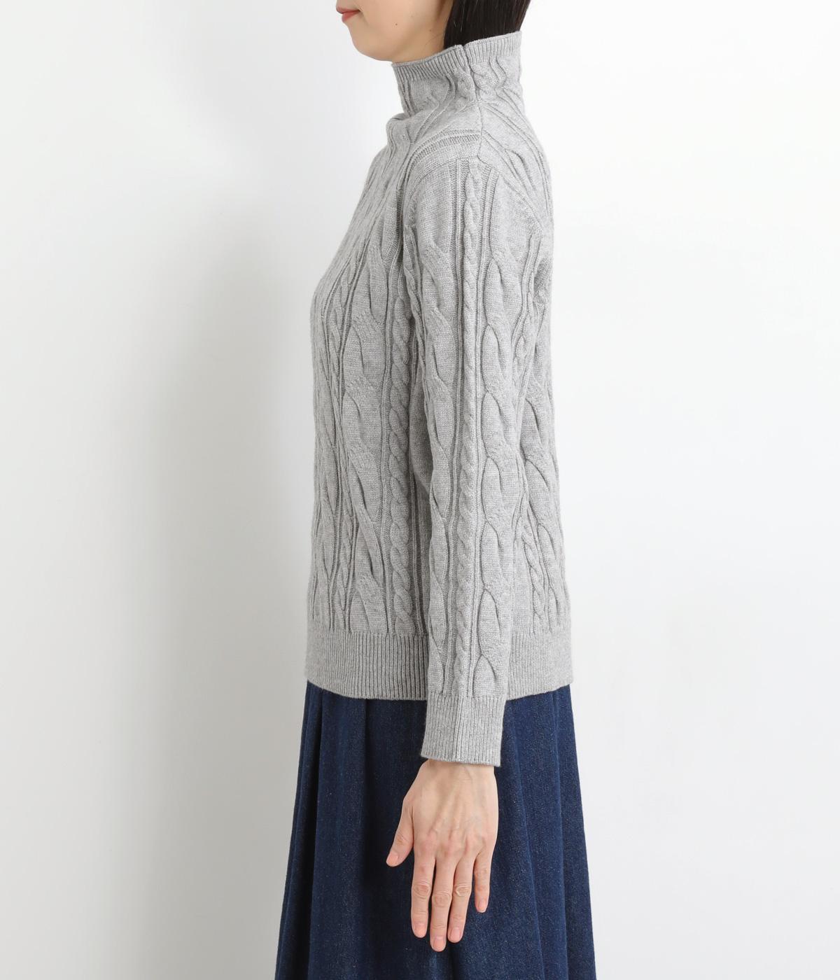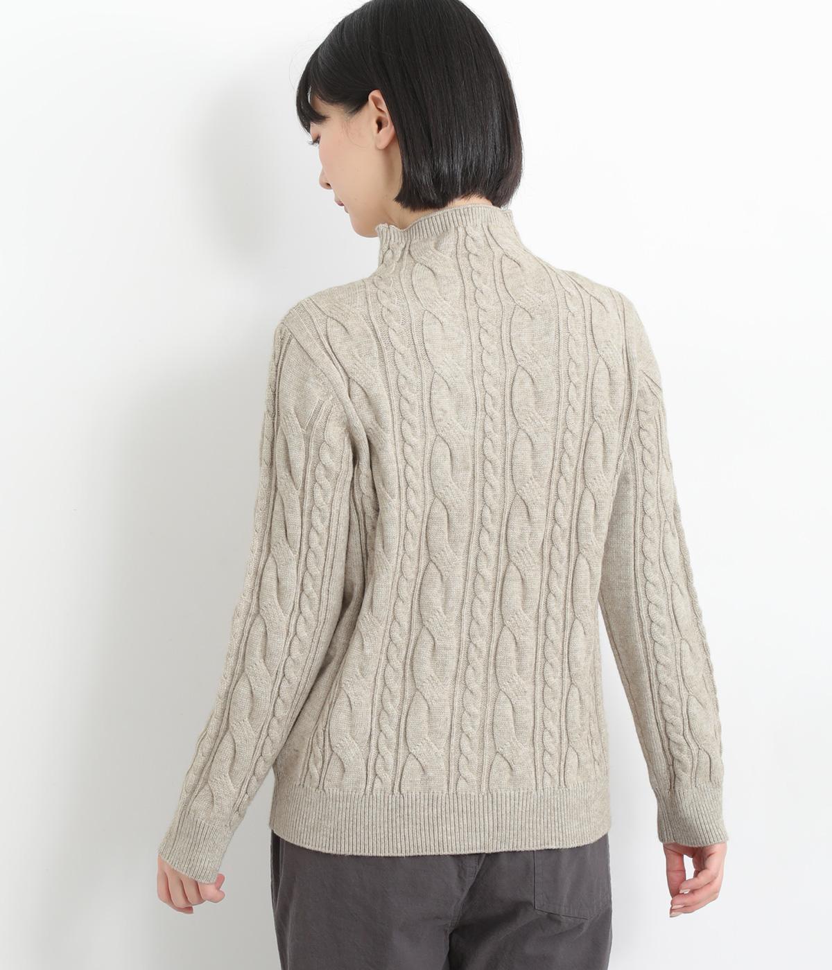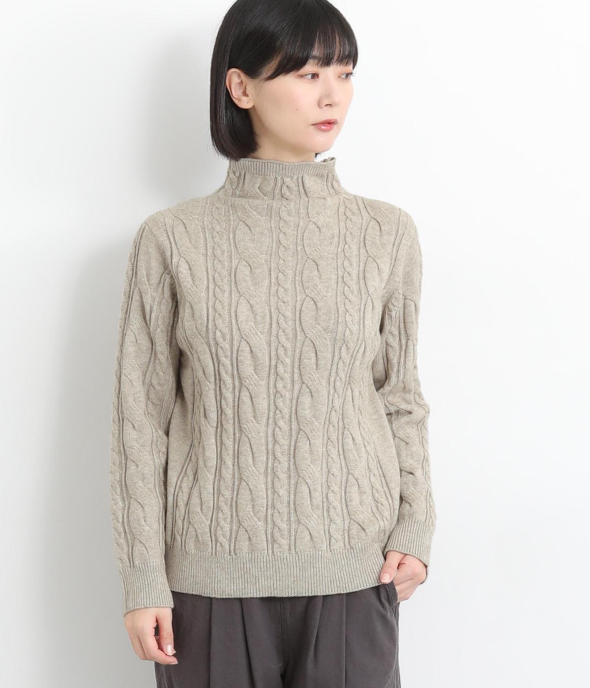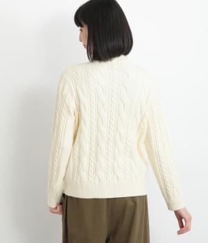 表情ゆたかなケーブル編みを主役にした、上品でクラシックな印象のハイネックニットです。全体に施した立体的な編み模様が、装いに奥行きを与えます。首元はほどよい高さのハイネックで、寒い季節も快適。ゆとりのあるシルエットなので、きれいめにもカジュアルにも合わせやすい一枚です。