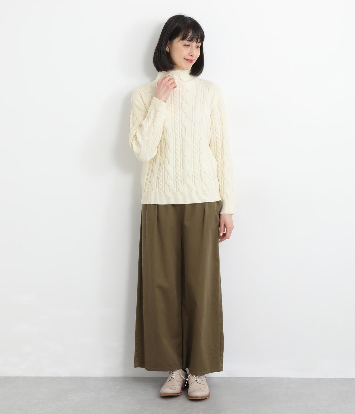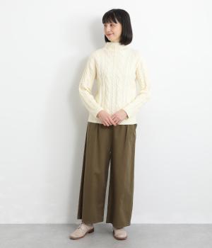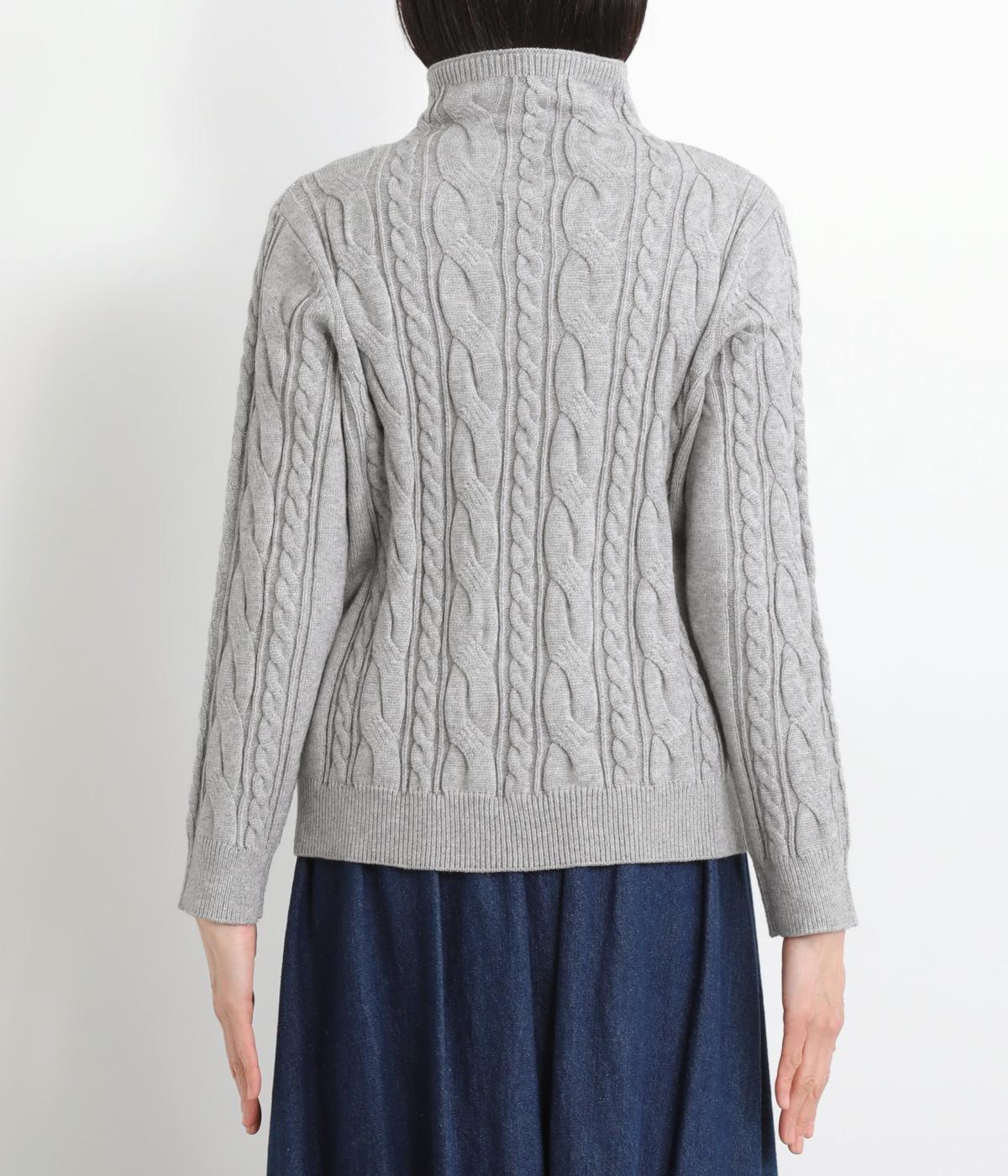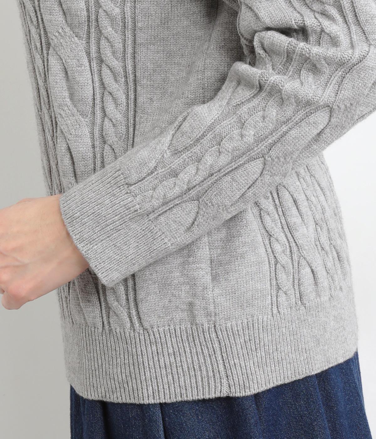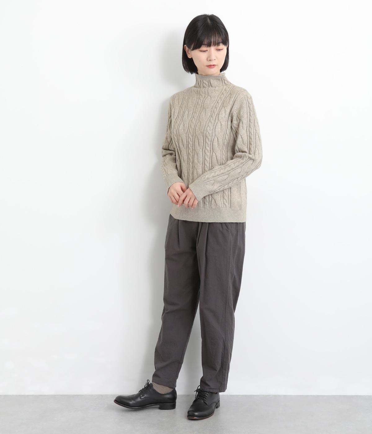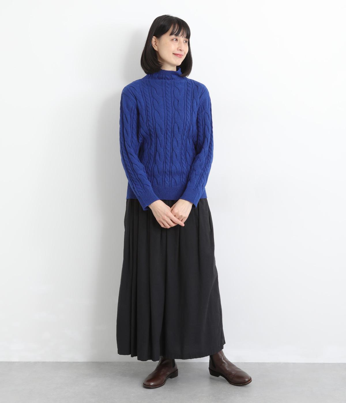 表情ゆたかなケーブル編みを主役にした、上品でクラシックな印象のハイネックニットです。全体に施した立体的な編み模様が、装いに奥行きを与えます。首元はほどよい高さのハイネックで、寒い季節も快適。ゆとりのあるシルエットなので、きれいめにもカジュアルにも合わせやすい一枚です。