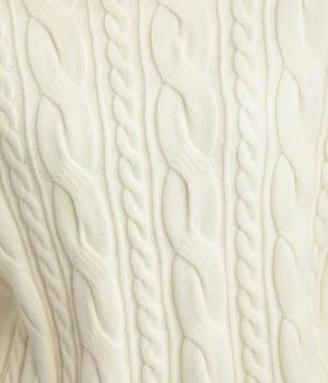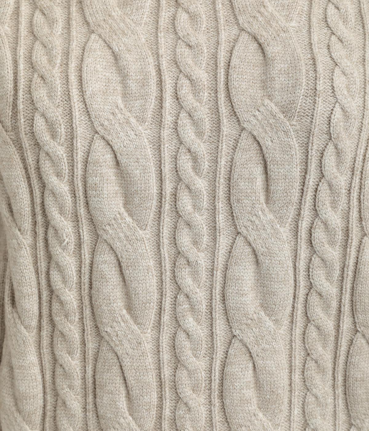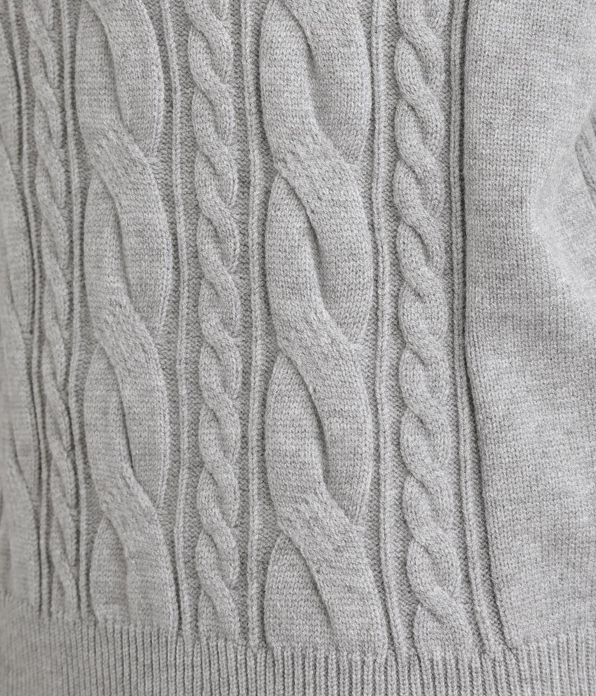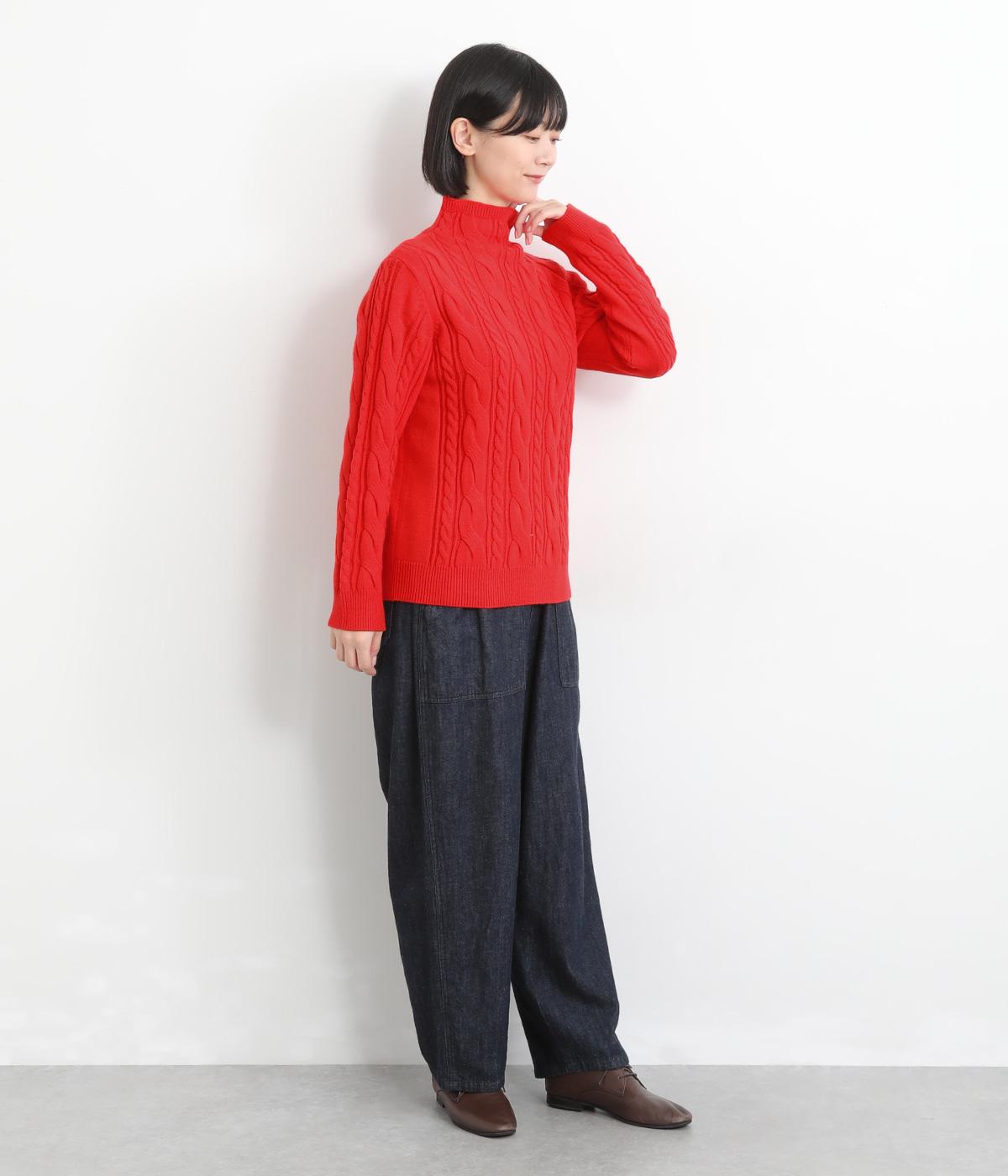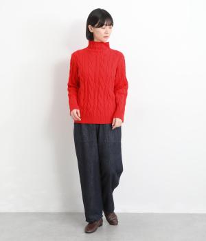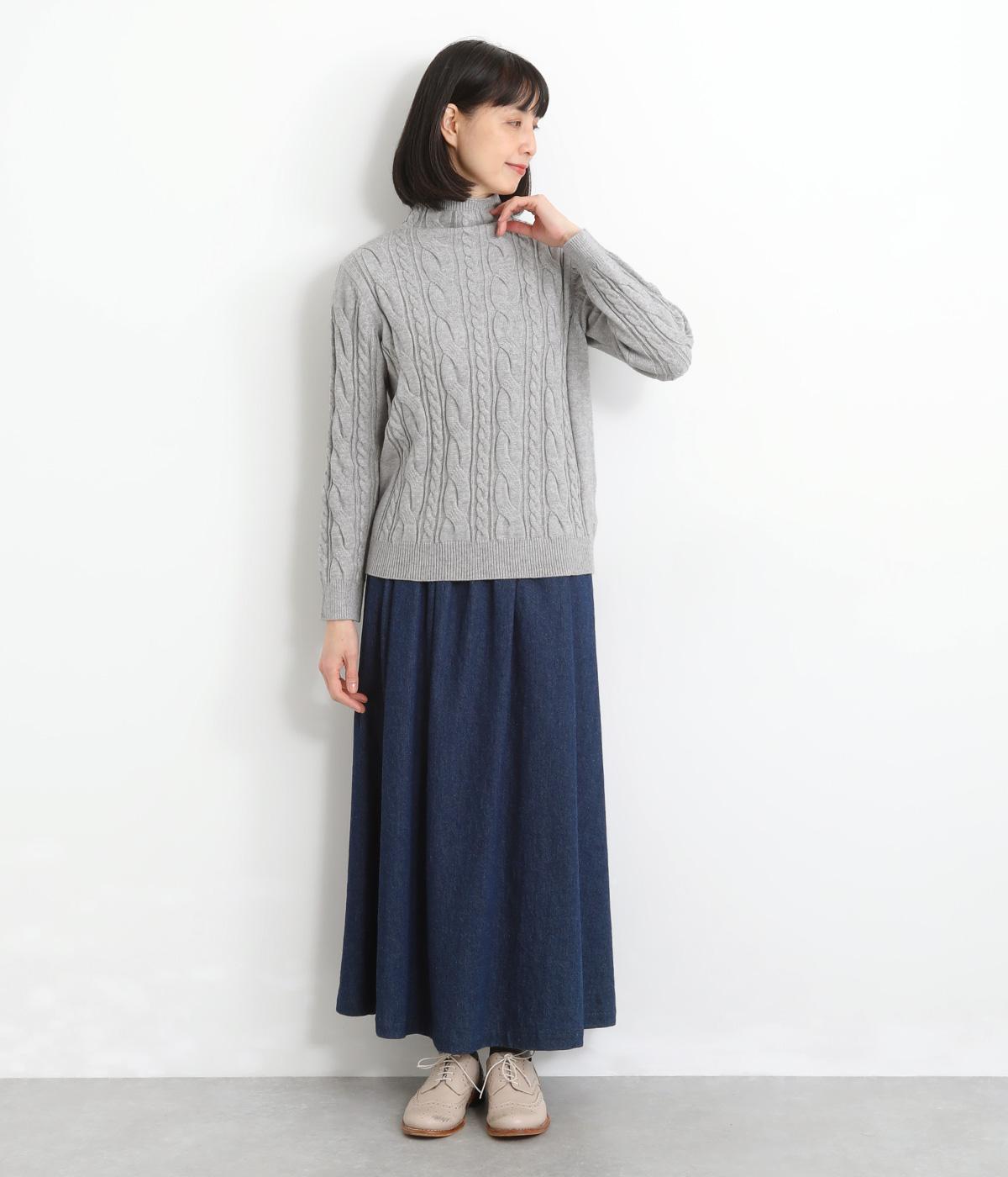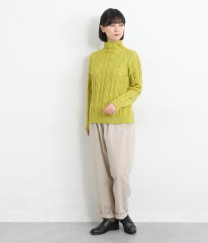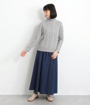 表情ゆたかなケーブル編みを主役にした、上品でクラシックな印象のハイネックニットです。全体に施した立体的な編み模様が、装いに奥行きを与えます。首元はほどよい高さのハイネックで、寒い季節も快適。ゆとりのあるシルエットなので、きれいめにもカジュアルにも合わせやすい一枚です。