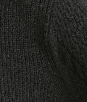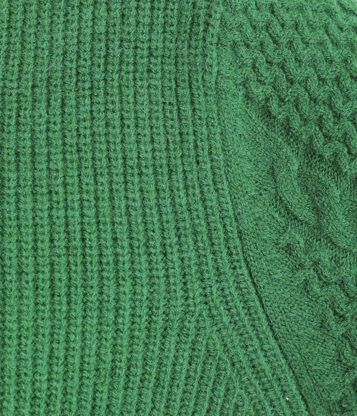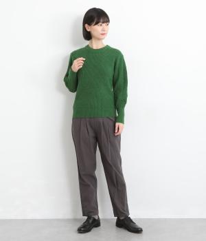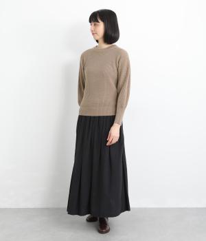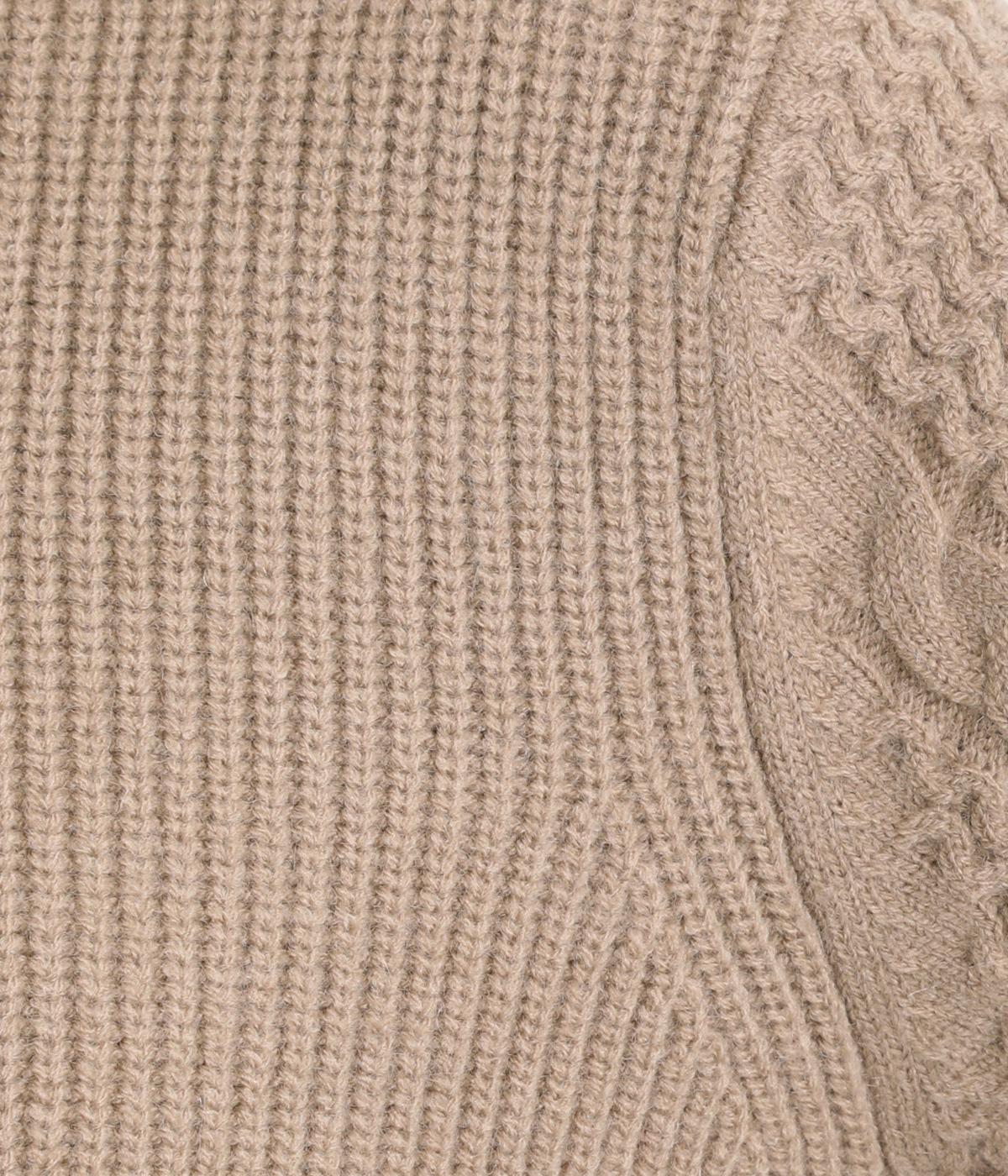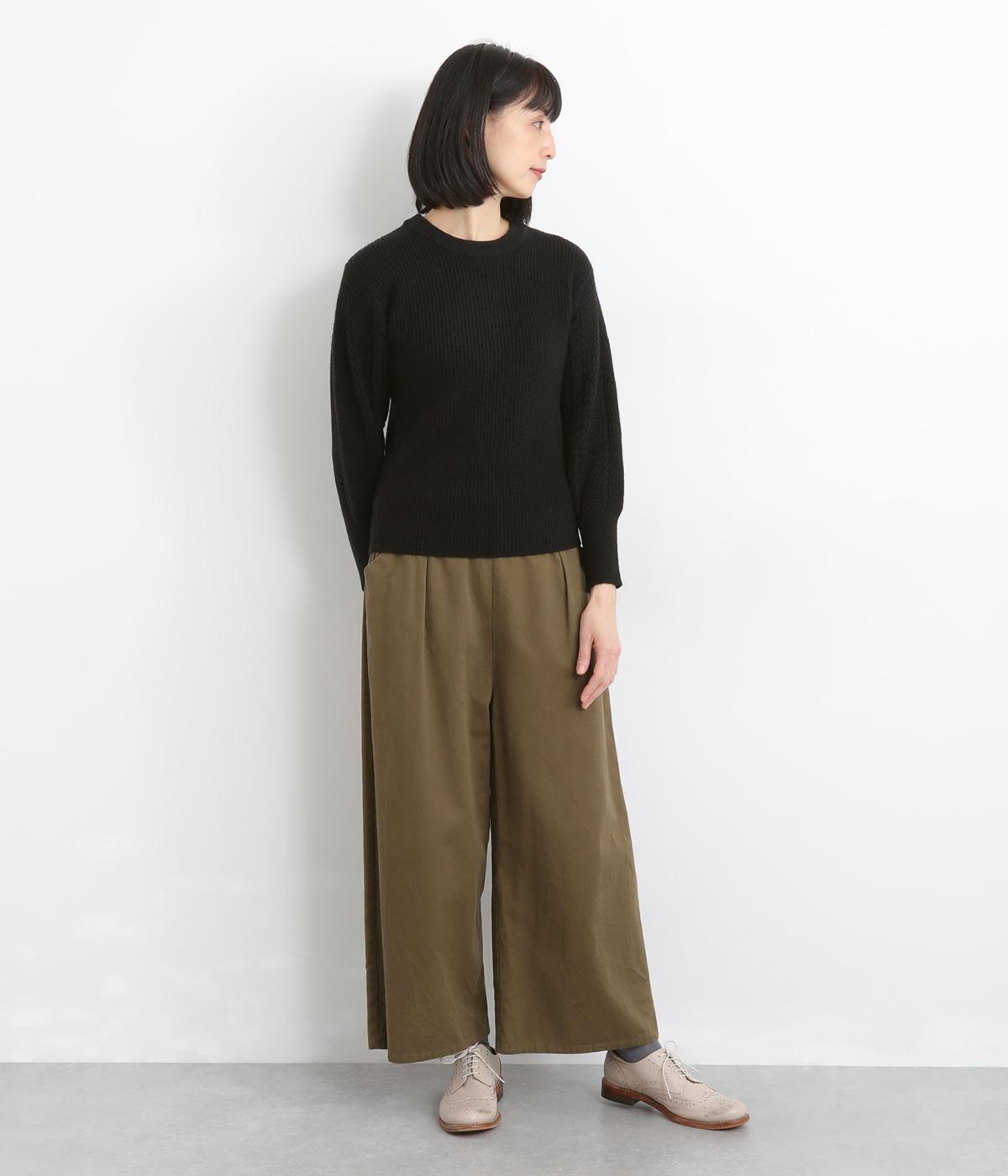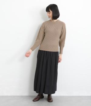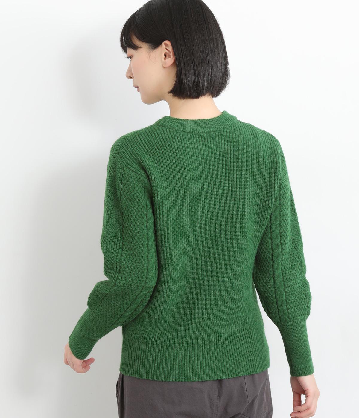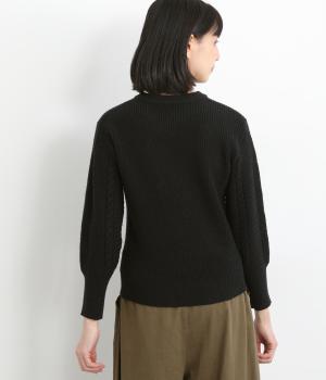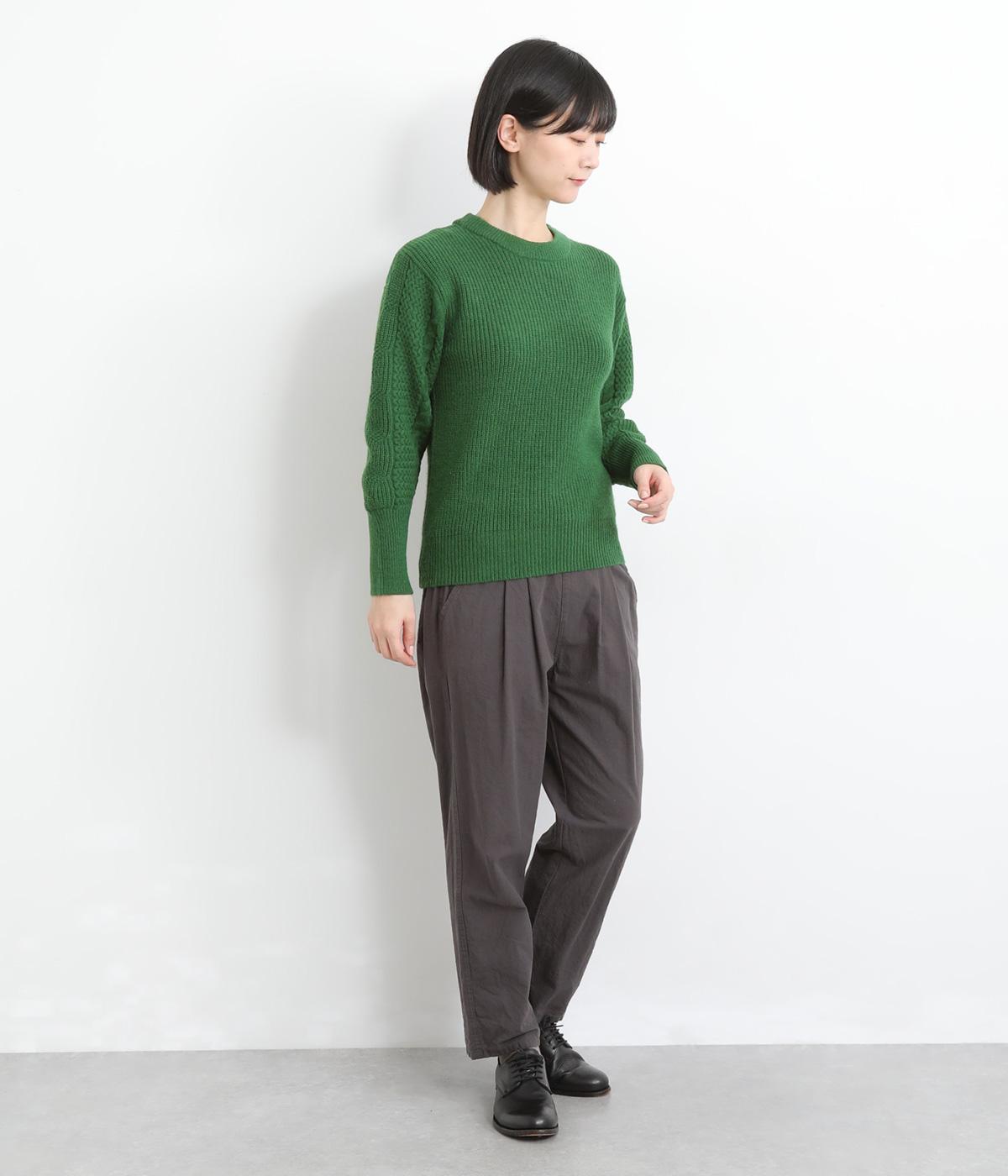 袖にあしらわれたケーブル編みが目を引く、表情ゆたかなニットです。立体的な編み模様が存在感を放ち、装いに奥行きをつくります。身頃と袖口はシンプルなリブ編みで仕上げ、全体をすっきりまとめました。ほどよくゆとりのあるシルエットで、さまざまなボトムスと好相性です。