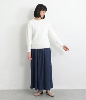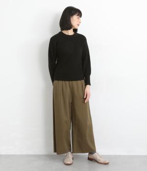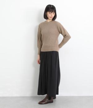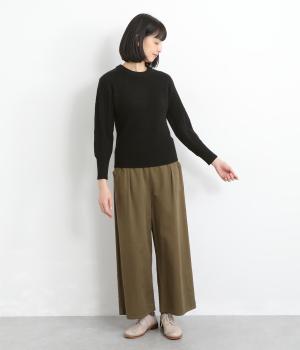 もちっとした弾力と、ふんわりやさしい肌あたりが心地よいニット素材です。ほどよい厚みとハリ感があり、シルエットをきれいに保つのもうれしいポイント。伸縮性も抜群なので、動きやすくリラックスした着心地を叶えます。