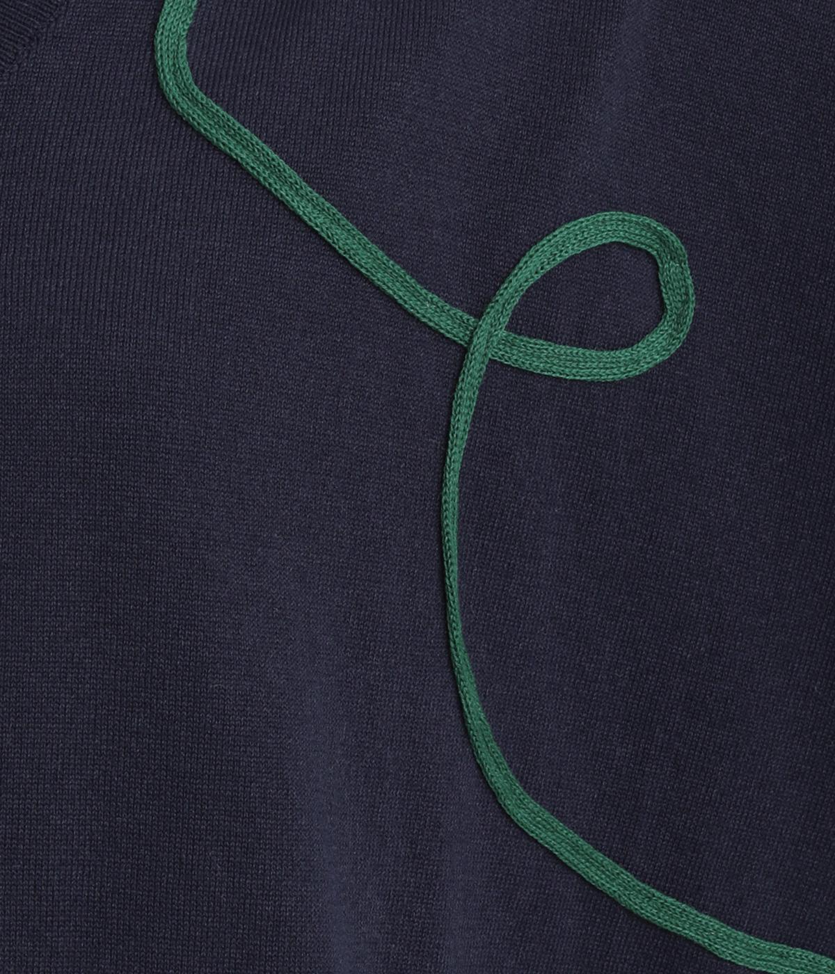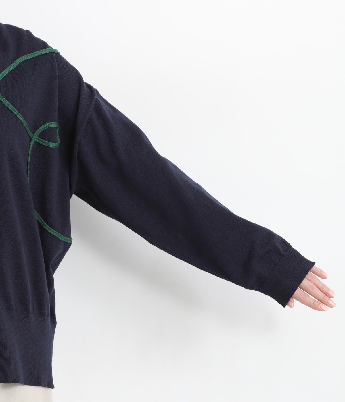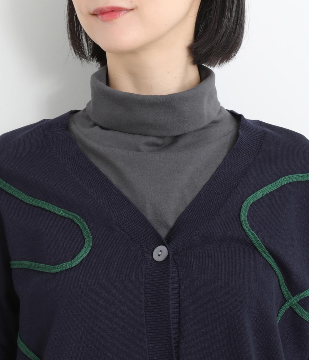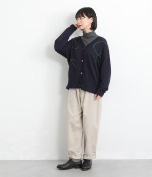 ゆったりとしたシルエットに、ラインアートの刺しゅうをあしらいました。糸で描いたような曲線モチーフが、さりげない個性を添えます。ドロップショルダーが自然な落ち感を生み、体のラインをやさしくカバー。Vネックが顔まわりをすっきりと見せ、羽織るだけでこなれた大人の着こなしが完成します。