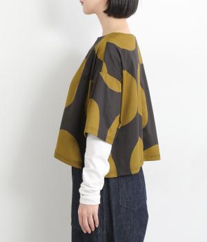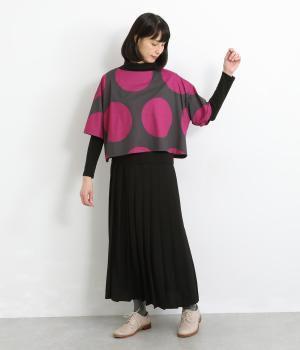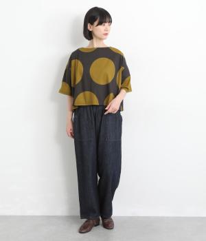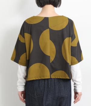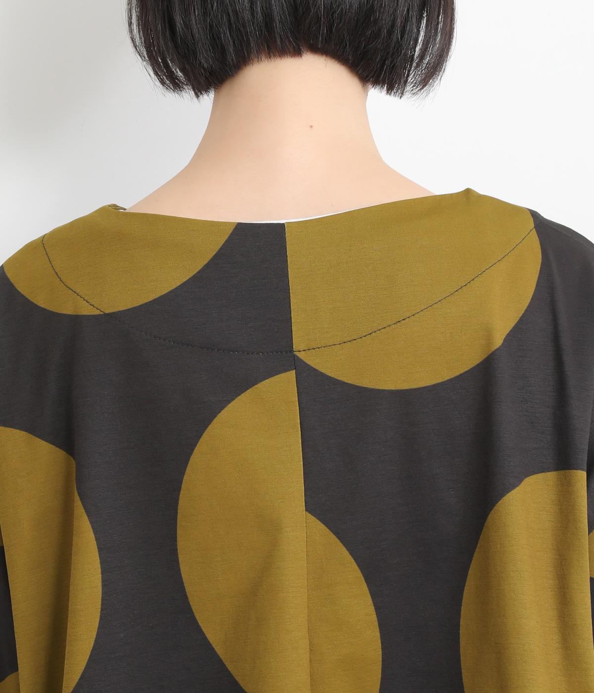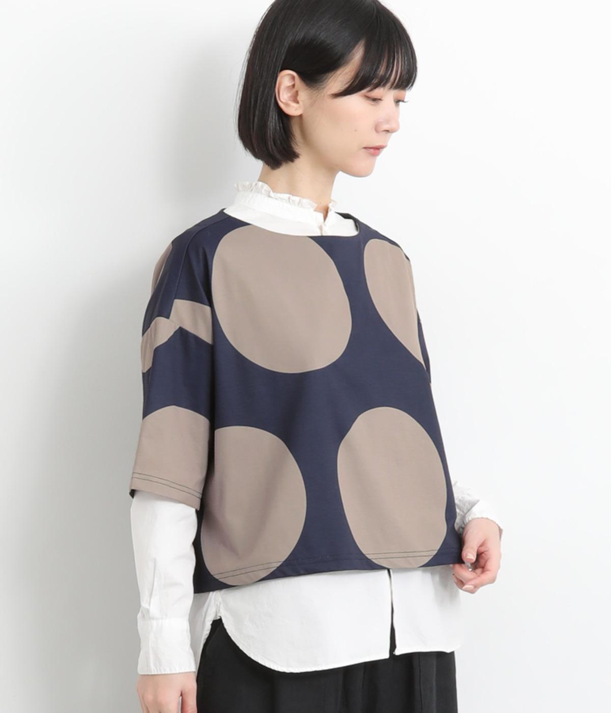 コントラストのきいた大きなドット柄が目を引く、遊び心のあるデザインです。ほどよくあいたボートネックがデコルテをきれいに見せ、抜け感をプラスします。ゆったりとしたシルエットながら、短めの丈感ですっきりとした印象に。インナーを重ねたコーディネートもたのしめ、着こなしの幅が広がります。