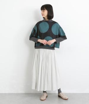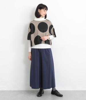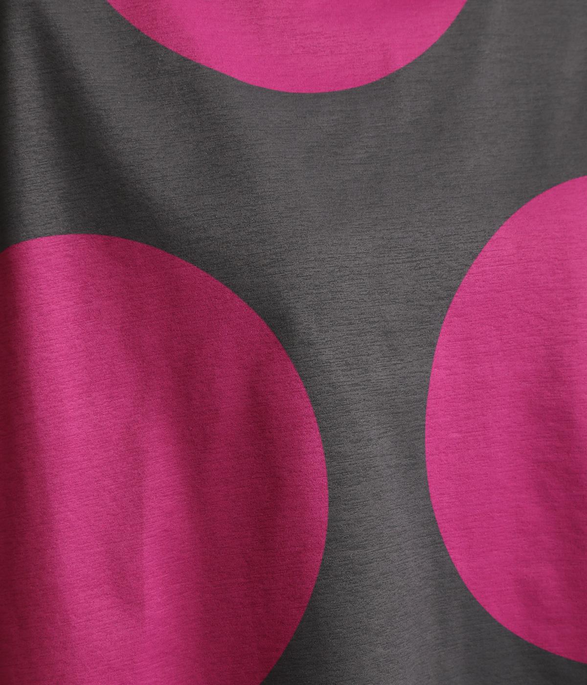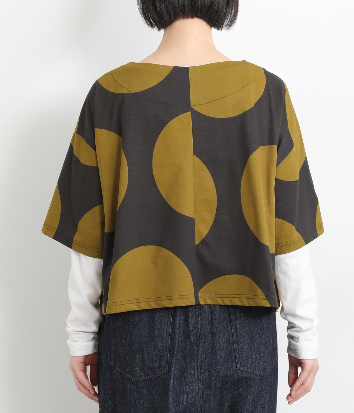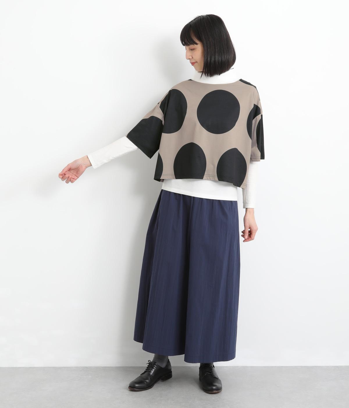 コントラストのきいた大きなドット柄が目を引く、遊び心のあるデザインです。ほどよくあいたボートネックがデコルテをきれいに見せ、抜け感をプラスします。ゆったりとしたシルエットながら、短めの丈感ですっきりとした印象に。インナーを重ねたコーディネートもたのしめ、着こなしの幅が広がります。