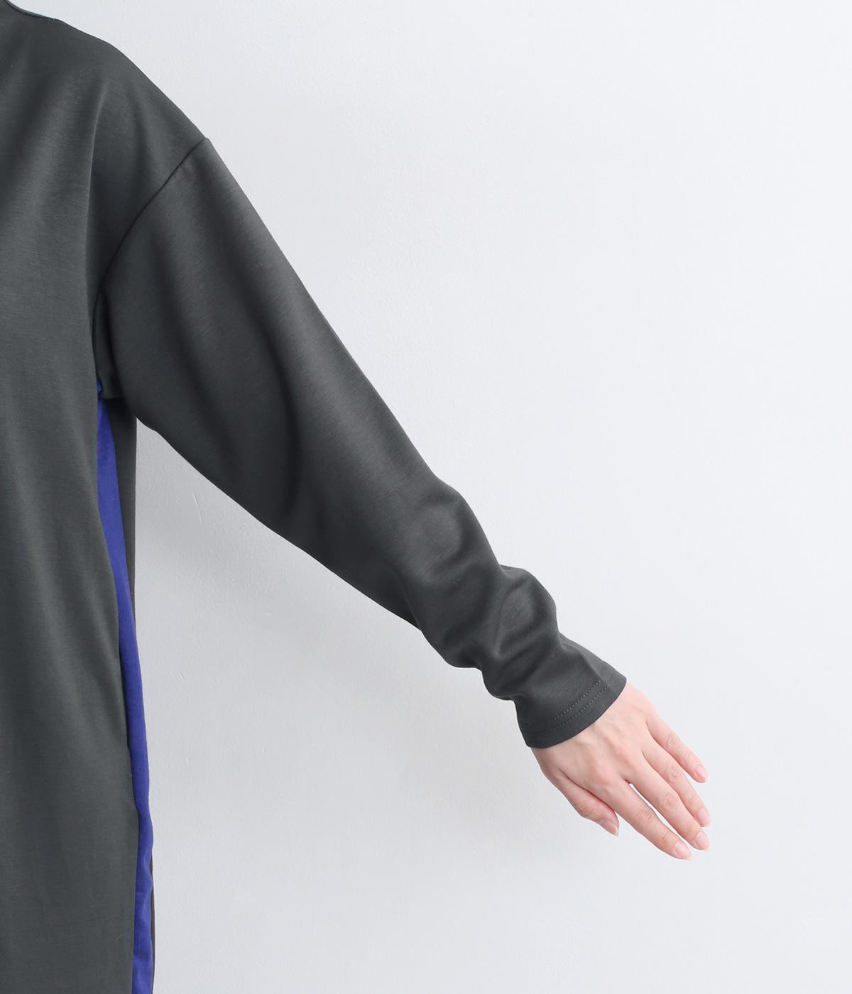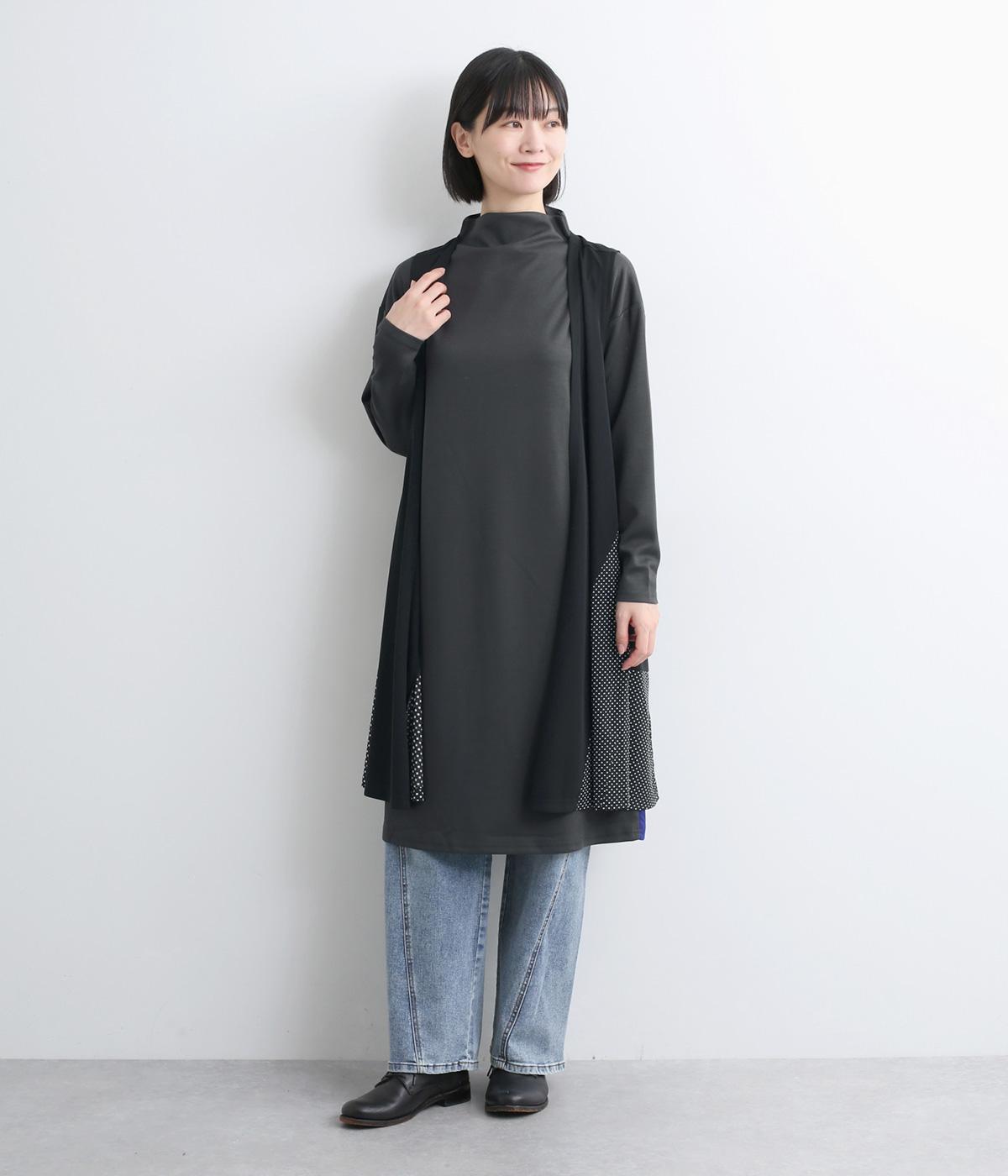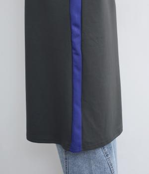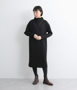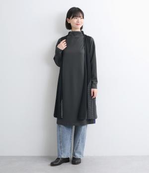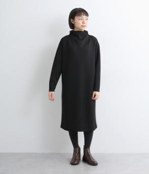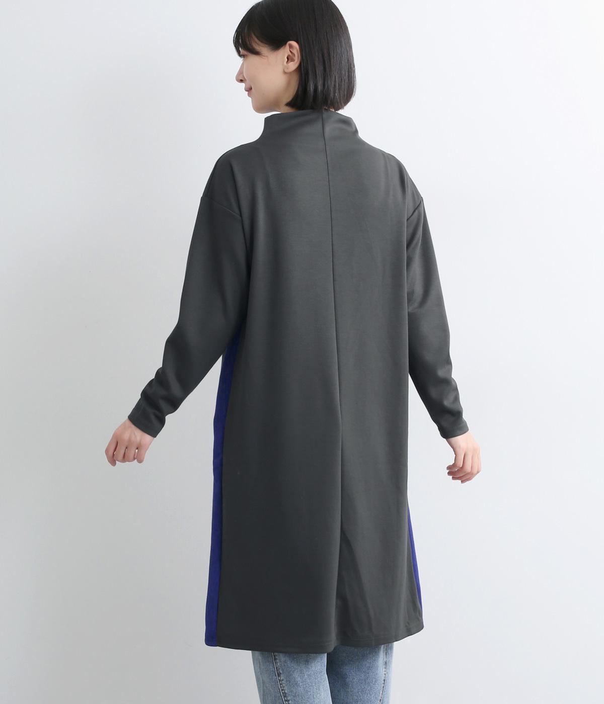 ボトルネックと滑らかな生地感が上品なワンピース。スポーティな配色ラインをプラスして、ファッションムードを高めました。一枚でもボトムスとのレイヤードもサマになる、ひざ下丈もグッド。両サイドには便利なポケットつきです。