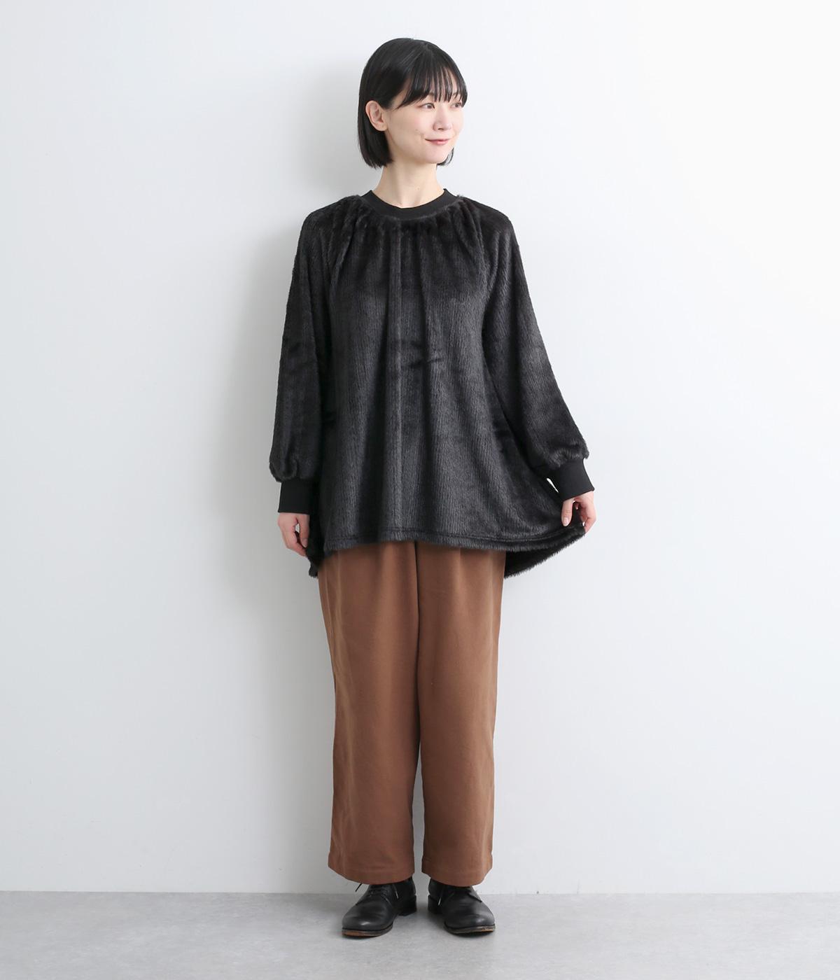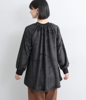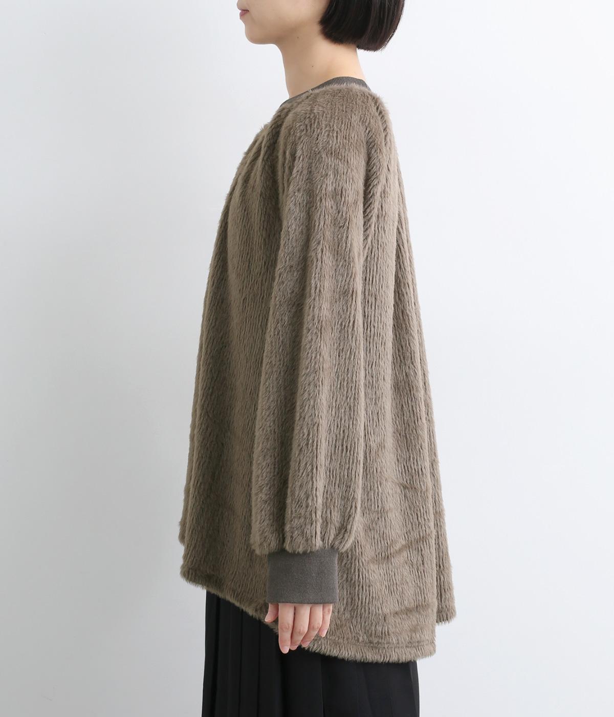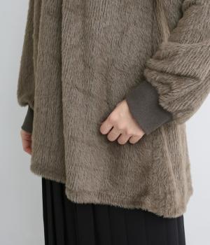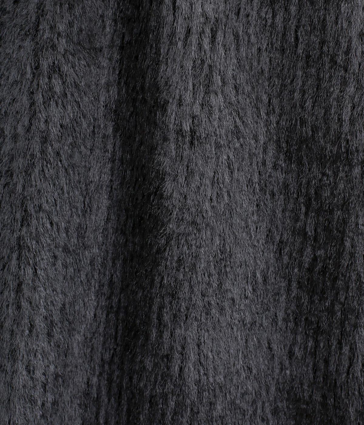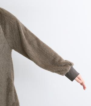 毛足長めのソフトタッチなシャギー素材を使用しました。とてもやわらかく滑らかなドレープ性のある生地感が、シルエットのボリュームをおさえてくれます。