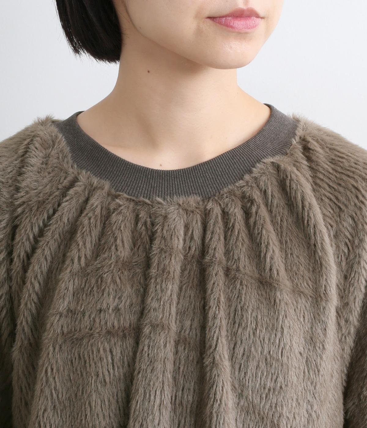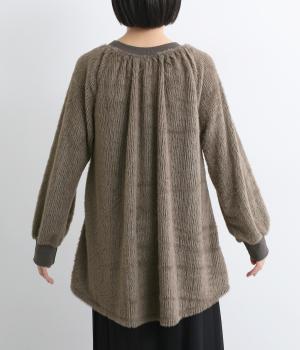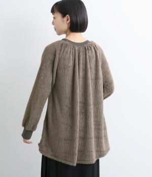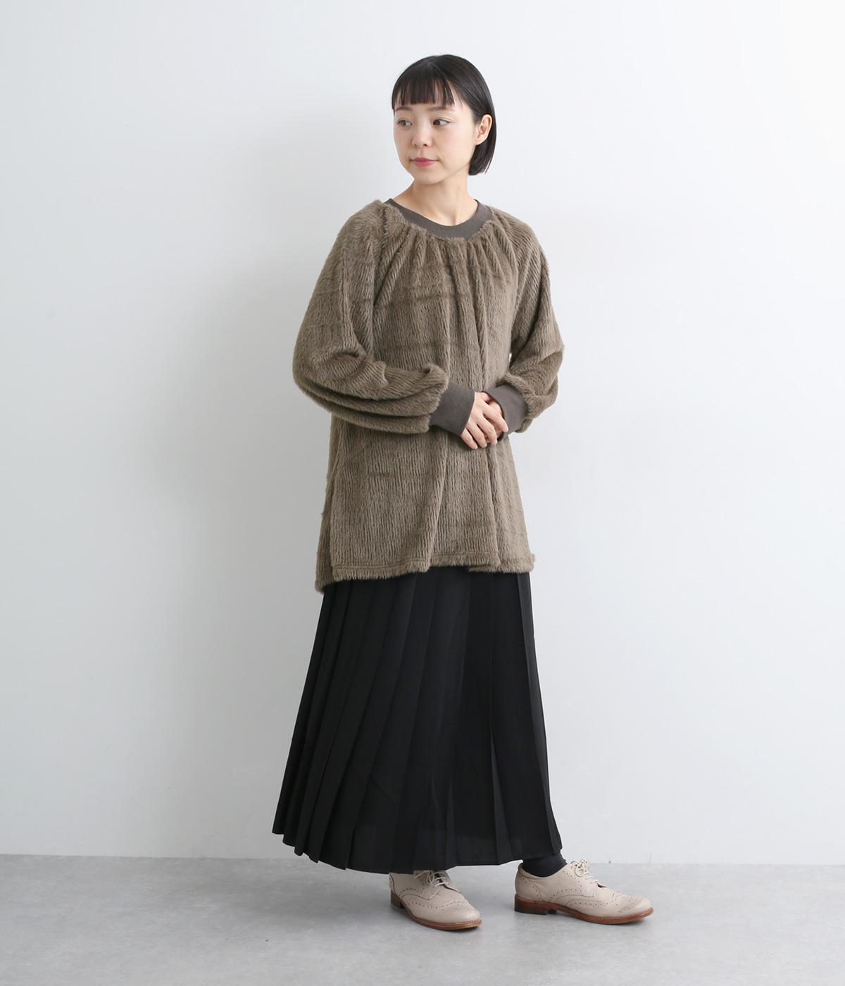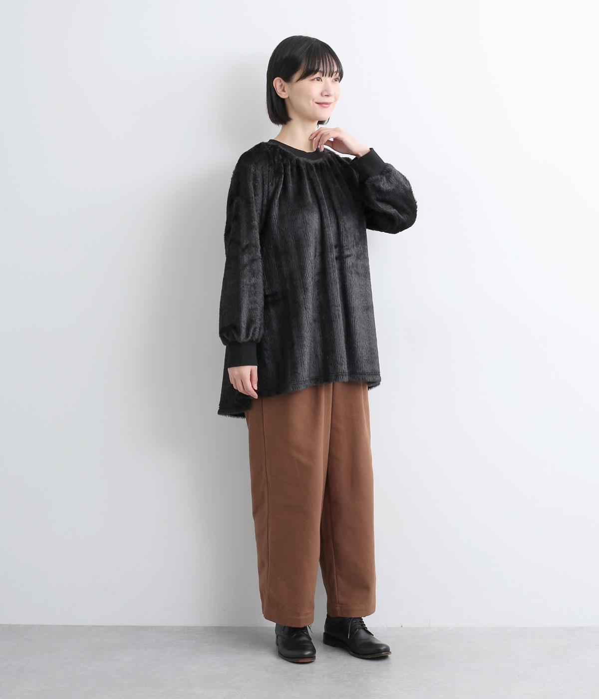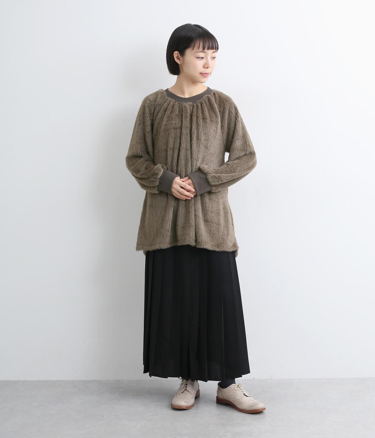 毛足長めのソフトタッチなシャギー素材を使用しました。とてもやわらかく滑らかなドレープ性のある生地感が、シルエットのボリュームをおさえてくれます。