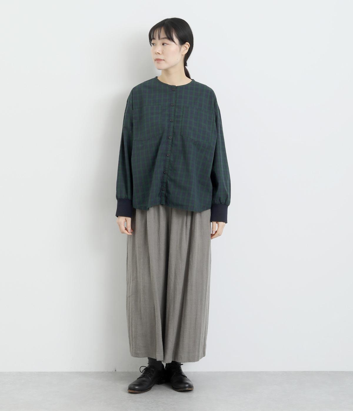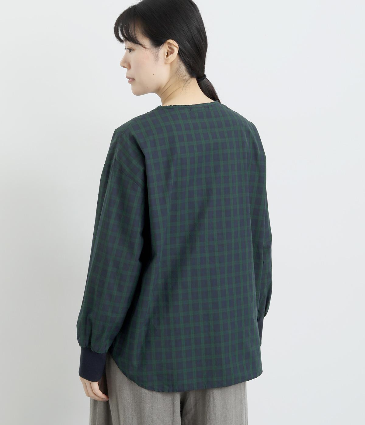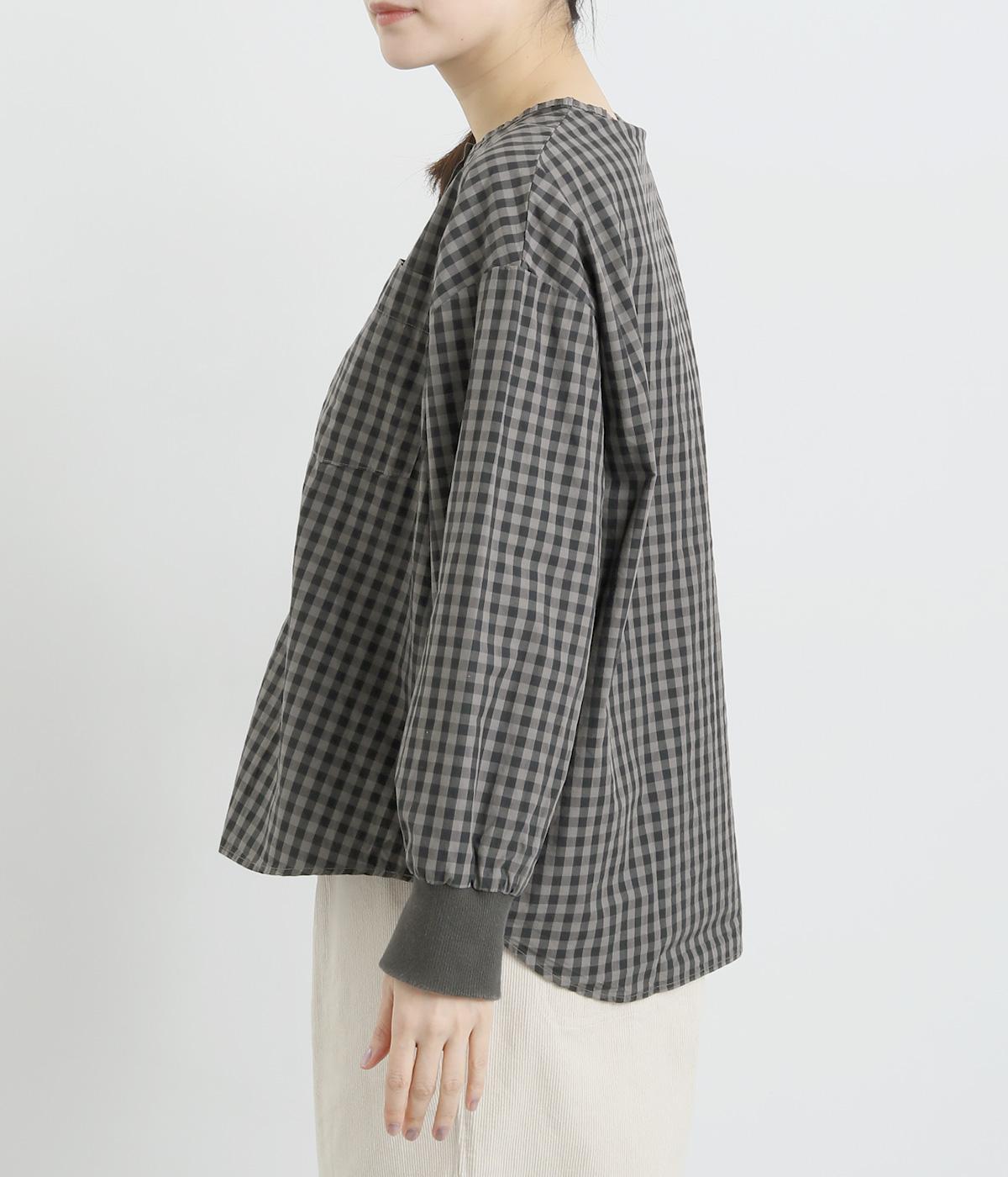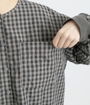 ラフなトップスアウトもさまになるラウンドヘムに大きな胸ポケットがデザインポイント。ほどよいゆとりの身頃とリブ切り替えでメリハリをつけた袖口のバランスがよく、袖のたくし上げアレンジも◎。前あきで羽織り使いも可能です。
